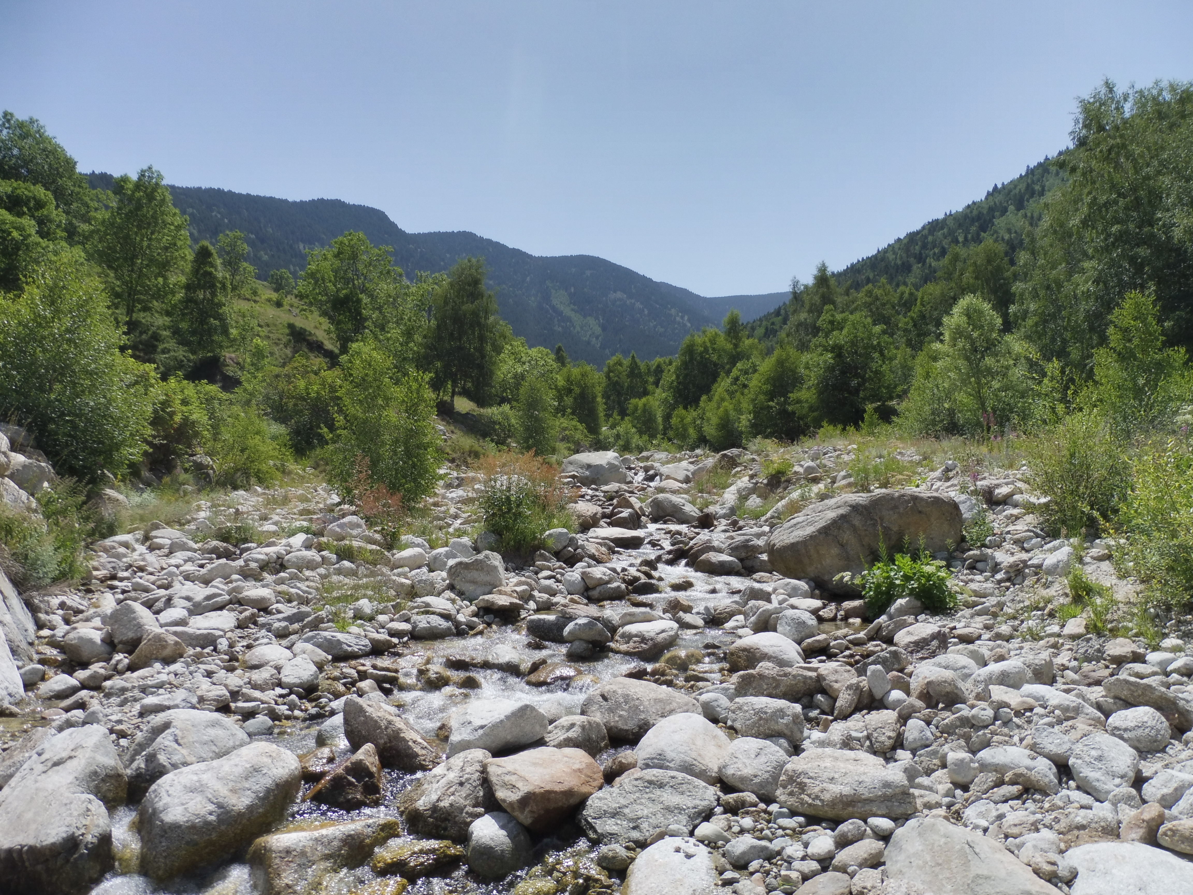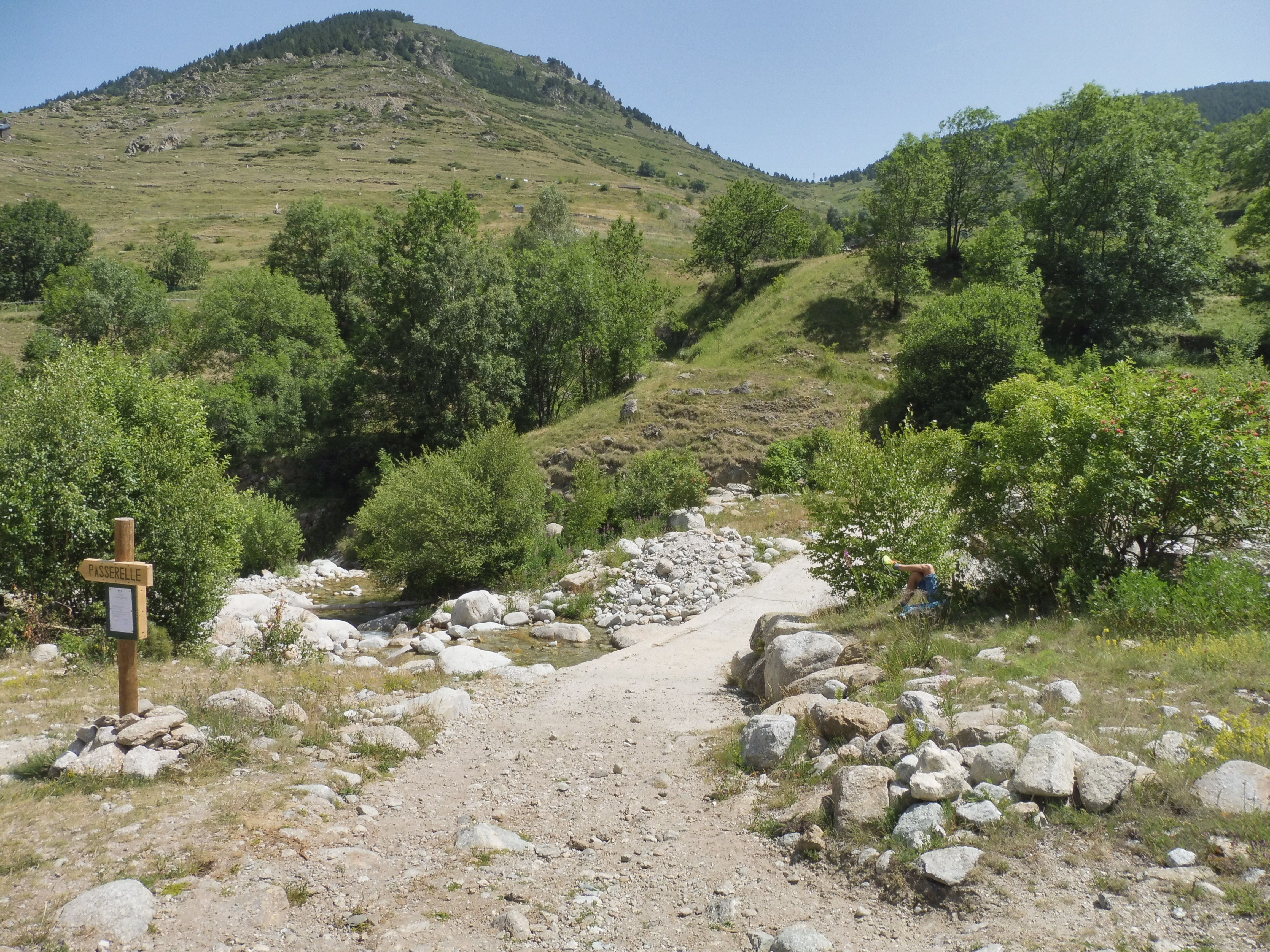 Le passage à gué sur la Ribera del Ressec : si jamais ce passage à gué est impraticable, il y a une passerelle qui enjambe le cours d'eau un peu plus en aval