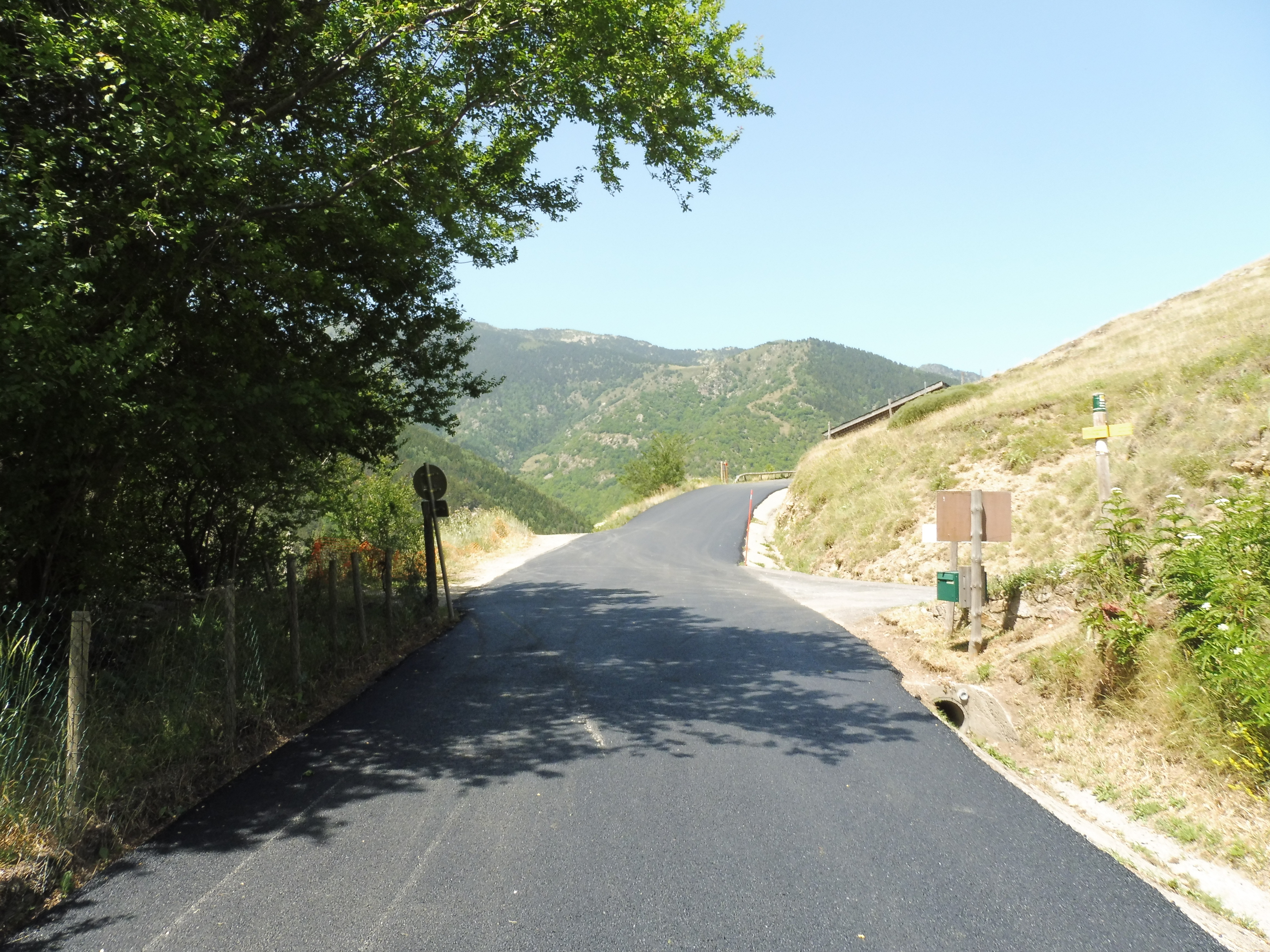 Mantet (1548 m) : suivre la route partant tout droit direction Mantet - Parking Obligatoire, balisé en rouge et blanc