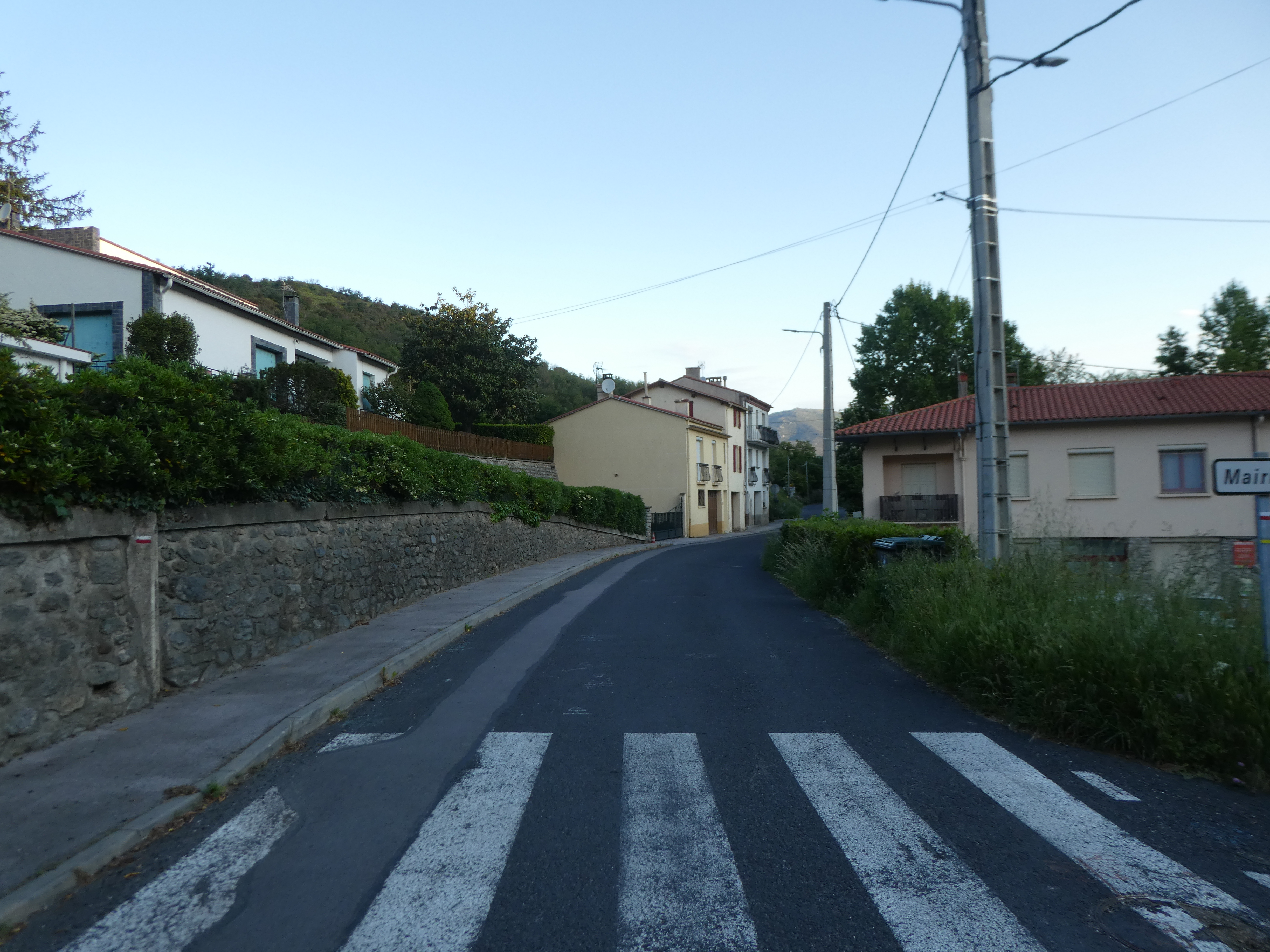 A ce croisement situé au niveau de la mairie d'Espira-de-Conflent (700 mètres après la précédente intersection mentionnée), suivra la D55a partant tout droit direction Coll dels Grecs, balisé en jaune dorénavant (bien suivre les balises jaunes pour sortir du village)