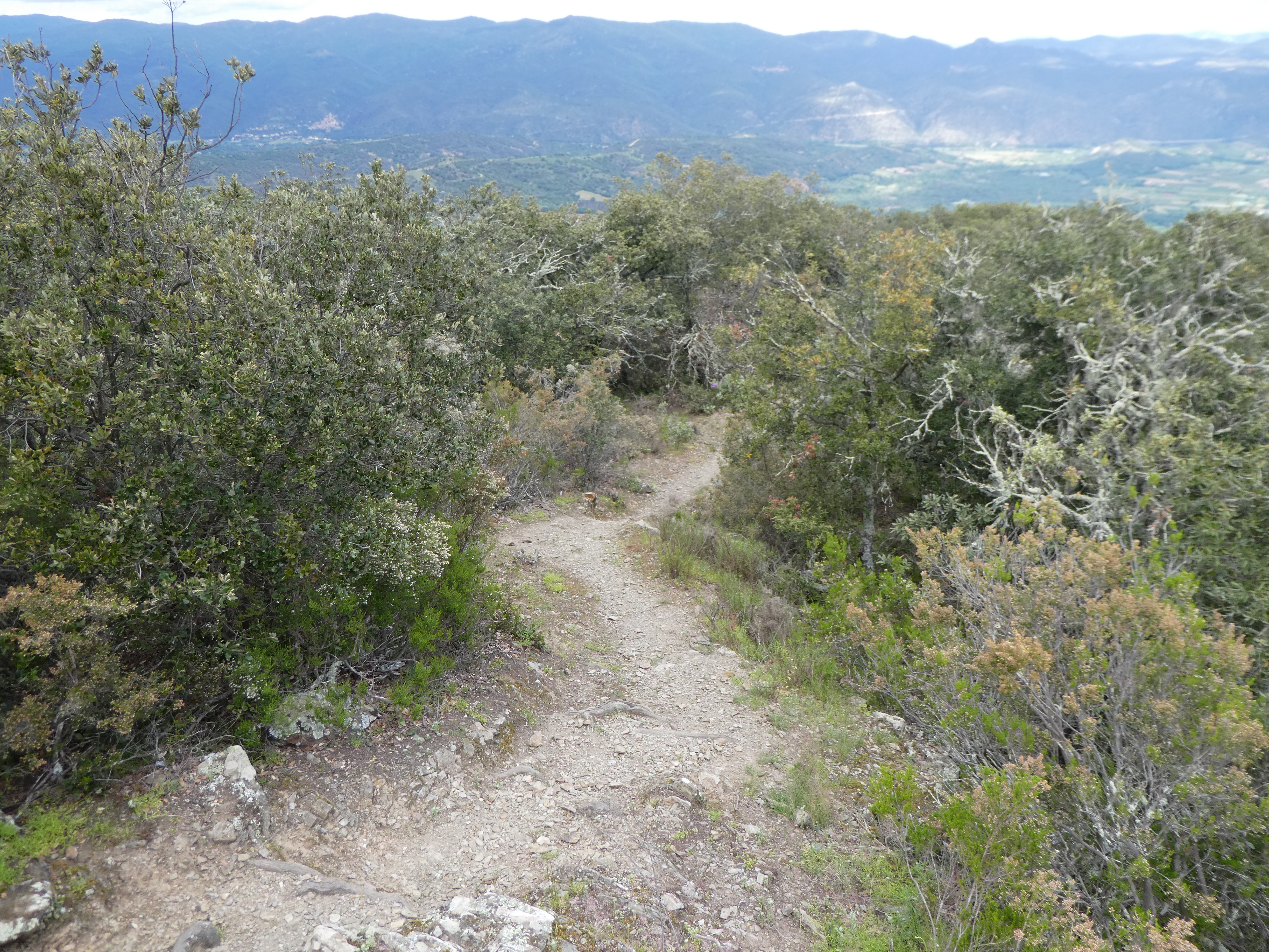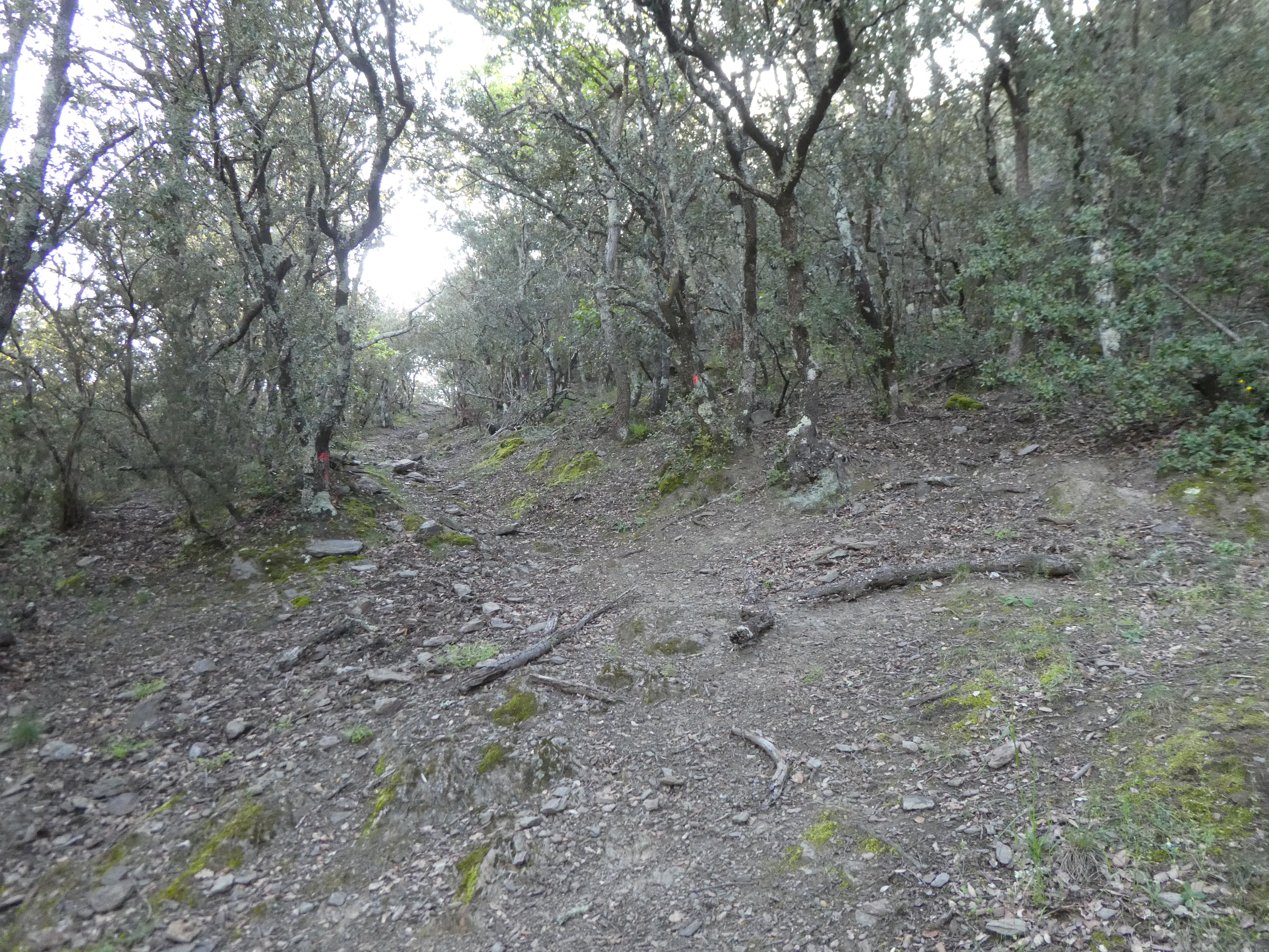 A ce croisement peu marqué avec le sentier de montée vers le Puig dels Moros (900 mètres après le précédent), suivre ce dernier montant raidement sur la droite direction Puig dels Moros, aucun balisage dorénavant