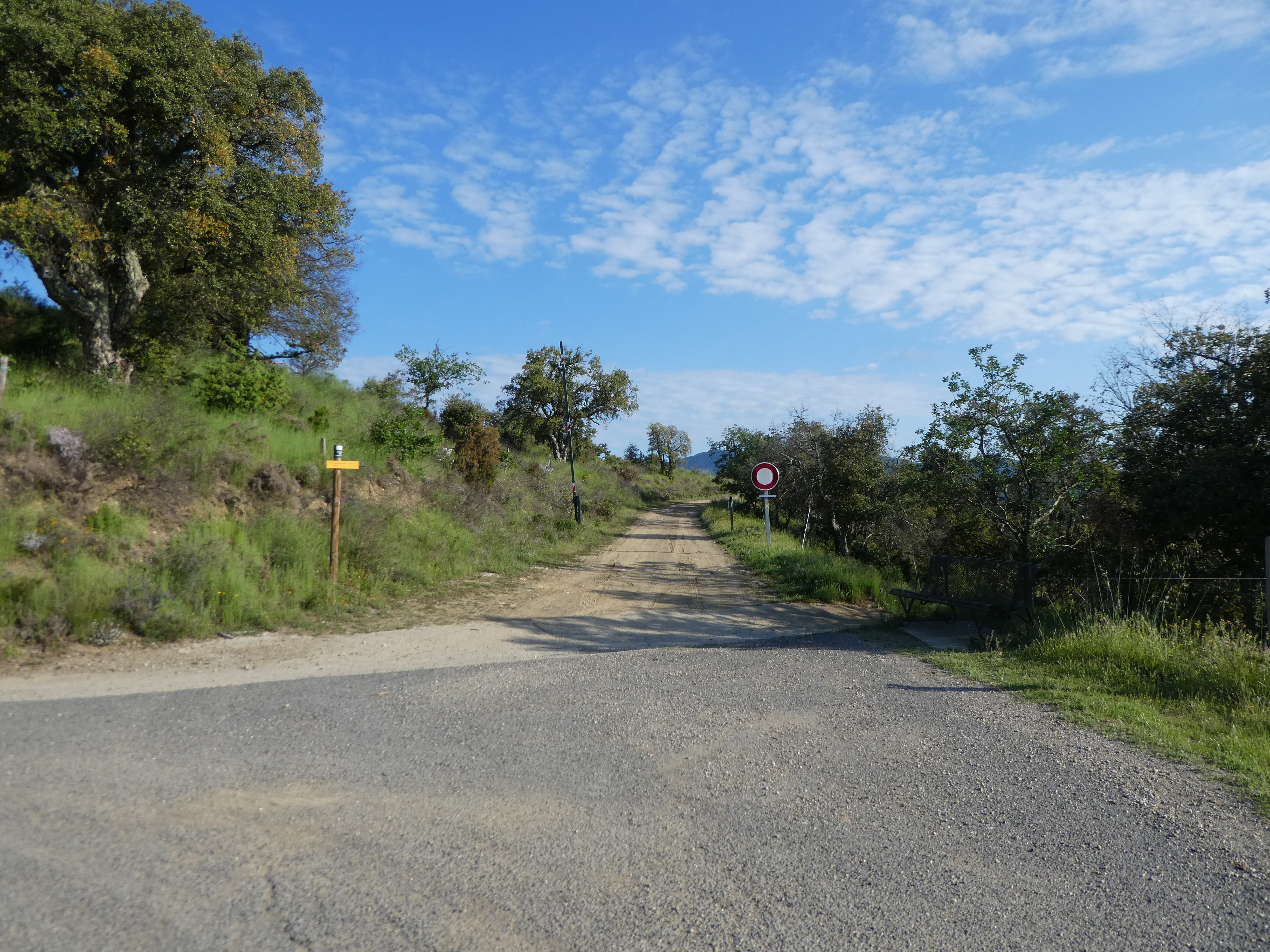 A ce croisement avec le chemin menant à Estoher marqué par la présence d'un panneau directionnel (1100 mètres après avoir quitté le Puig de Marbet), suivre le GR36 partant légèrement sur la droite direction Finestret, balisé en rouge et blanc
