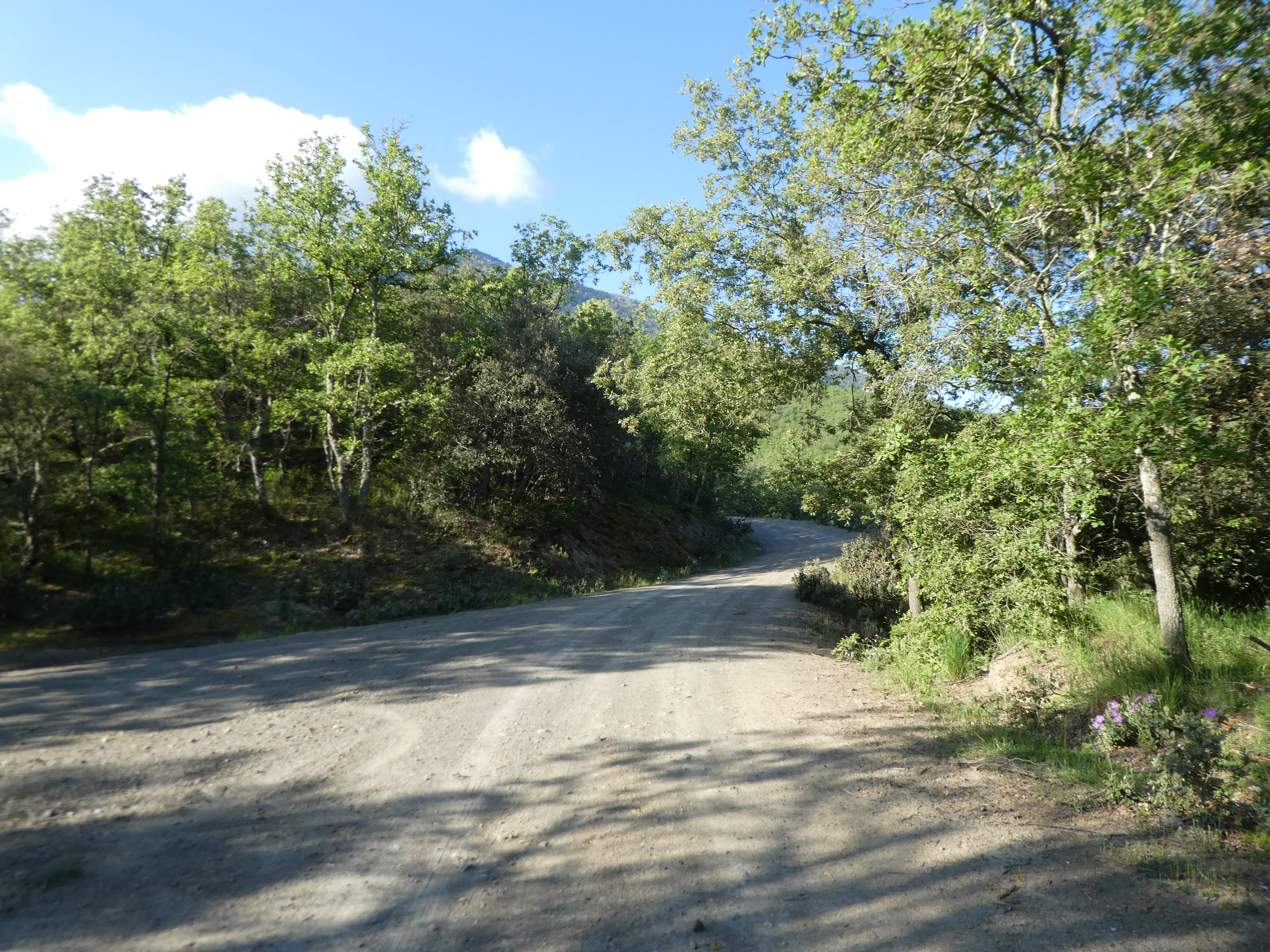 A ce croisement avec un itinéraire balisé en points verts (600 mètres après le précédent), suivre ce dernier partant tout droit direction Collada d'en Jaume, balisé sporadiquement en points verts dorénavant