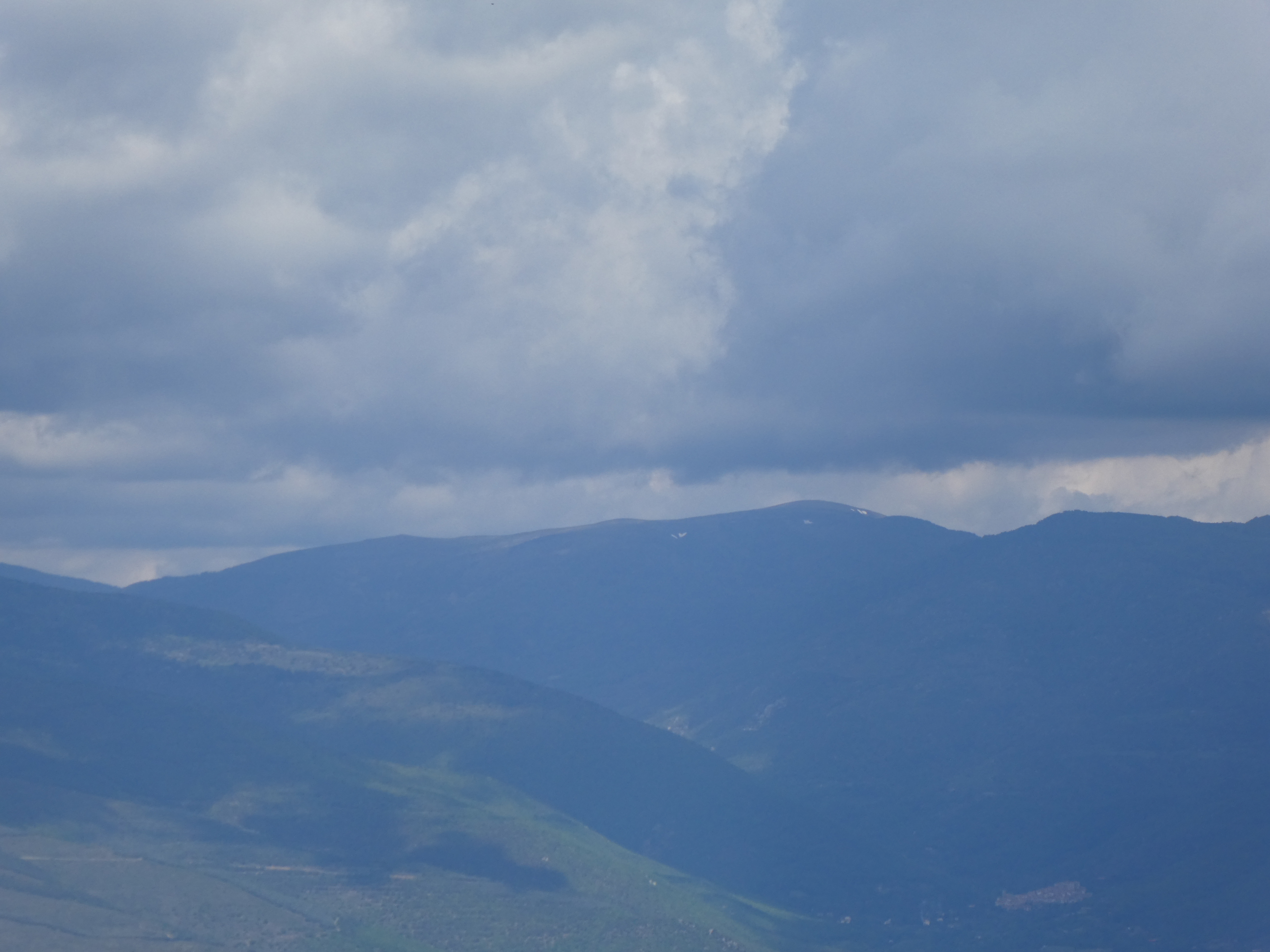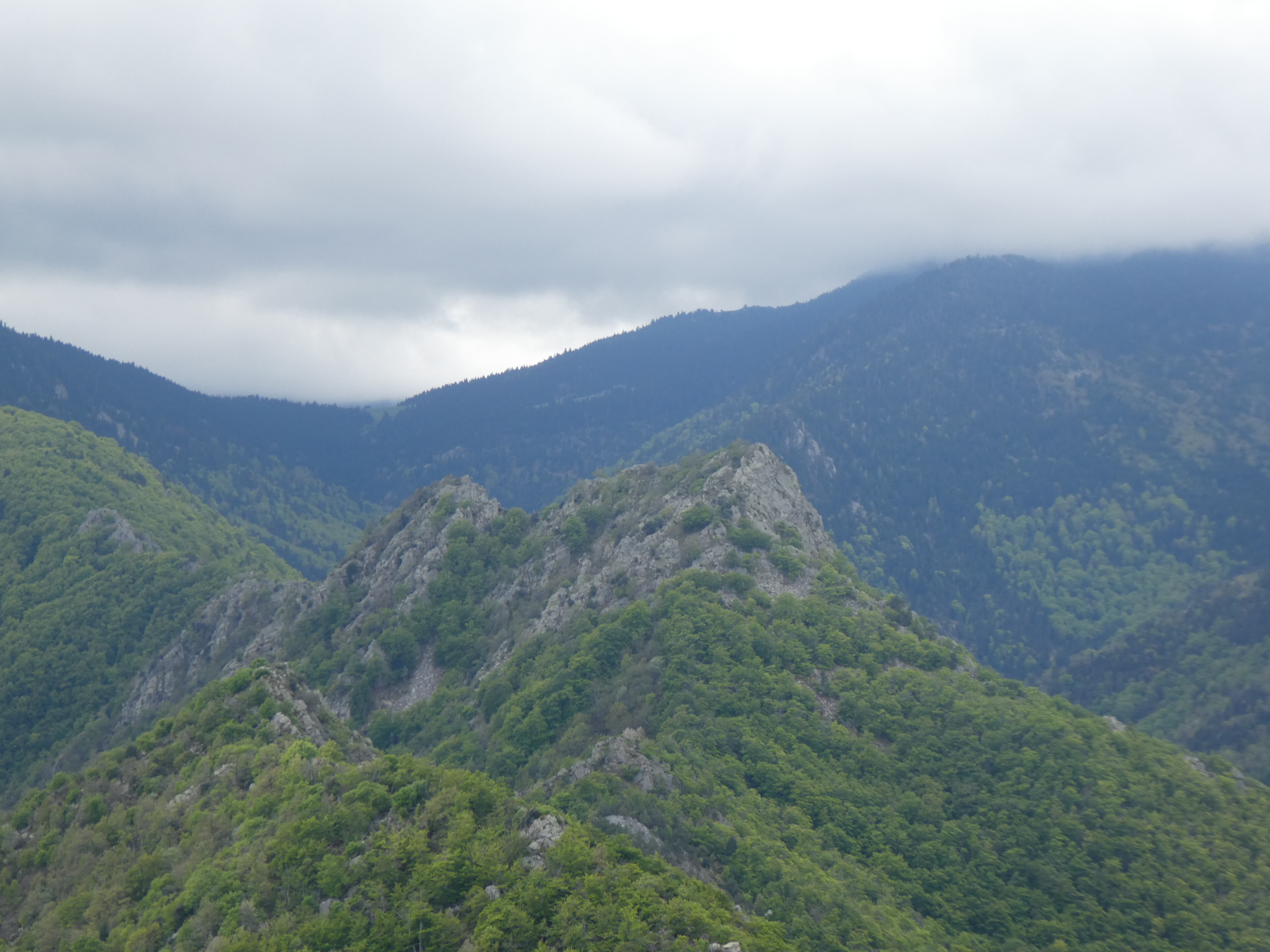 Zoom sur la Serre de la Grande Crémade (609 m) au centre et le Montolier de Perellós (707 m) à droite