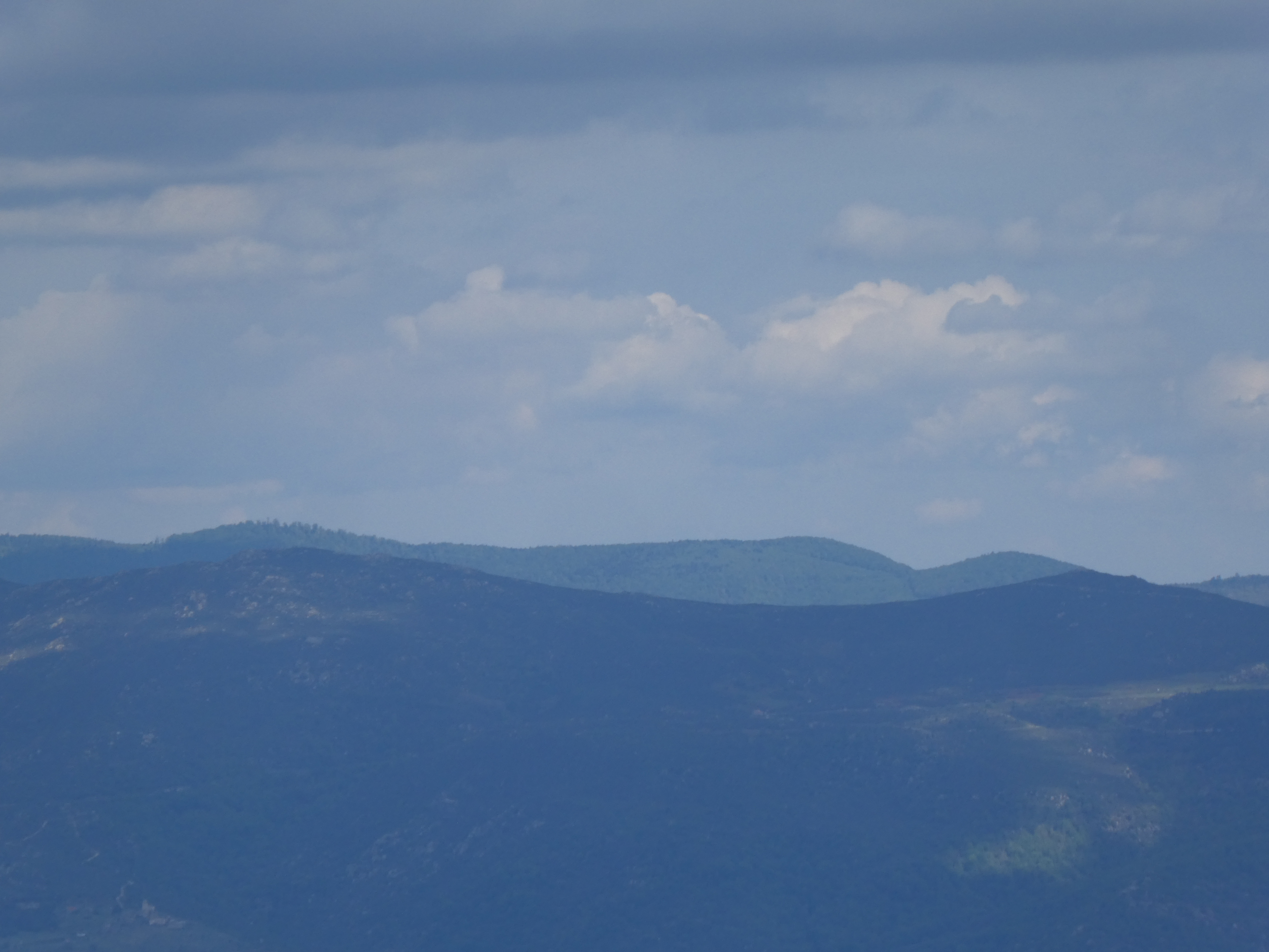 Zoom sur le Pech d'Auroux (940 m) à gauche, le Sarraoute (929 m) au centre et le Milobre de Massac (907 m) à droite