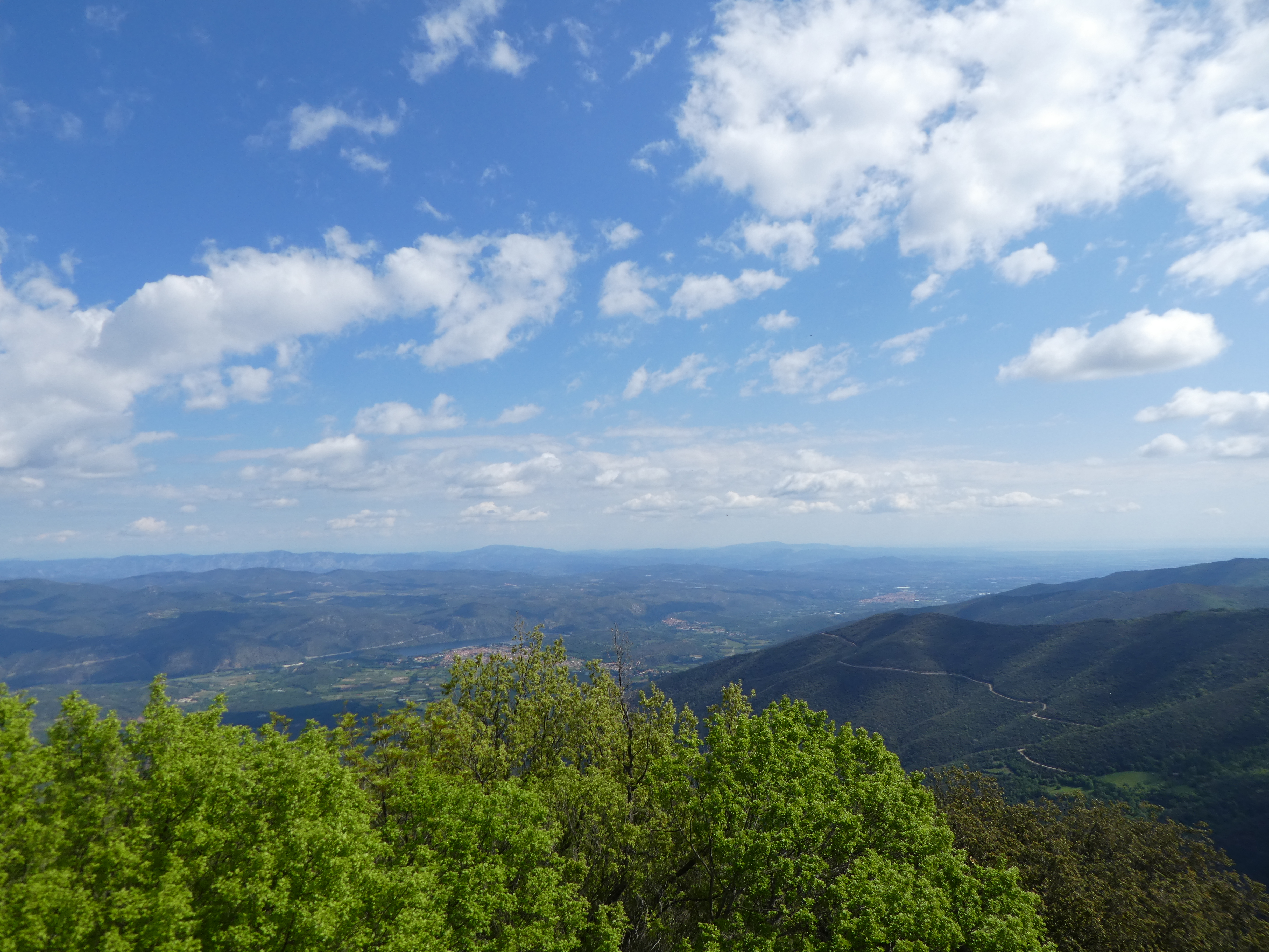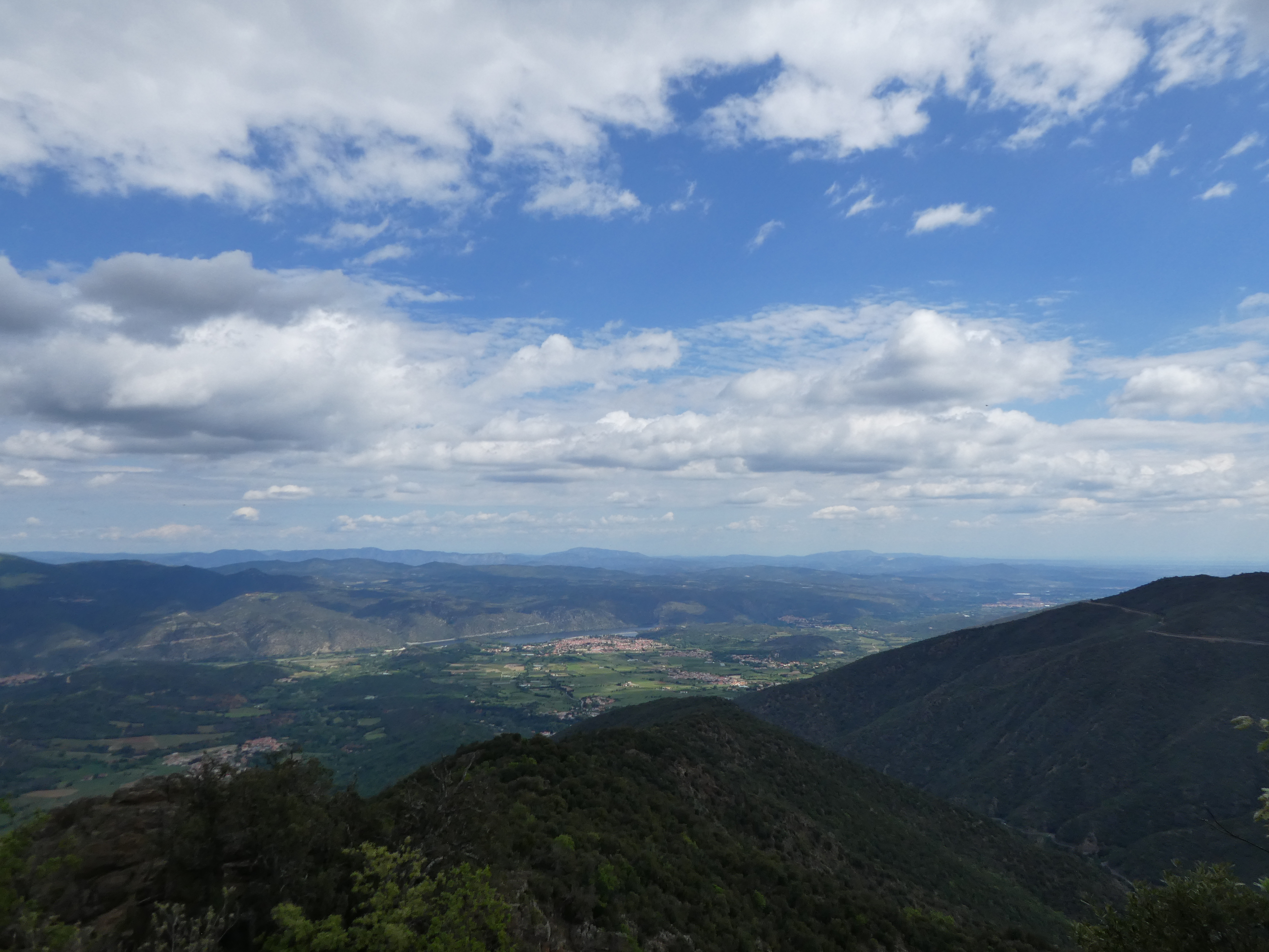 Arrivée au sommet du Roc de l'Agla (1107 m) : panorama semblable à celui du Puig dels Moros avec vue plus restreinte sur le massif du Canigou