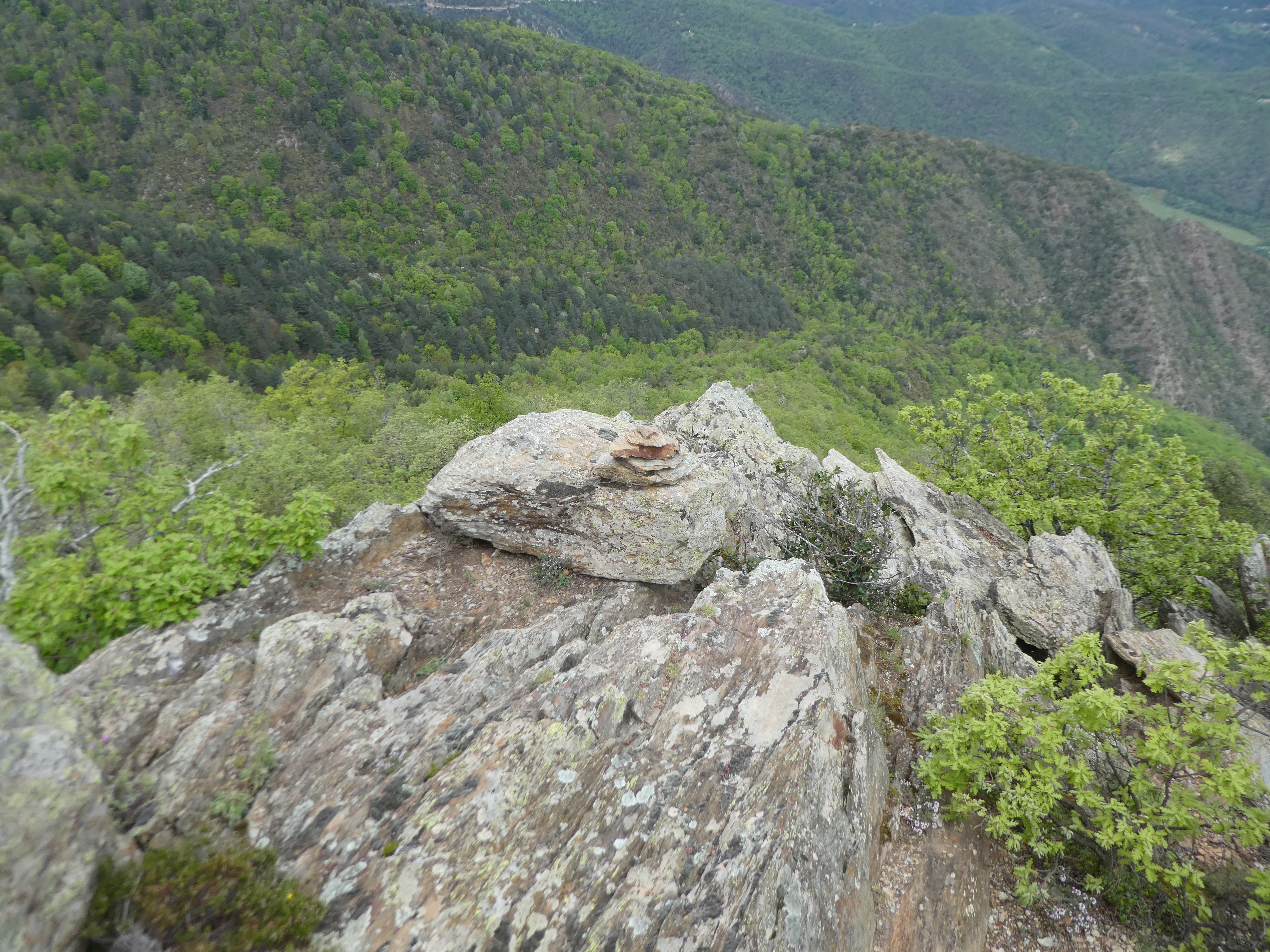A ce croisement cairné avec l'itinéraire d'accès au Roc de l'Agla (450 mètres après le précédent), suivre ce dernier partant sur la droite direction Roc de l'Agla