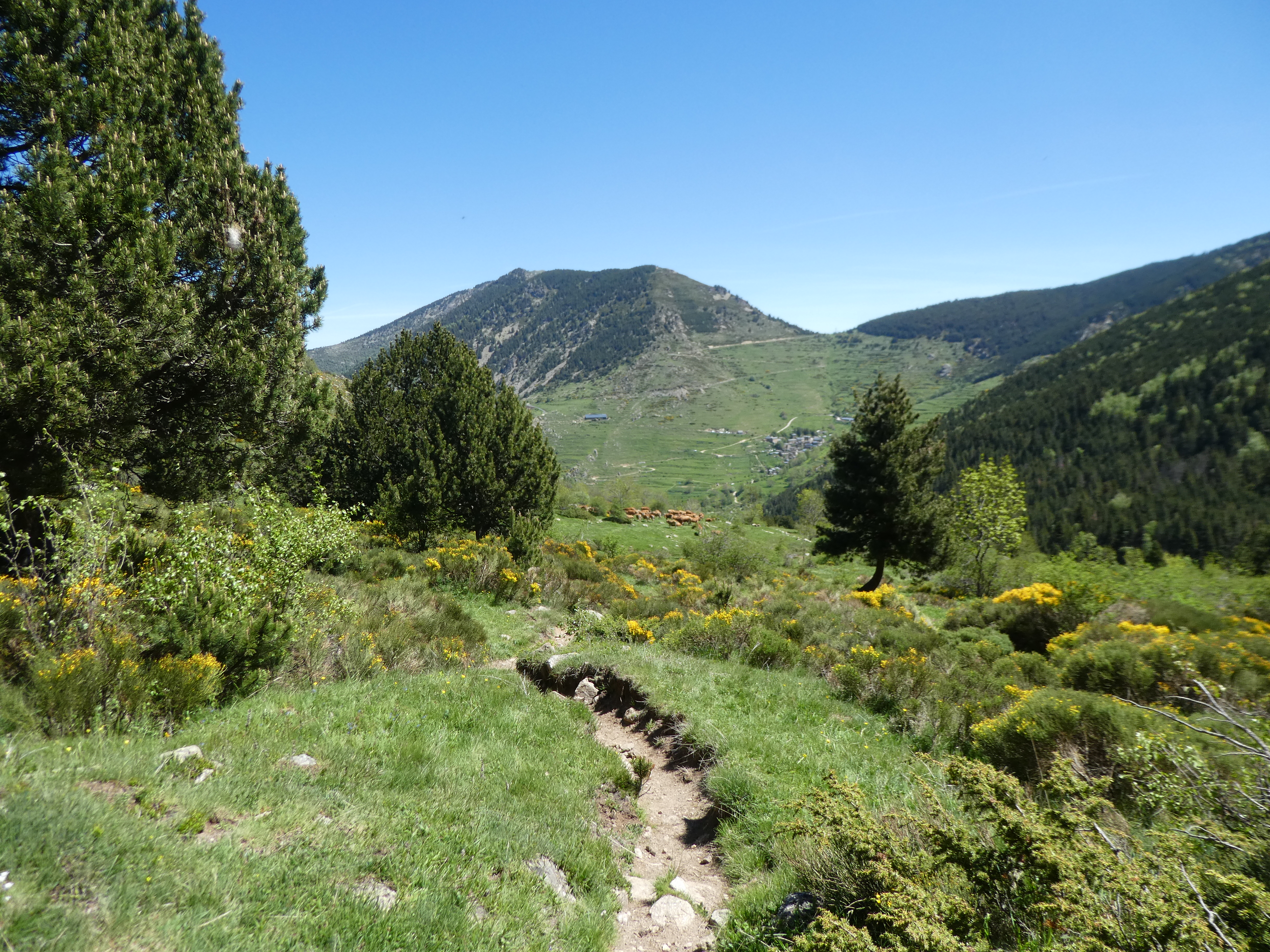 Mantet (1548 m) : suivre la route principale partant tout droit direction Portella de Mentet, balisé en rouge et blanc dorénavant