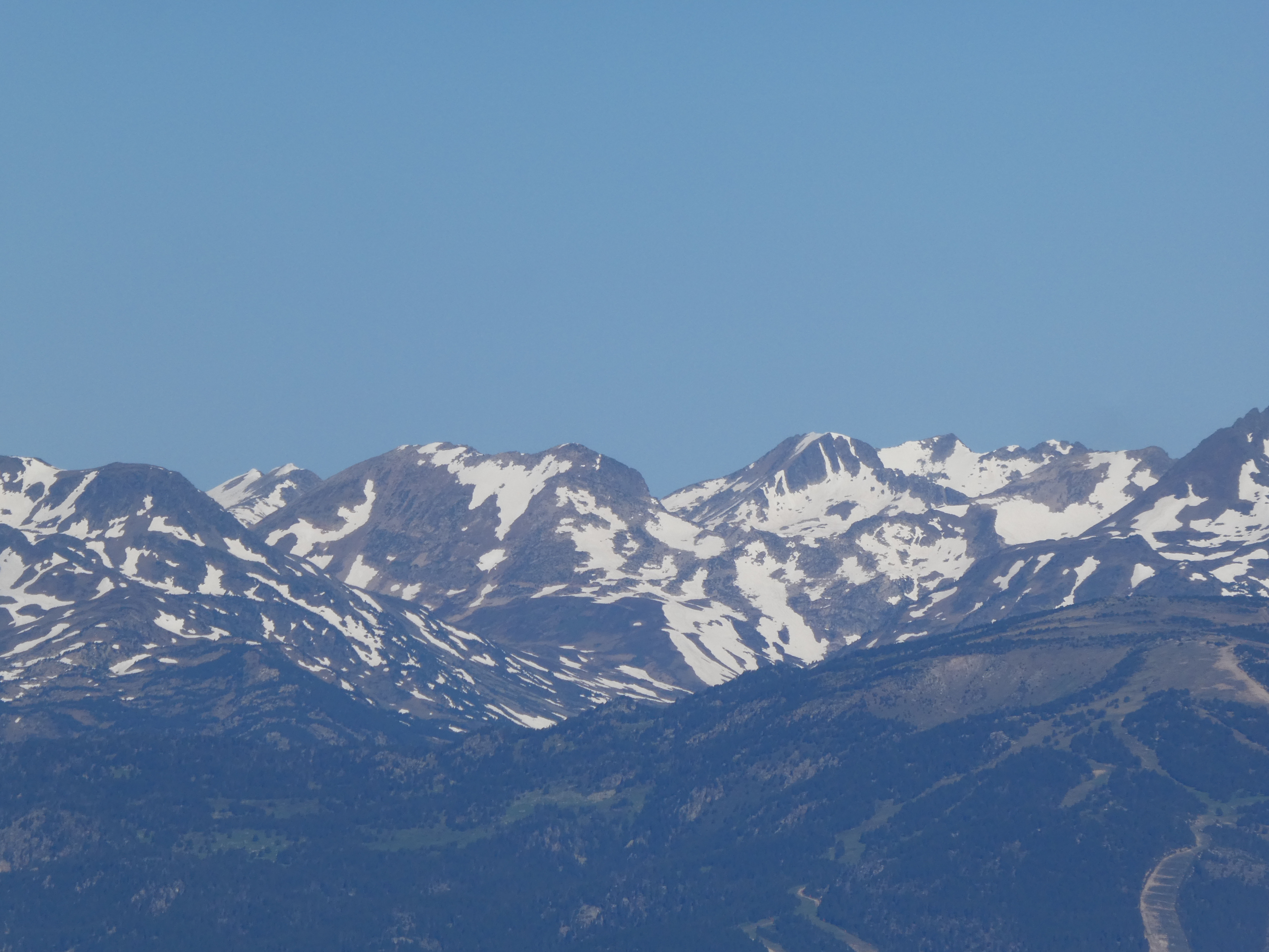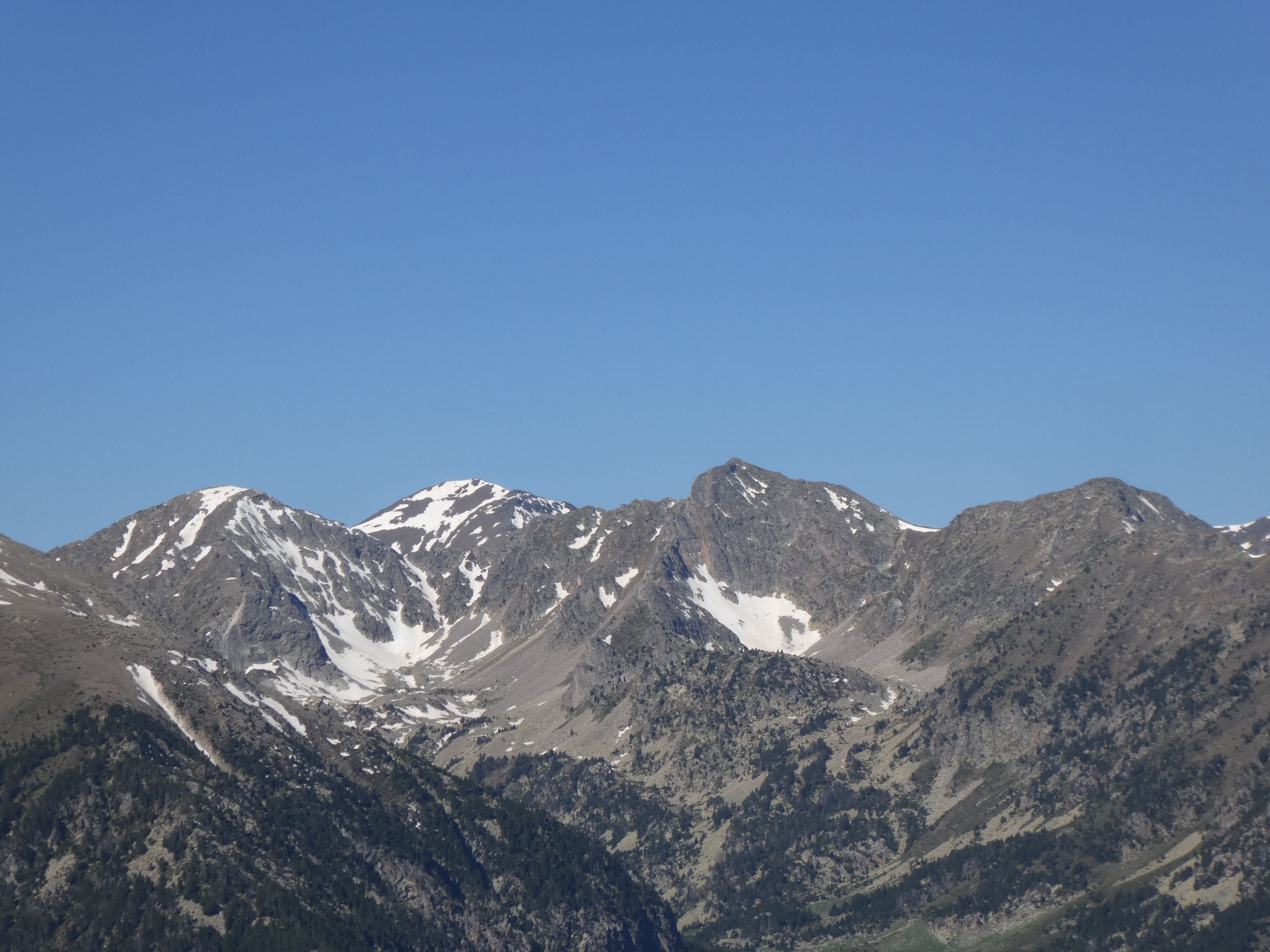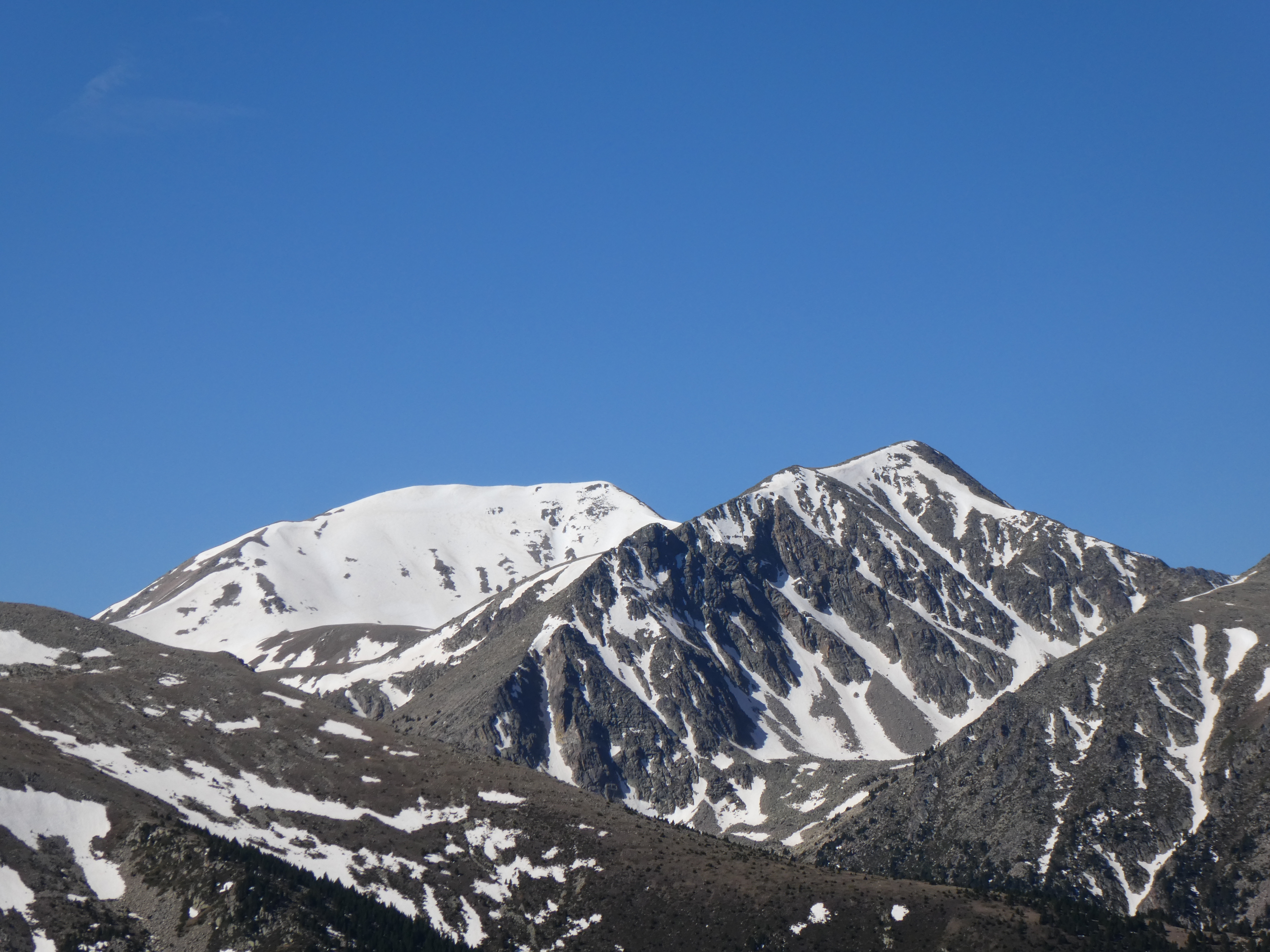 Zoom sur el Madres (2469 m) au centre-gauche et le Roc Negre (2459 m) au centre-droit