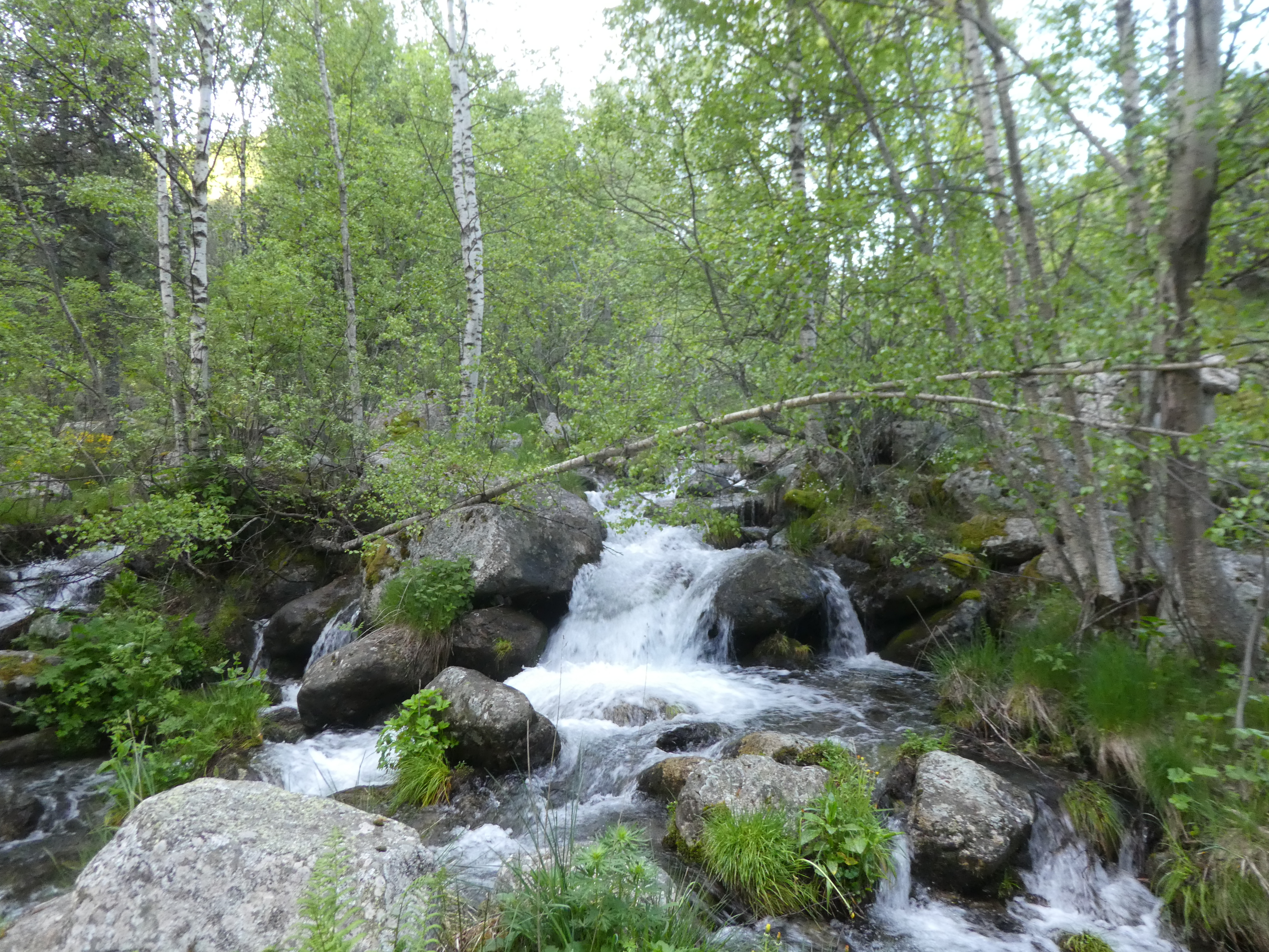 A ce croisement avec le sentier longeant la Ribera de Mentet situé juste après la passerelle (150 mètres après le précédent), suivre ce dernier partant sur la droite direction Nyer, balisé en jaune