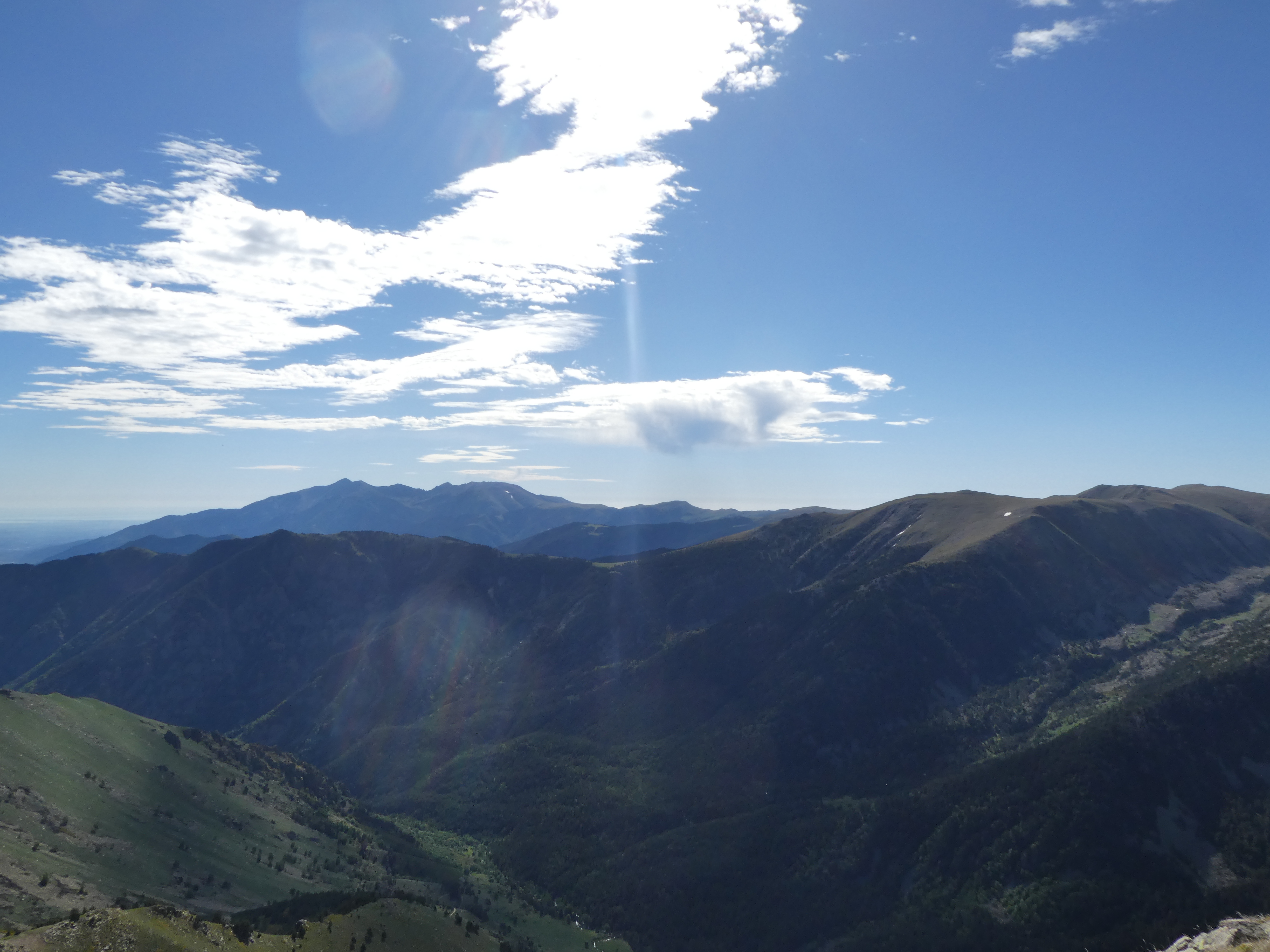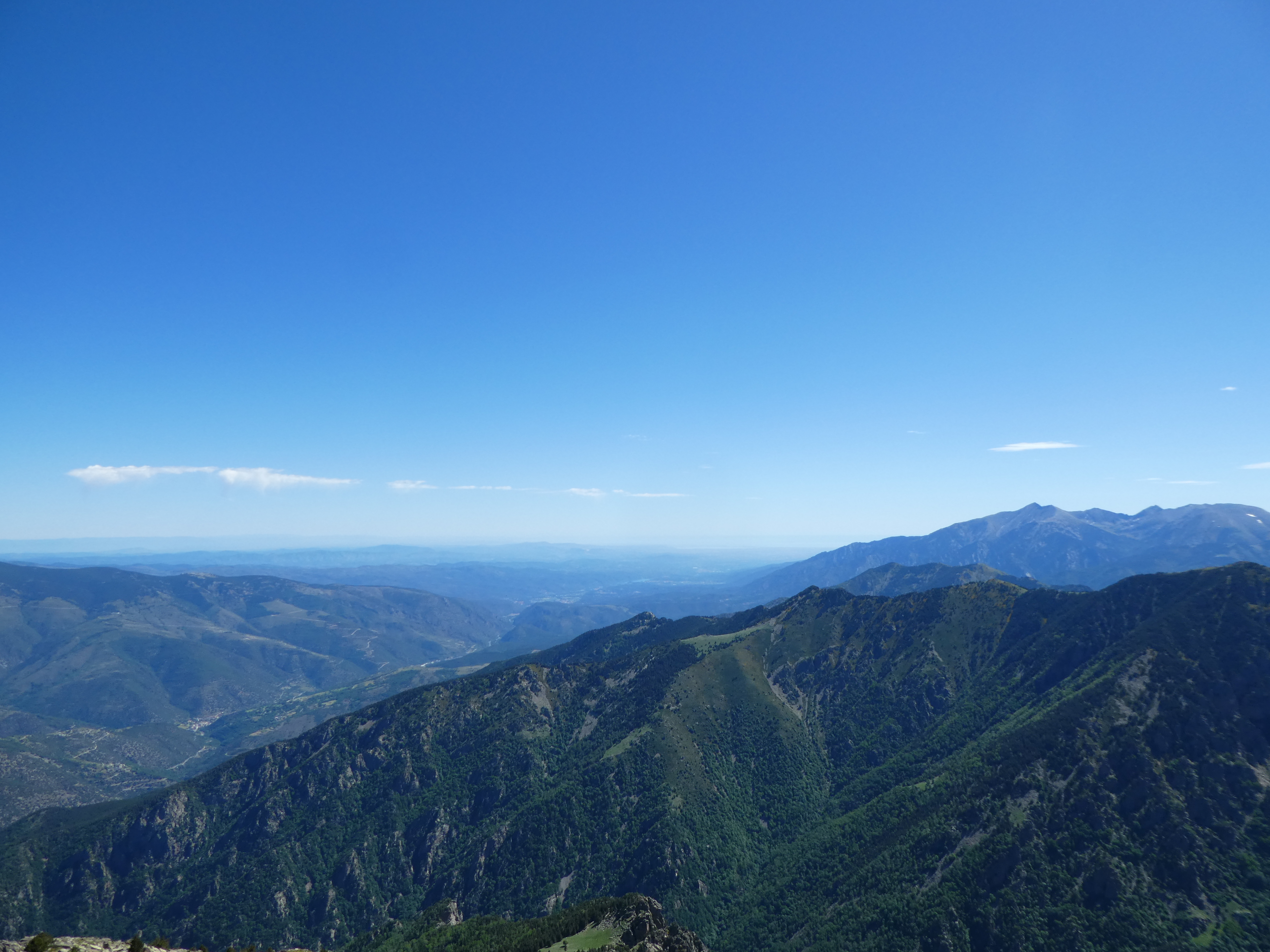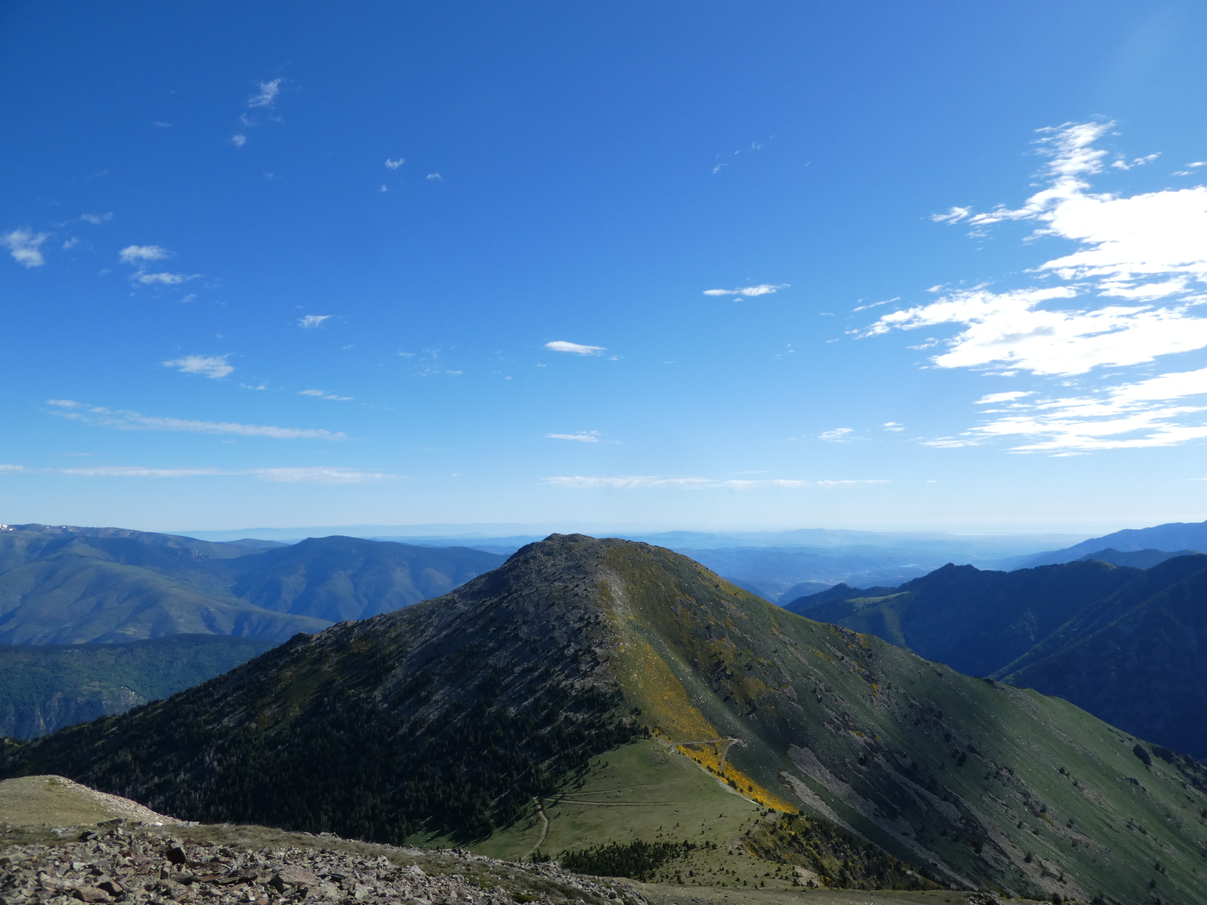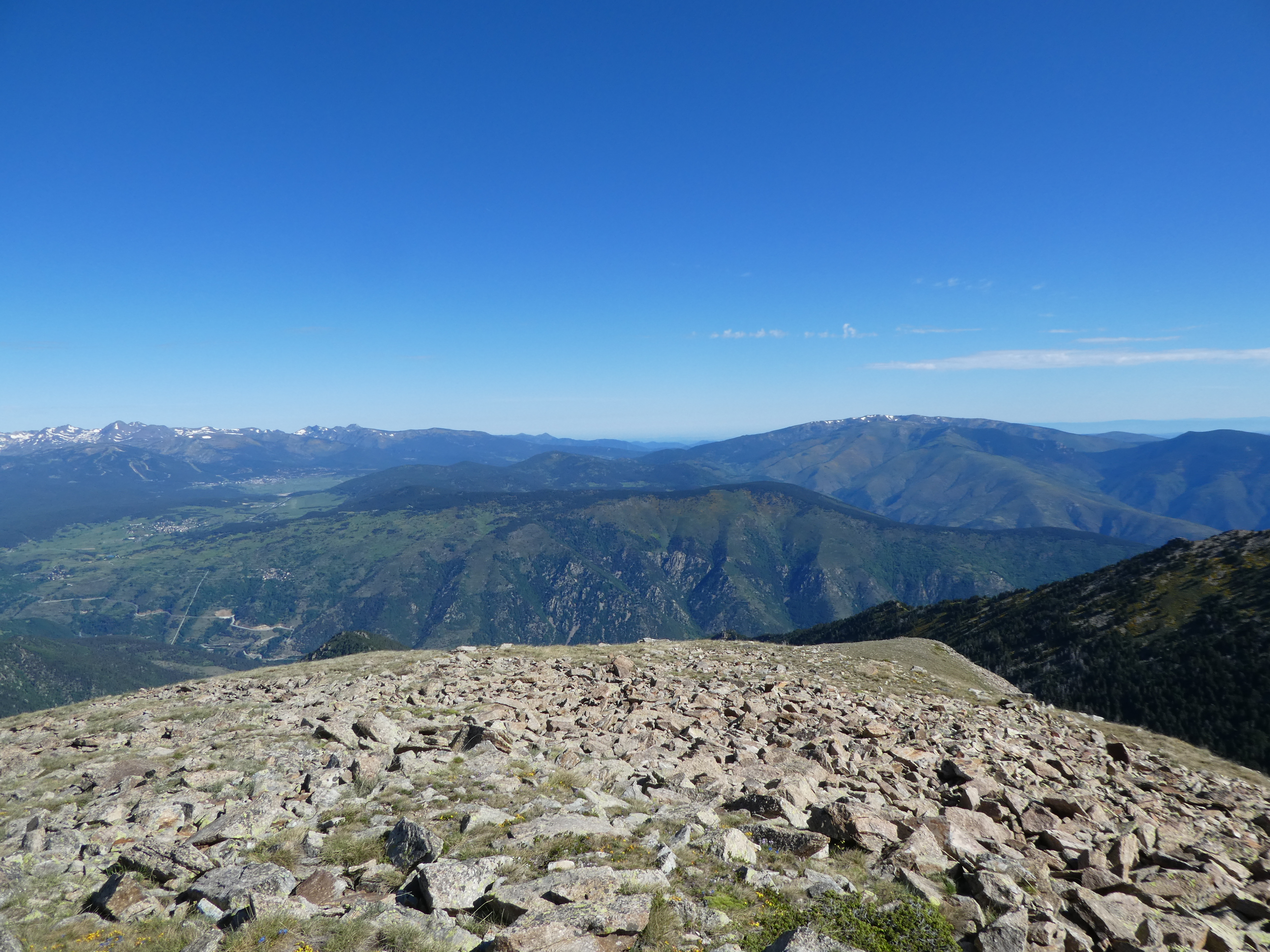 Arrivée au sommet du Pic Gallinàs (2624 m) : panorama semblable à celui du Puig Rodon avec vue plus étendue sur la Vallée de la Têt