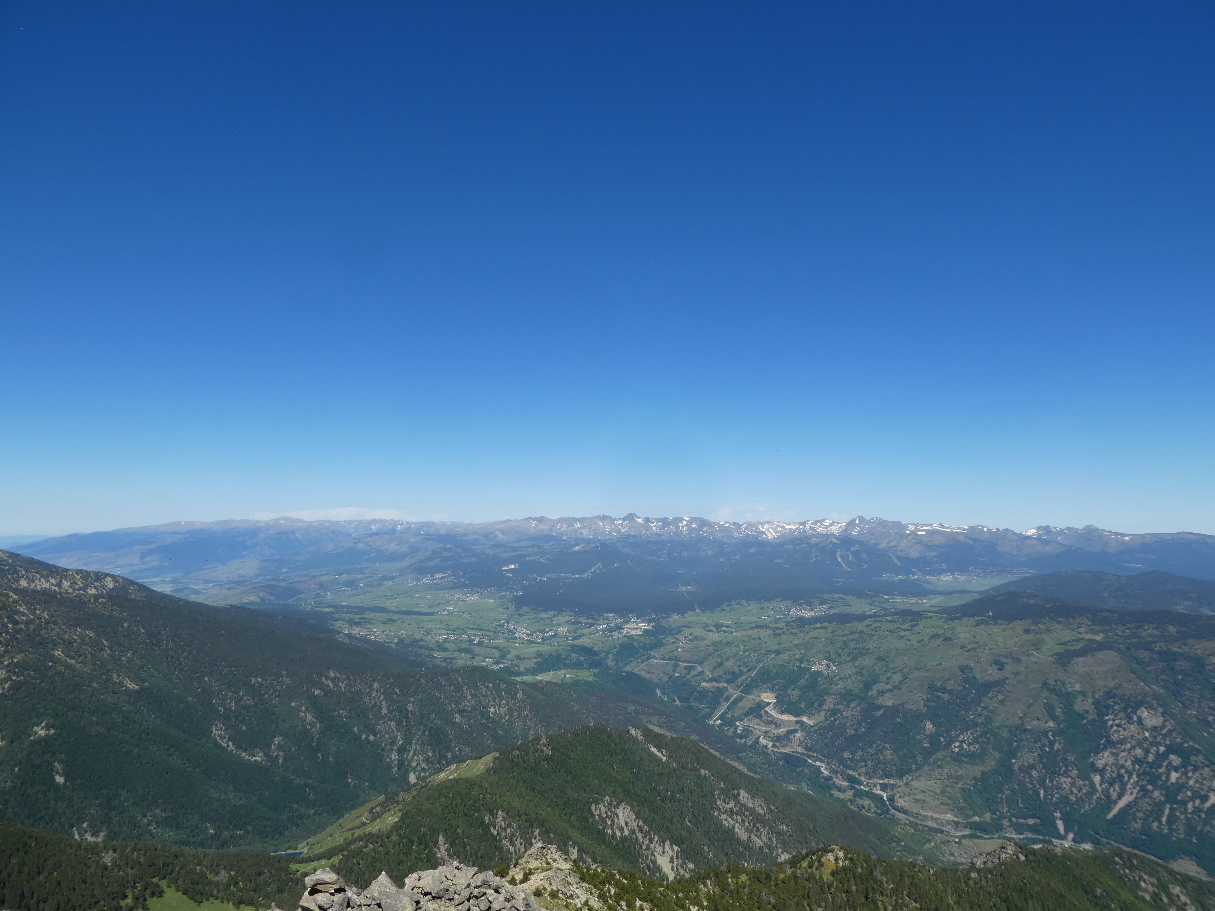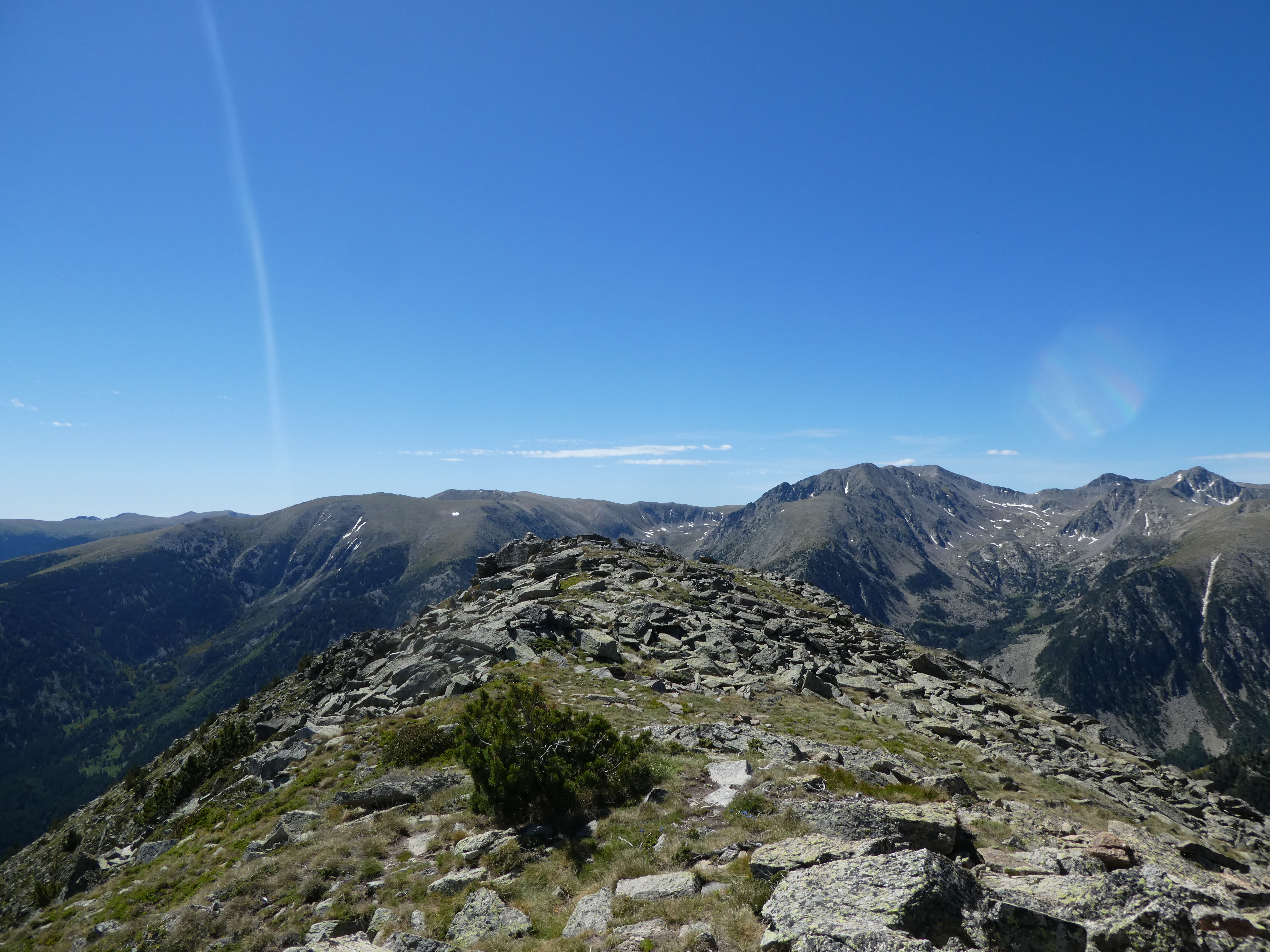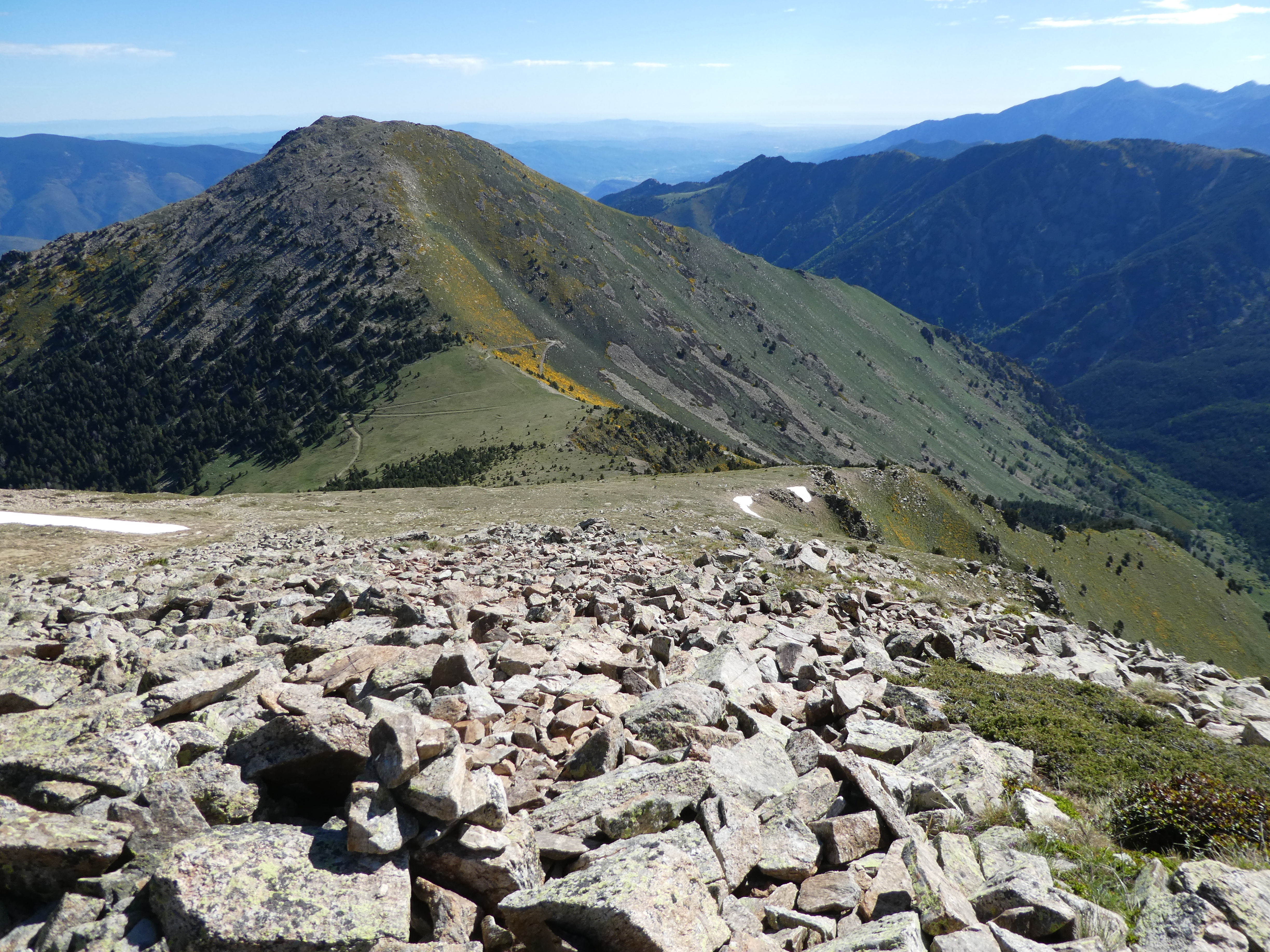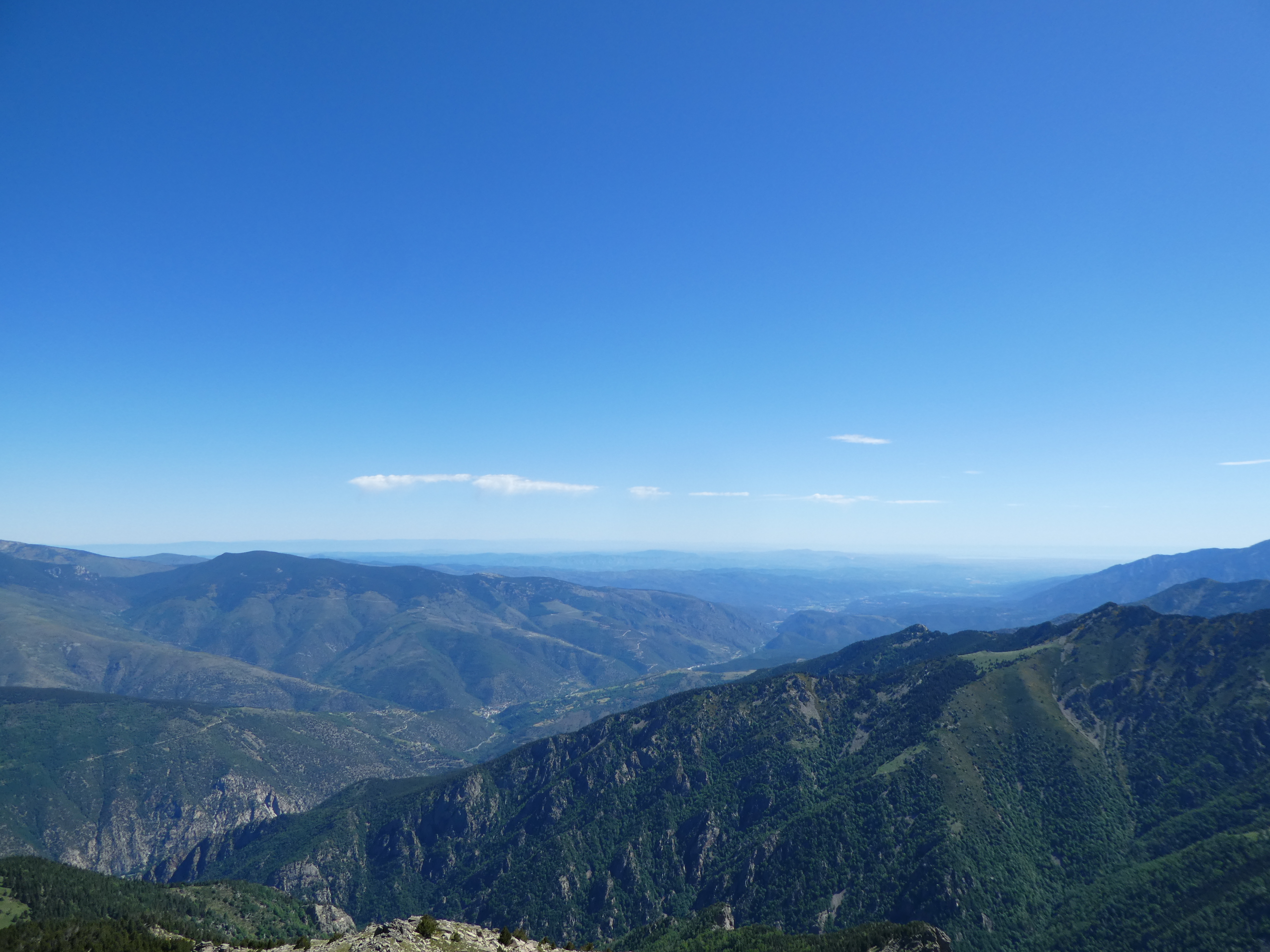 Arrivée au sommet du Pic Gallinàs (2624 m) : panorama semblable à celui du Puig Rodon avec vue plus étendue sur la Vallée de la Têt