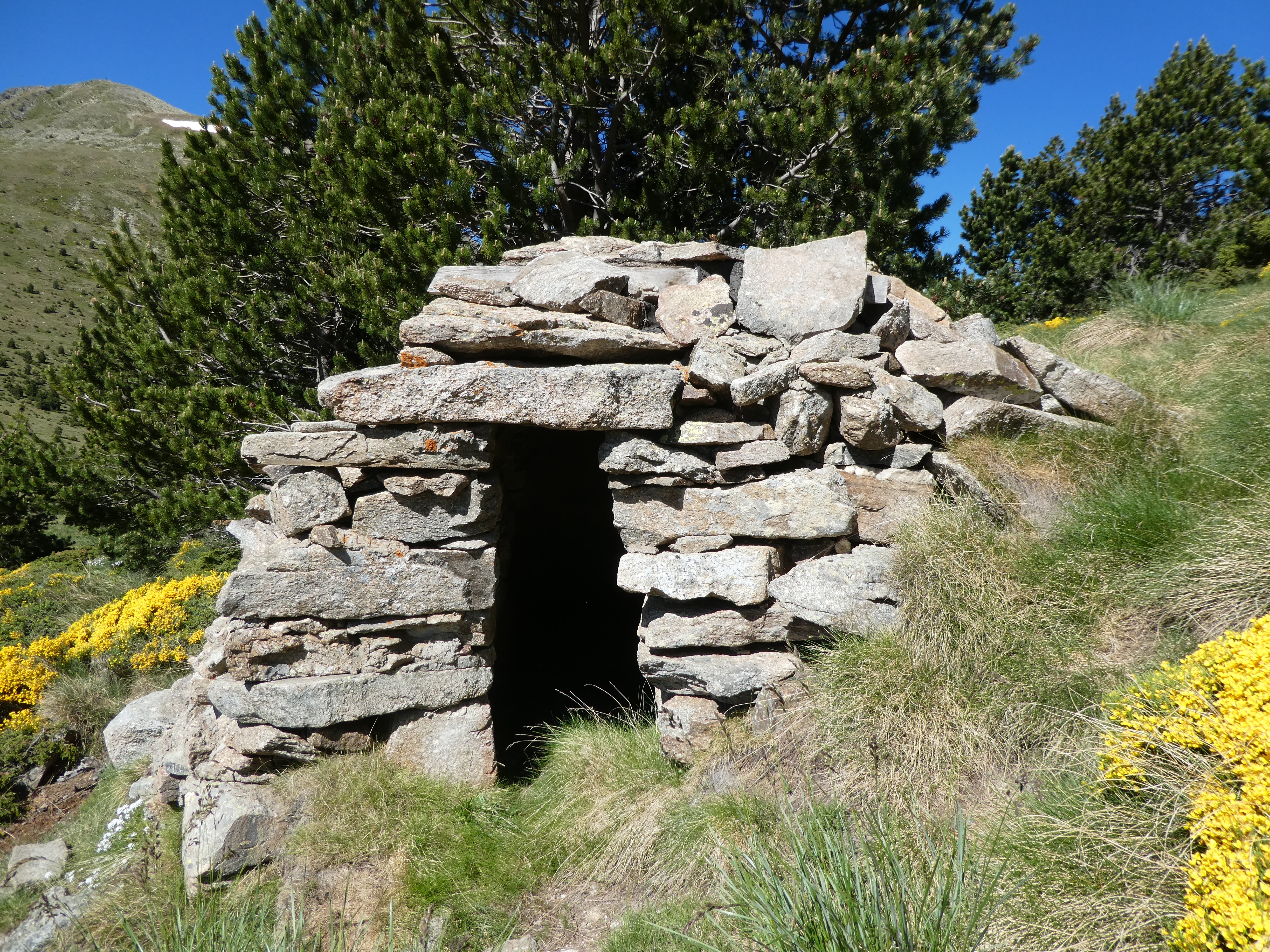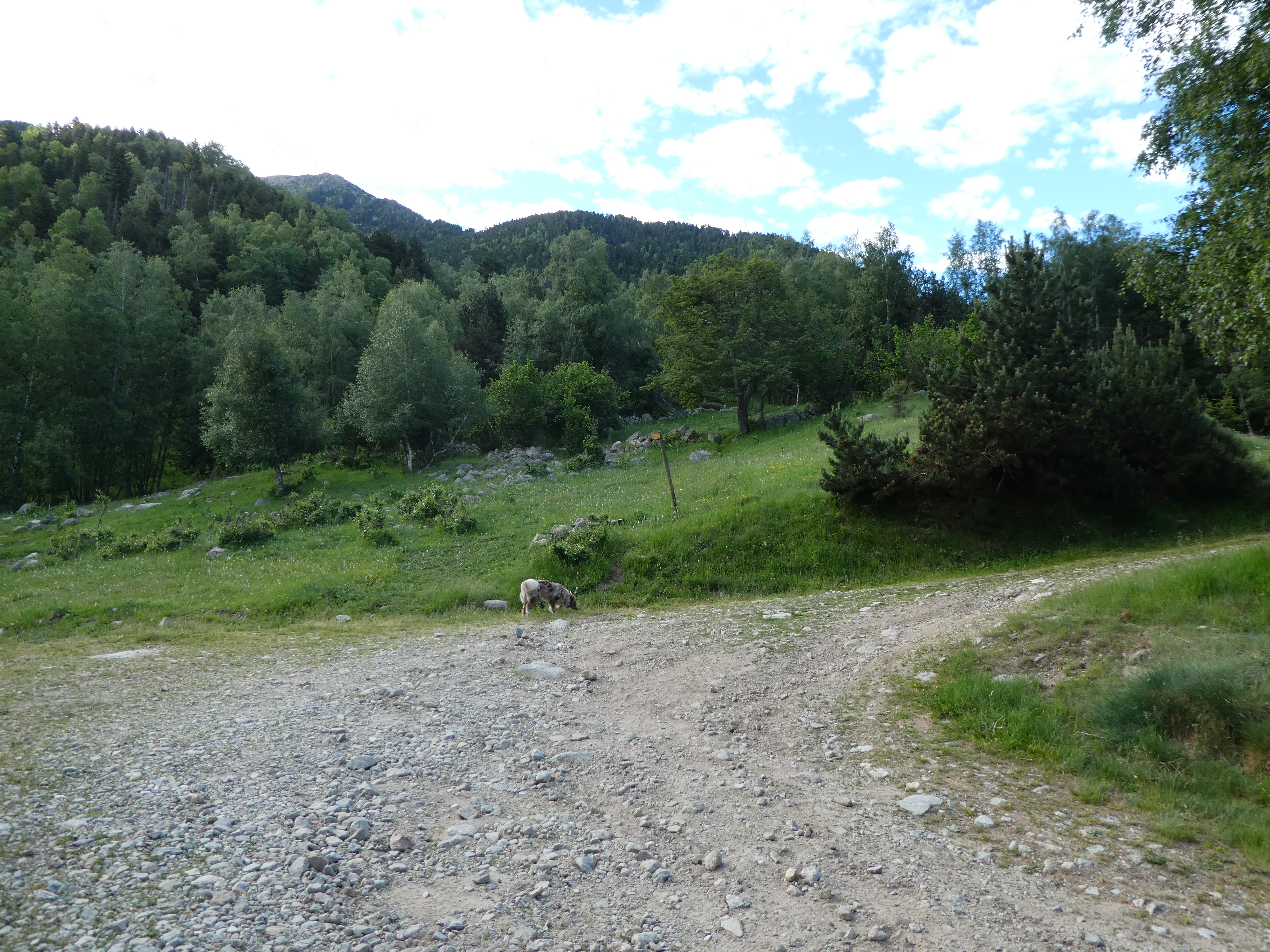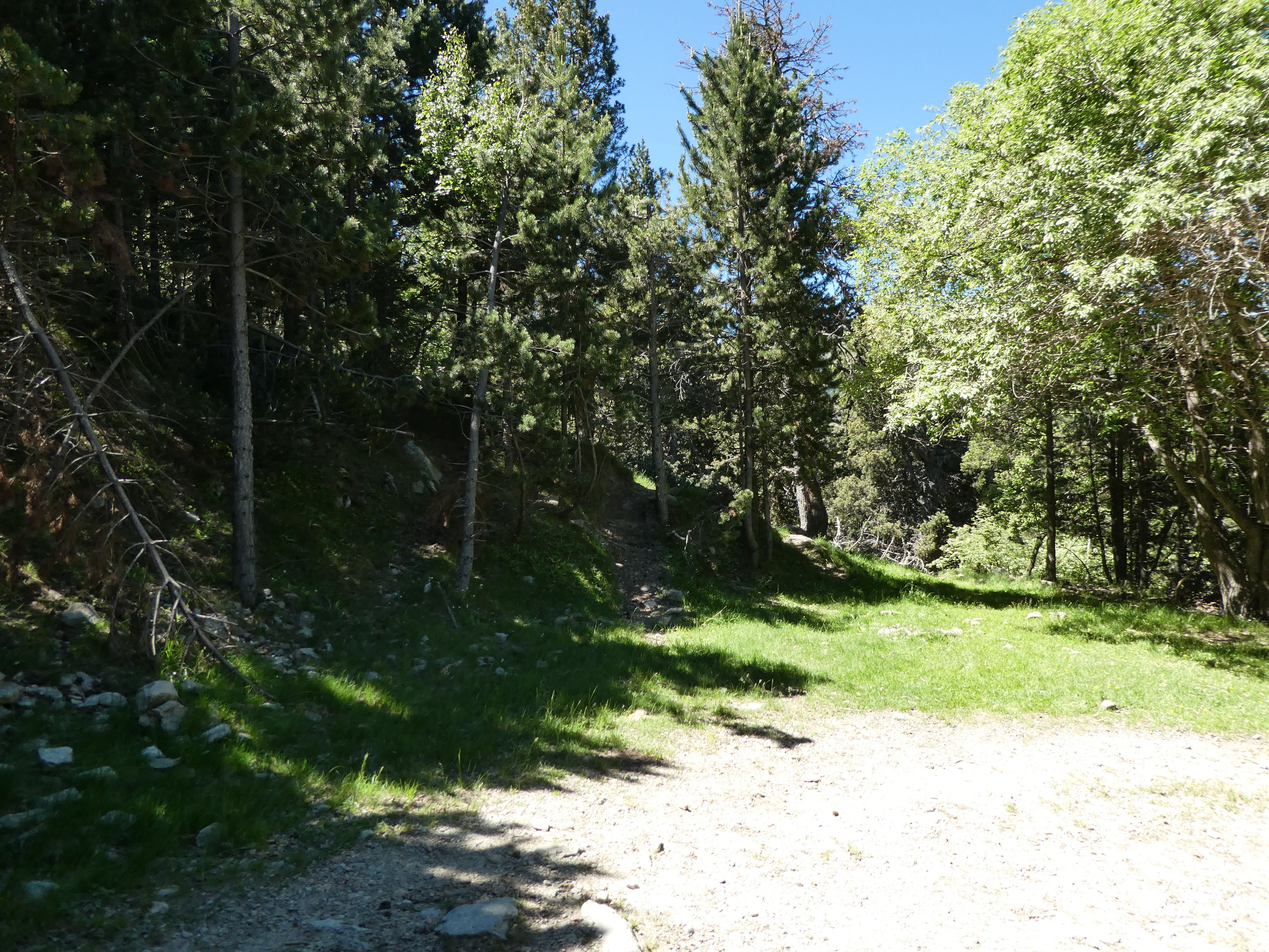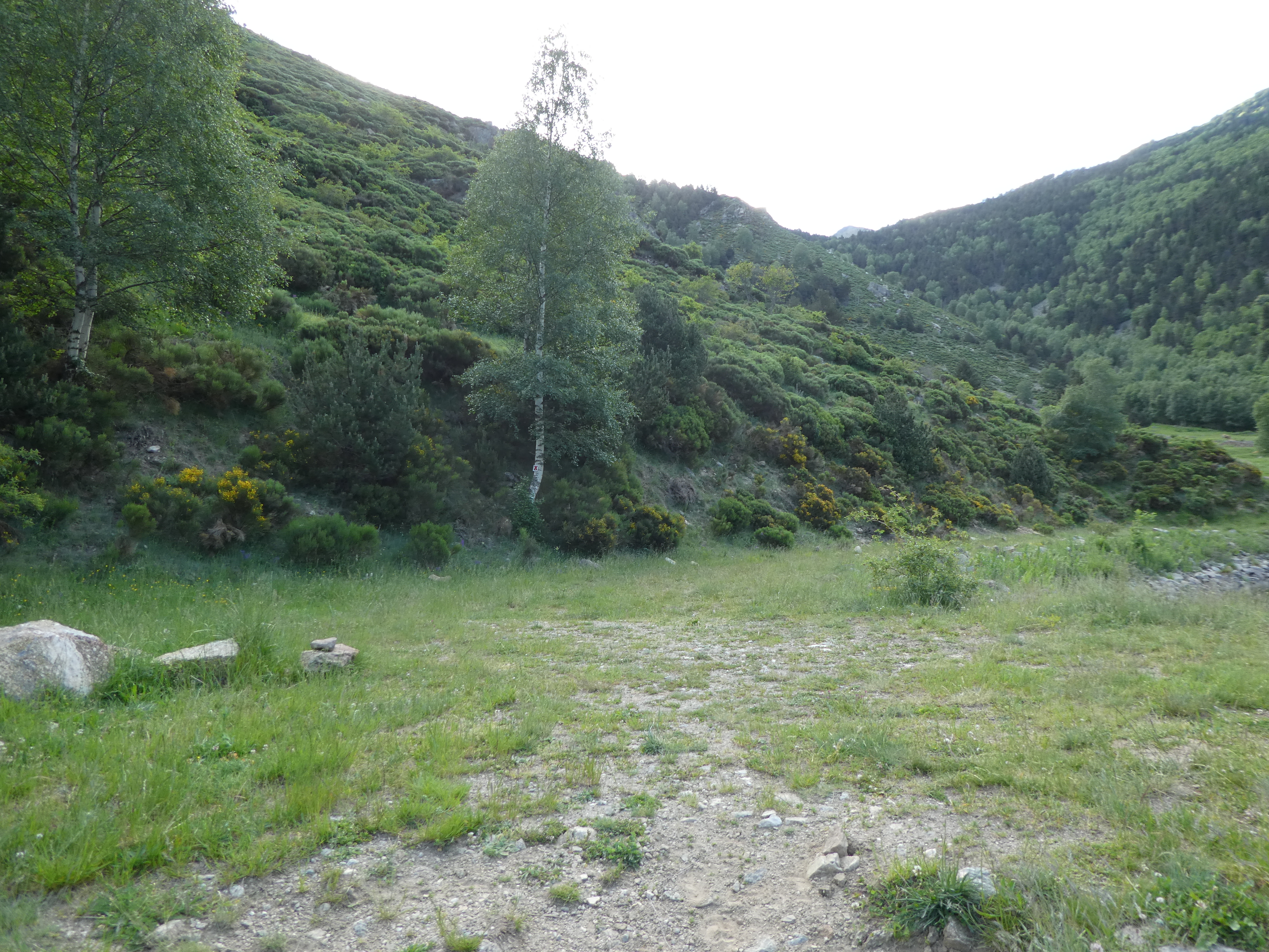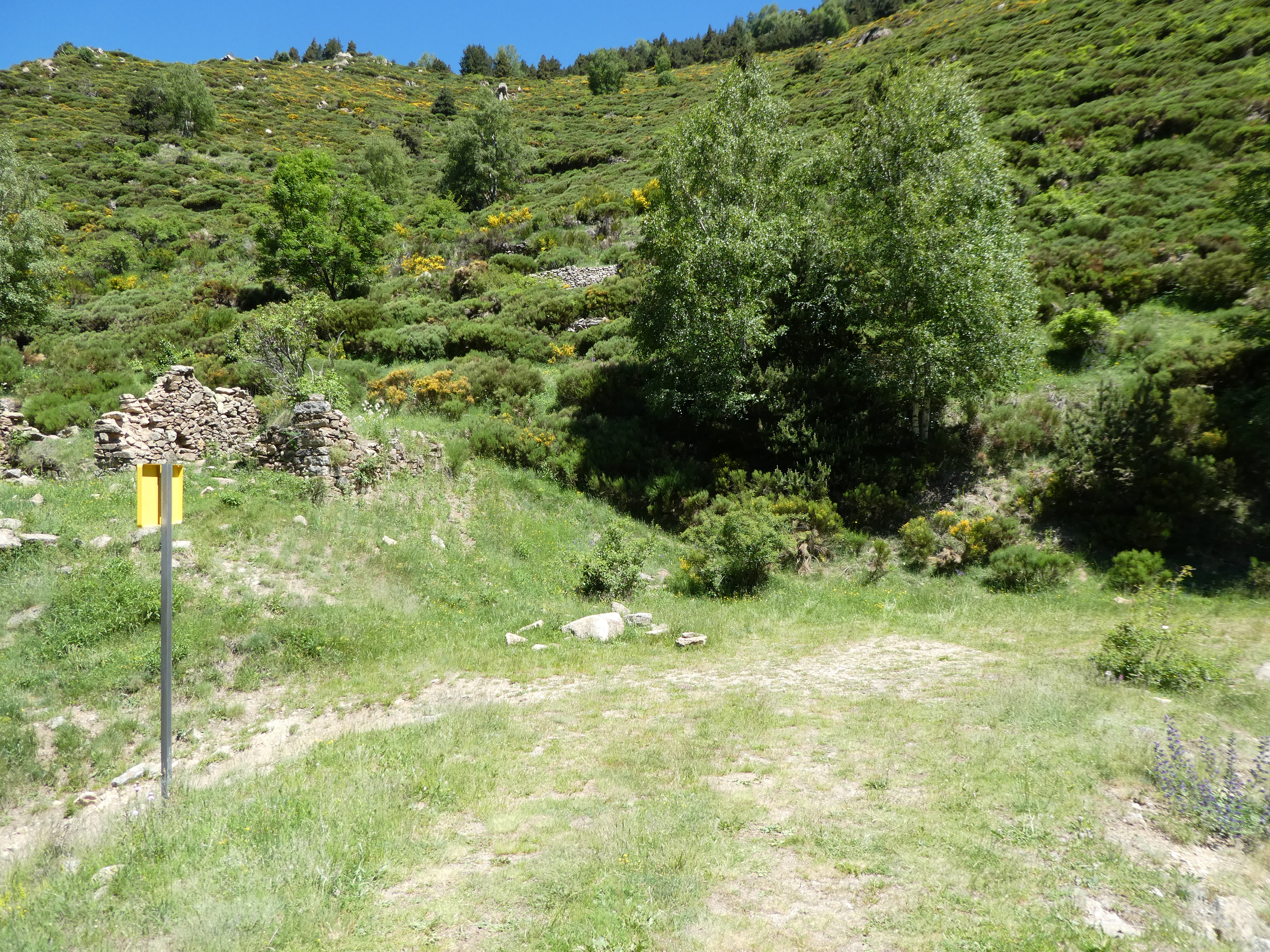 Cabana d'Aixeques (1684 m) : suivre le chemin partant sur la gauche puis celui partant sur la droite quelques mètres plus loin direction Prats-Balaguer, aucun balisage dorénavant