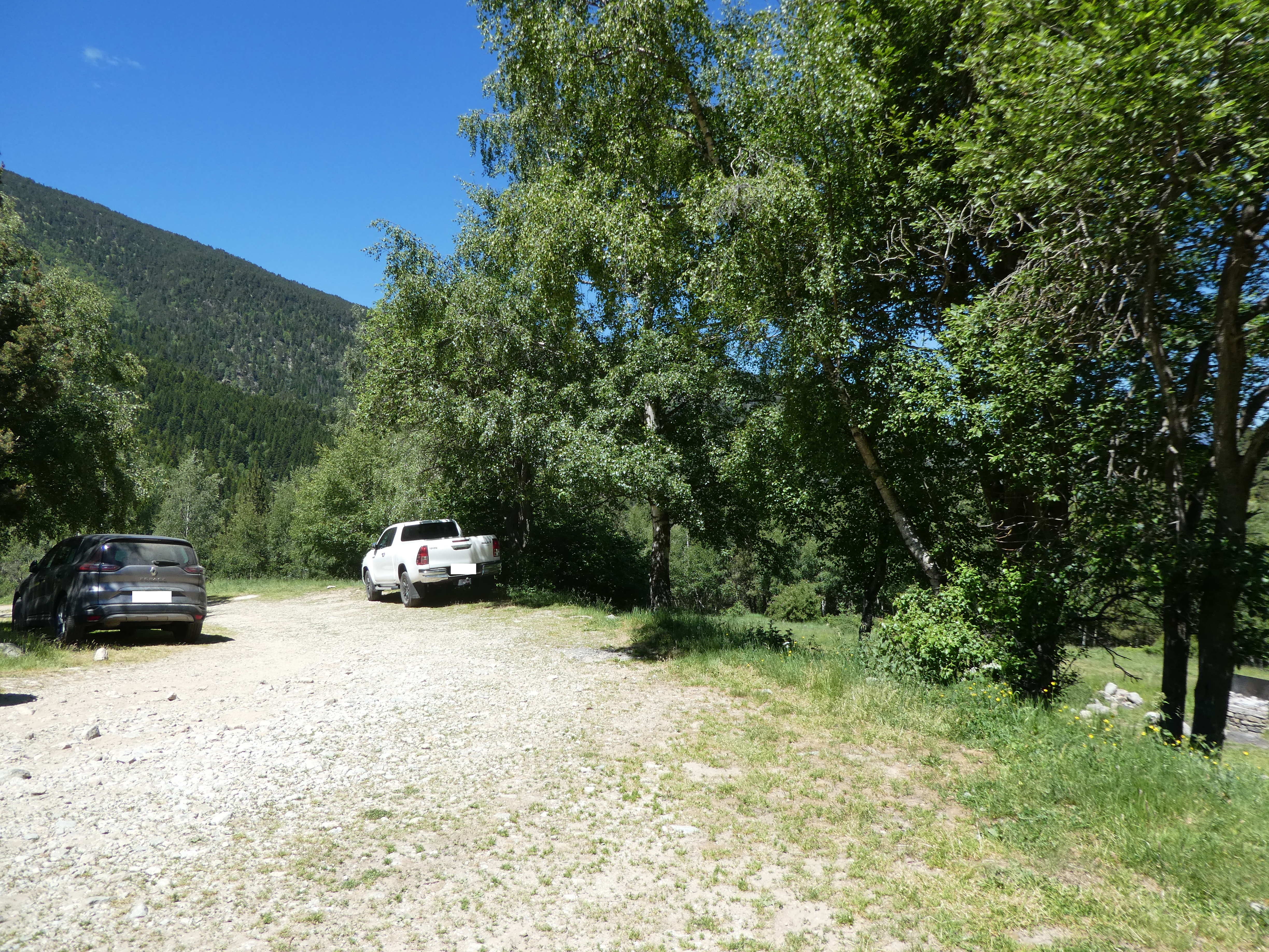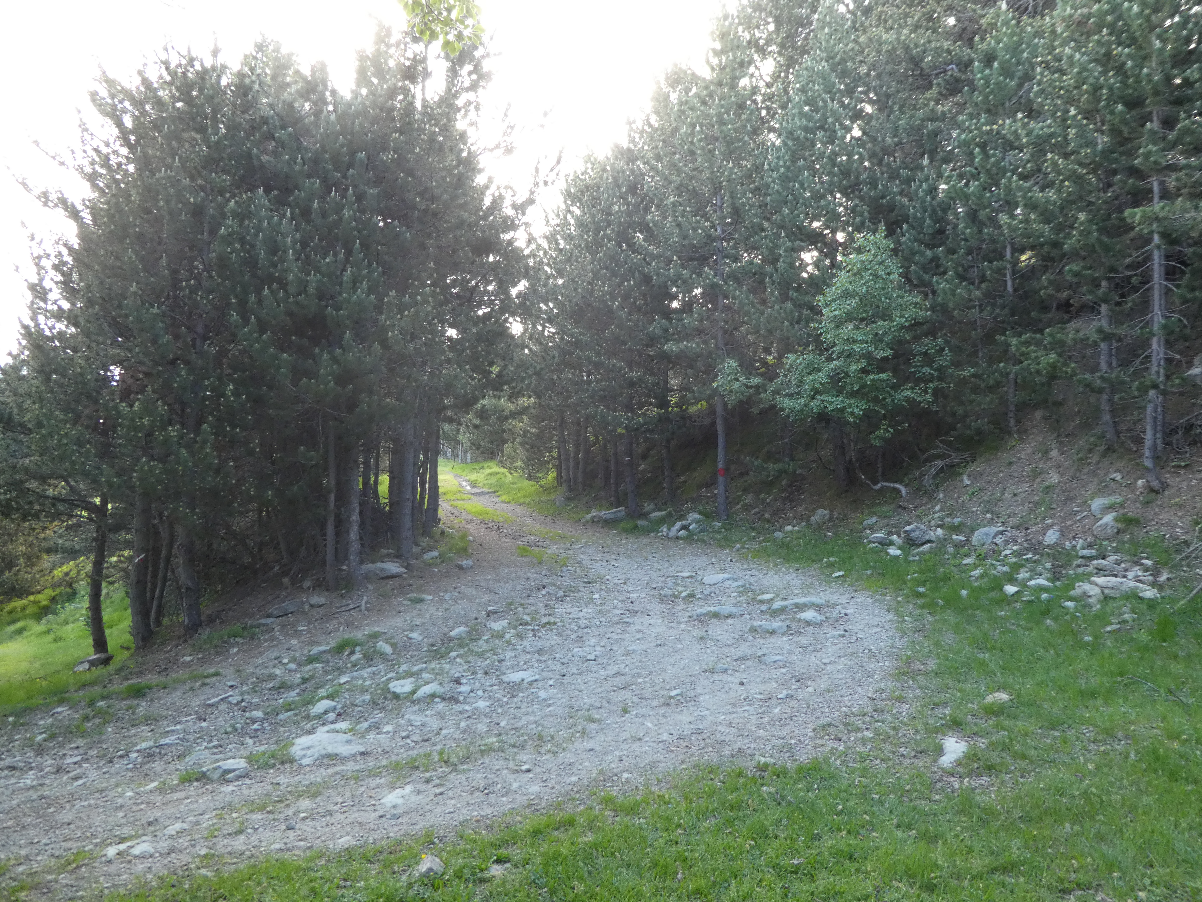 A ce croisement situé au niveau du parking de la retenue d'eau d'Aumet et marqué par la présence d'un panneau directionnel (200 mètres après avoir quitté la Cabana d'Aixeques), suivre le chemin descendant sur la droite et longeant le lac direction Prats-Balaguer