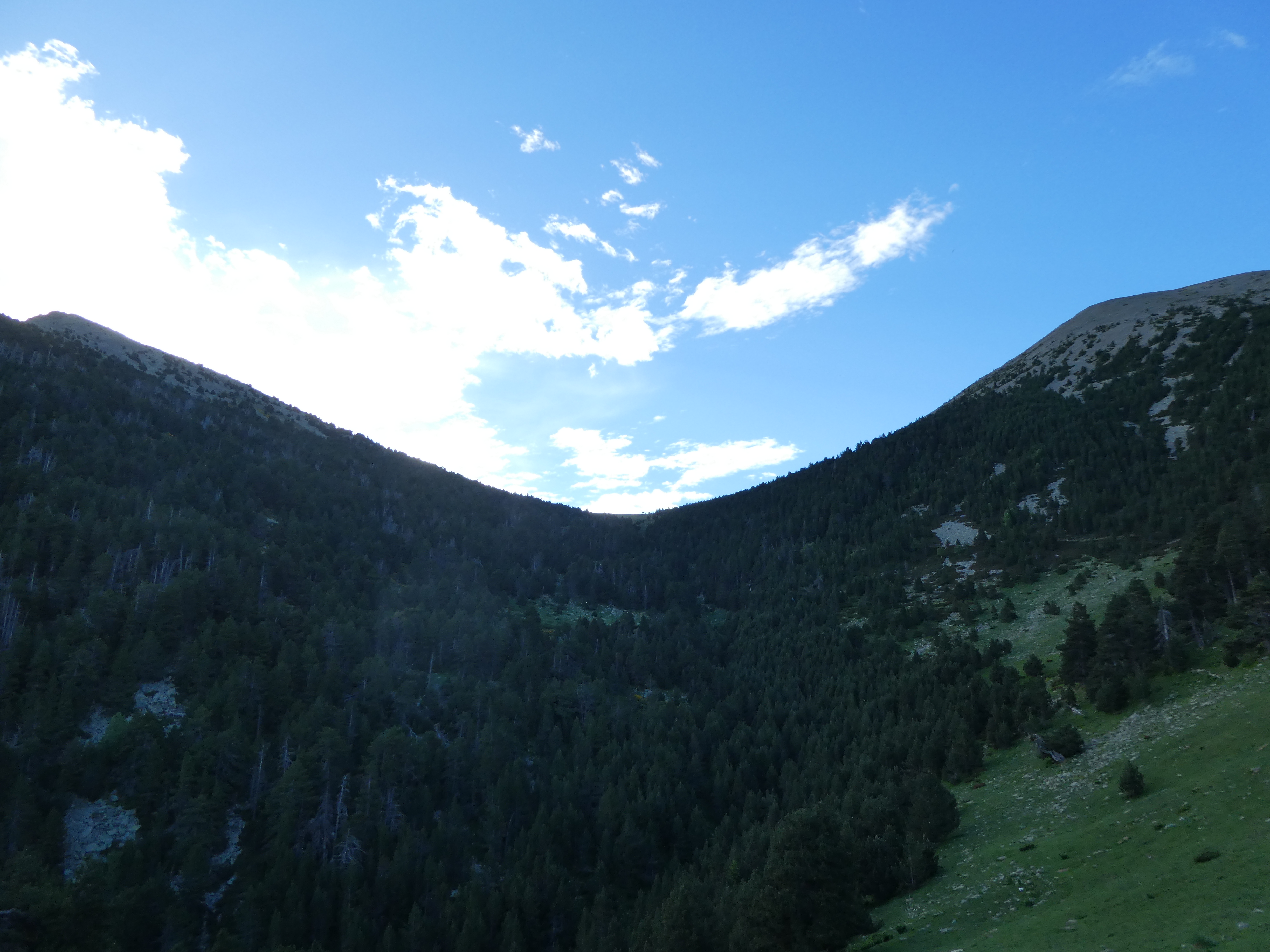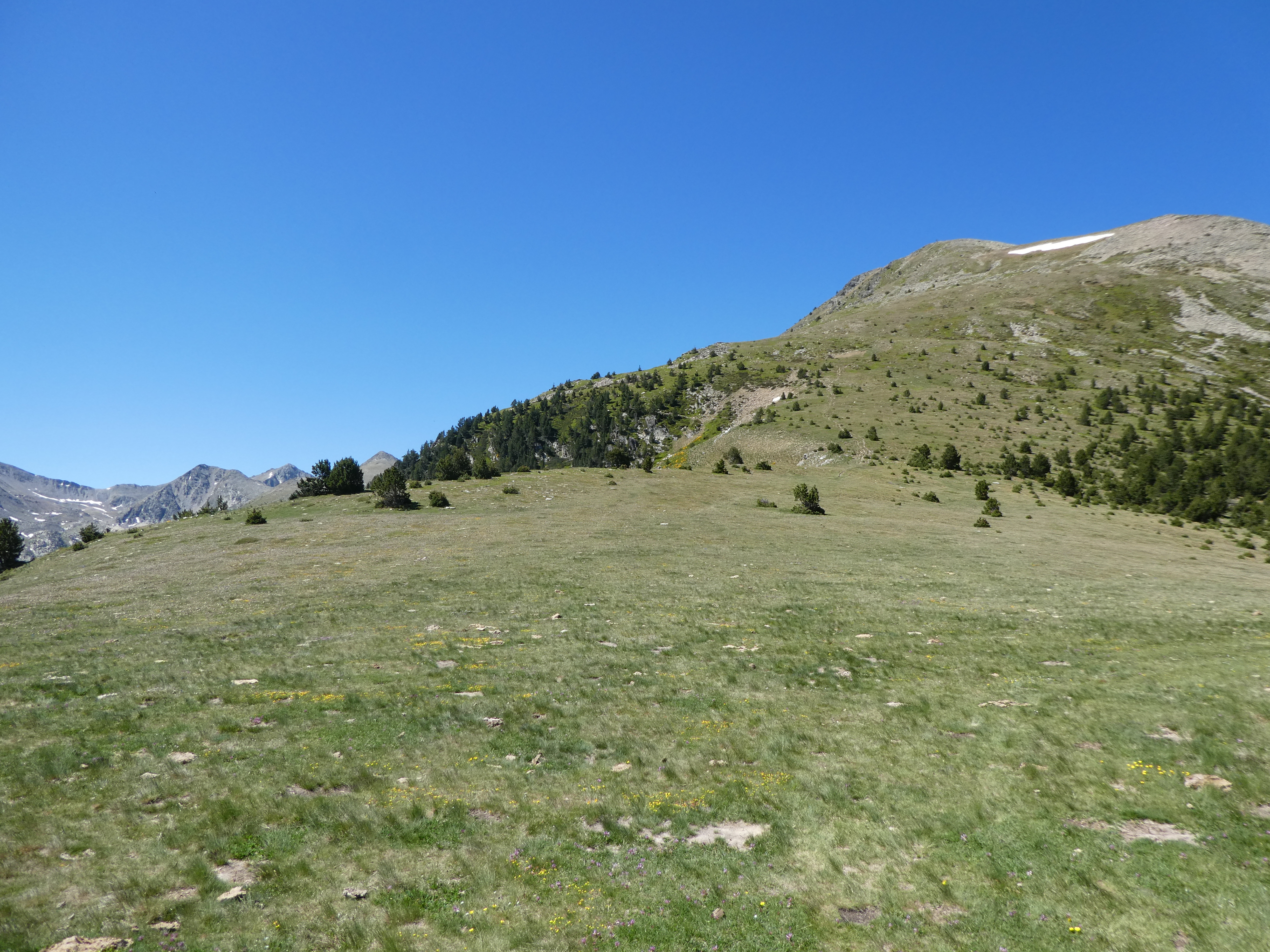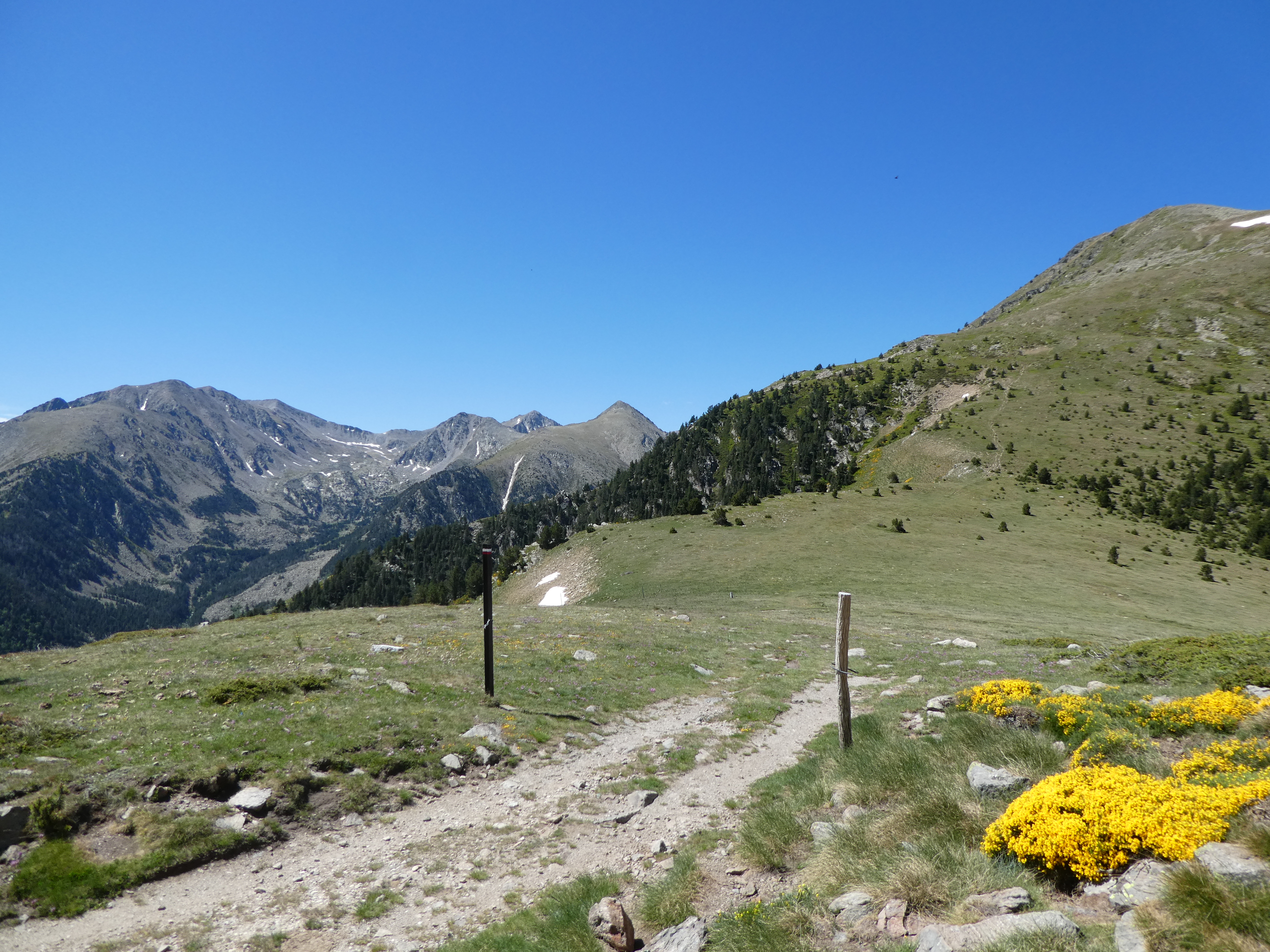 Vue sur le Coll Mitjà, un col typiquement pyrénéen bordé de deux sommets équidistants de quasi même altitude