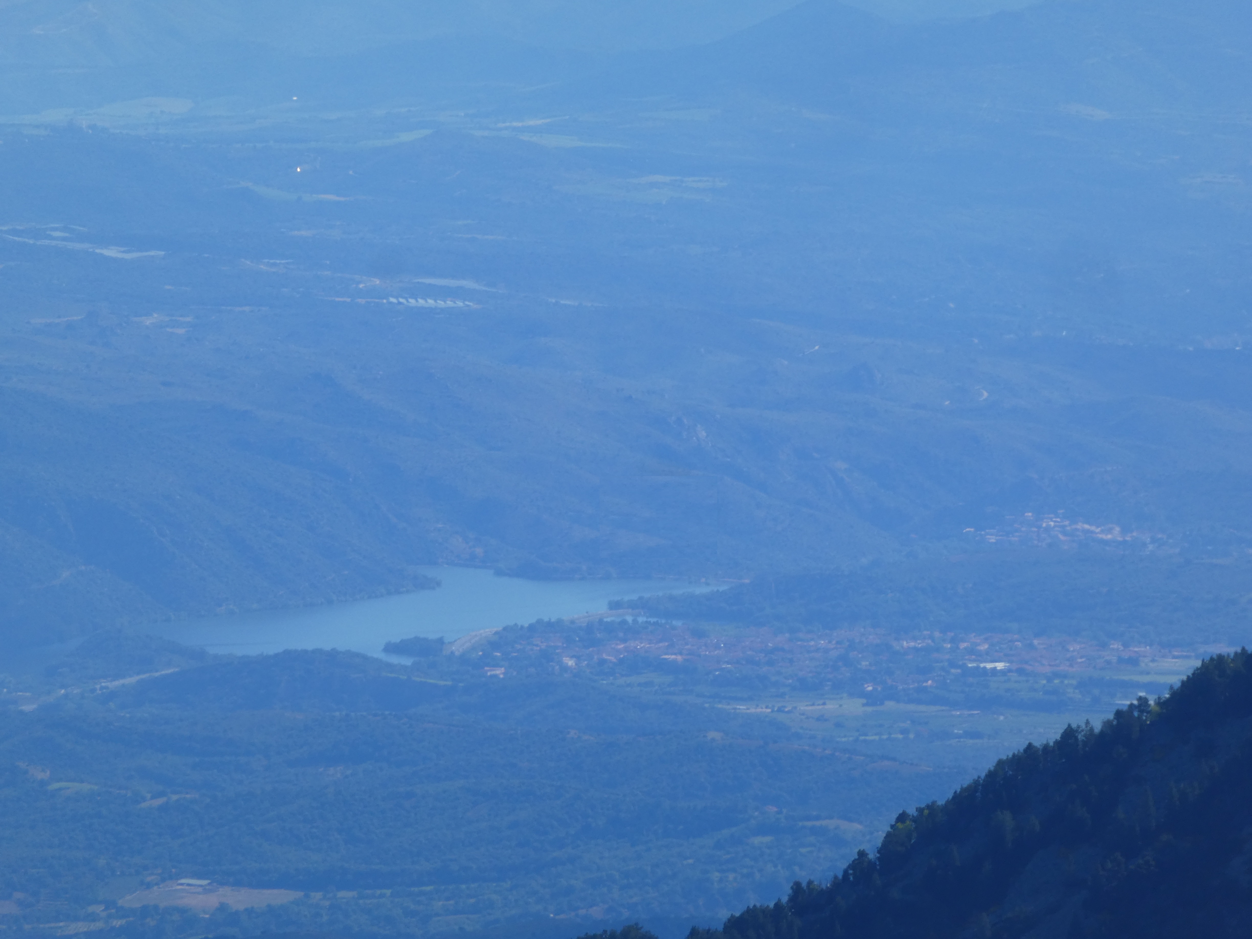 Zoom sur la Retenue de Vinça et le village homonyme à droite situés à 33 kilomètres