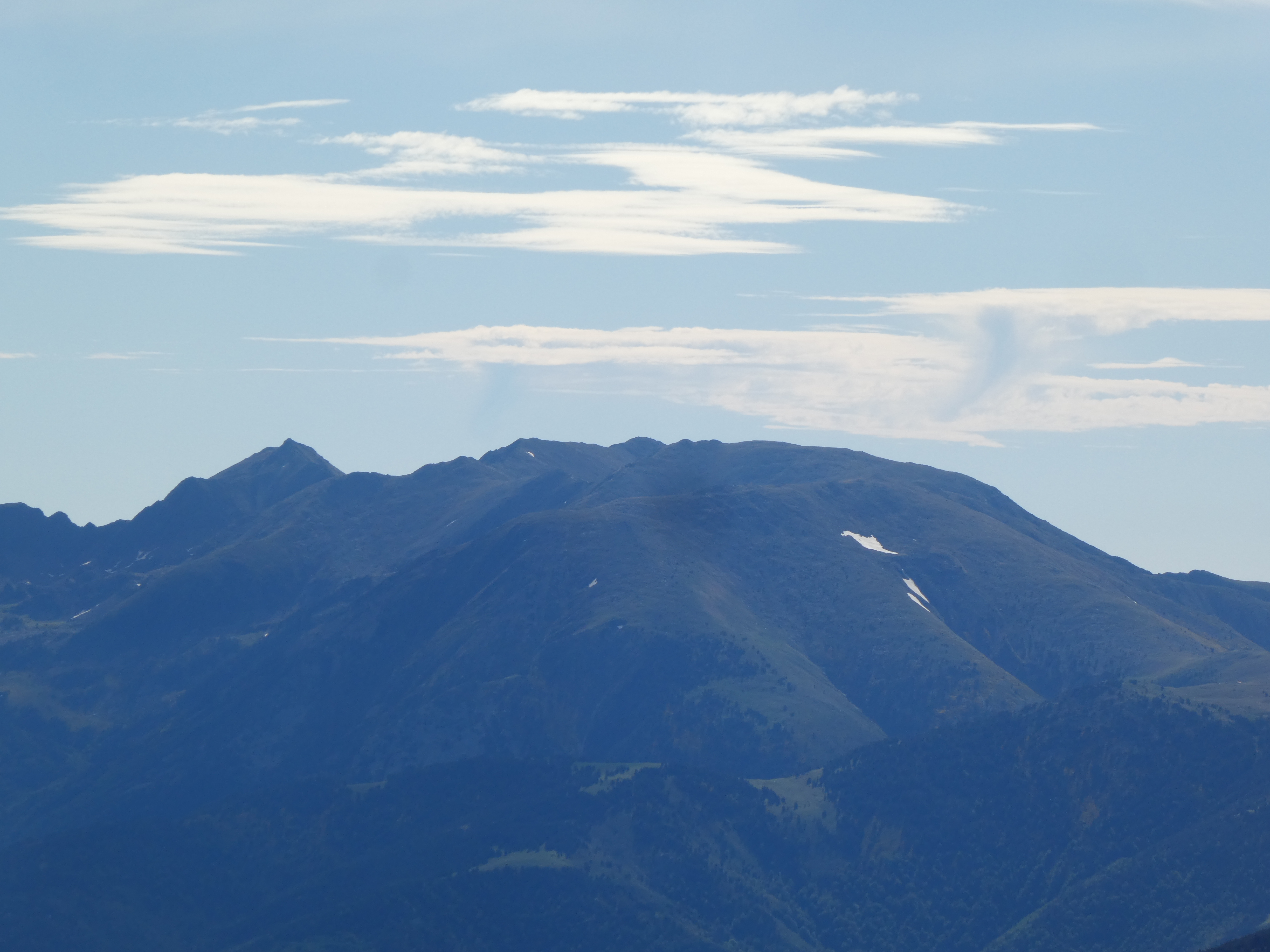 Zoom sur le Pic de Serra Gallinera (2663 m) à gauche et le Pic de la Dona (2702 m) à droite