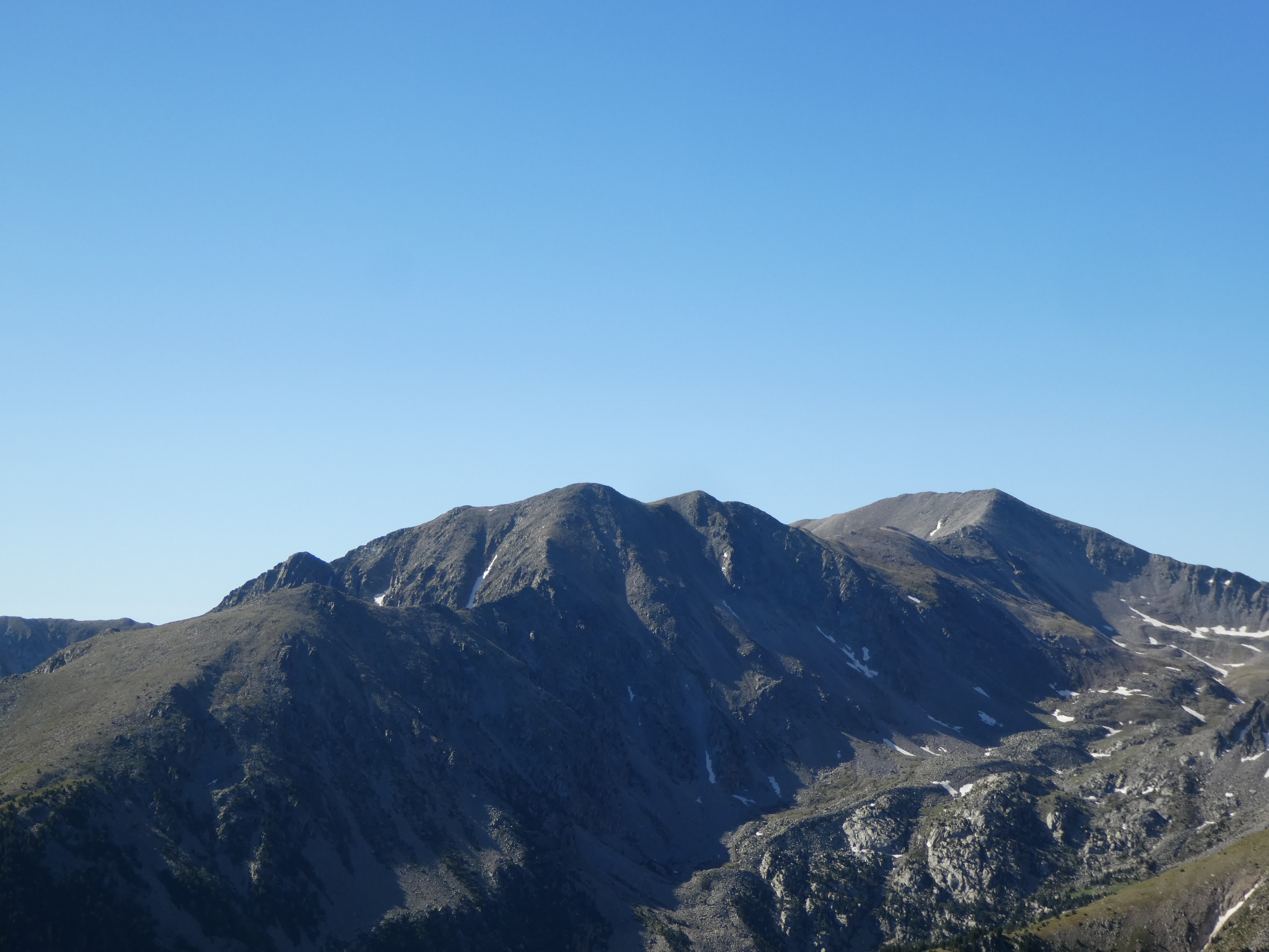 Zoom sur la Tossa Plana de Lles (2905 m) à gauche et le Puigpedrós (2915 m) à droite