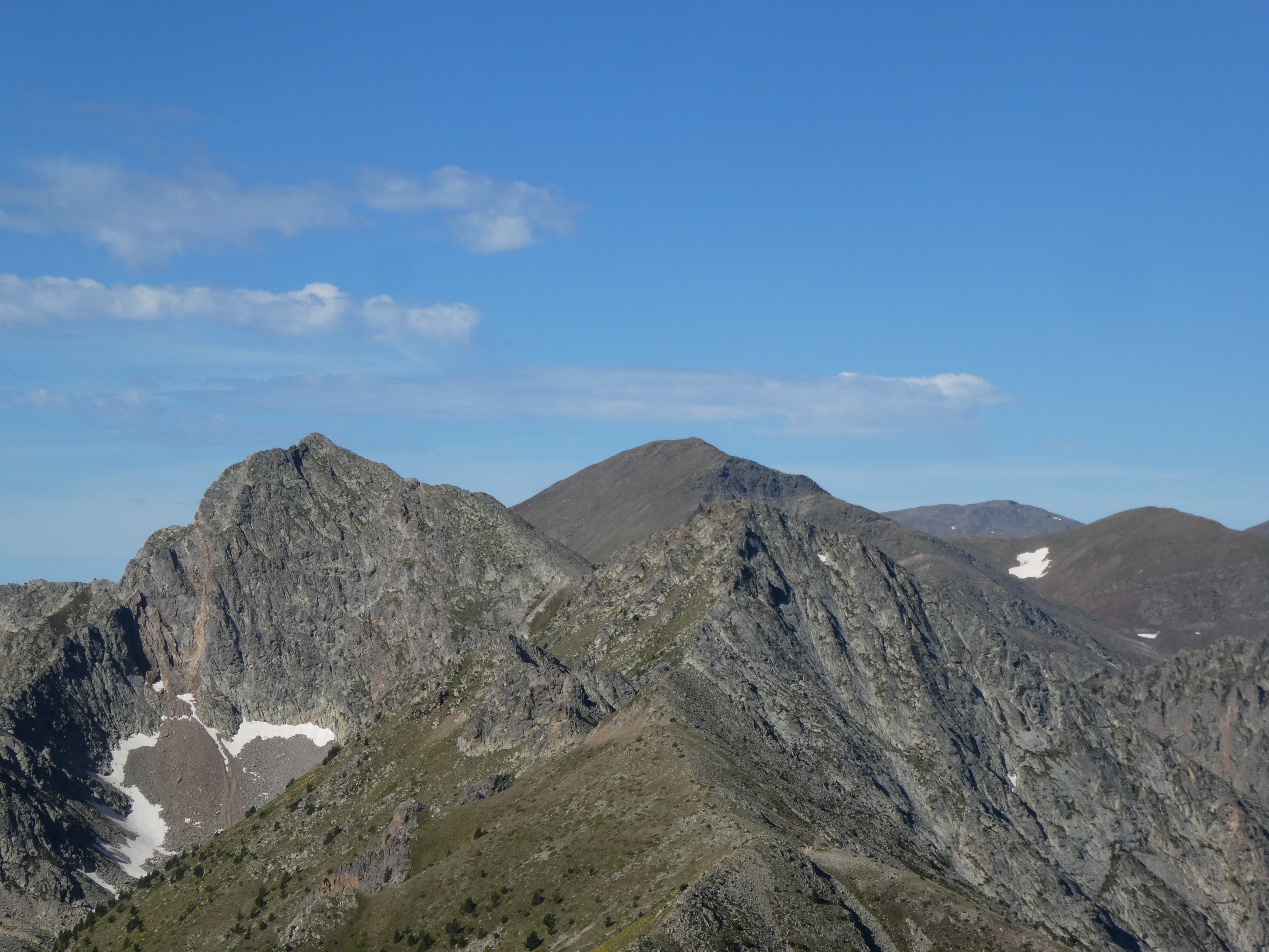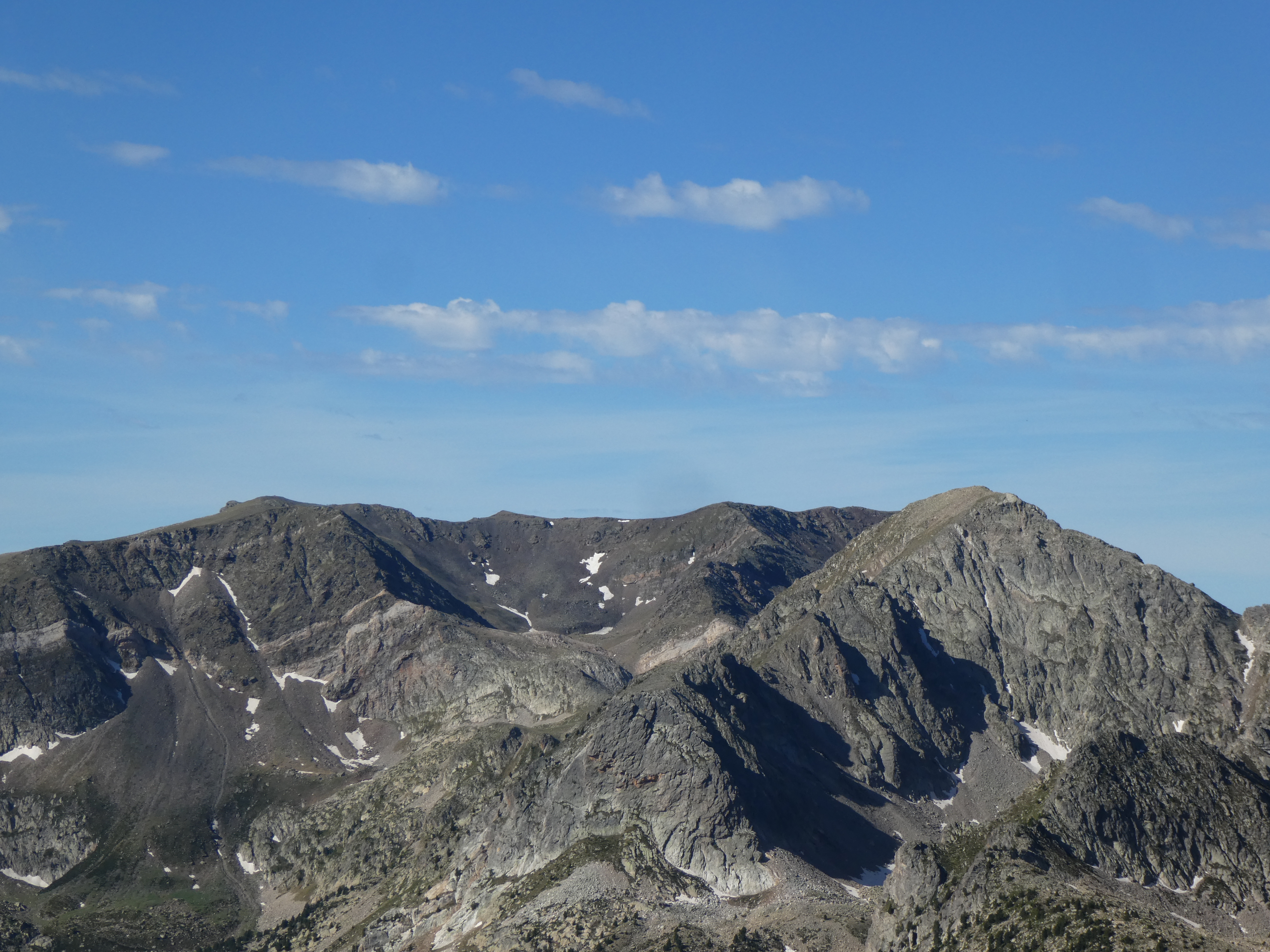 Zoom sur le Puig del Roc Negre (2714 m) à gauche et le Puig Roja (2724 m) au centre