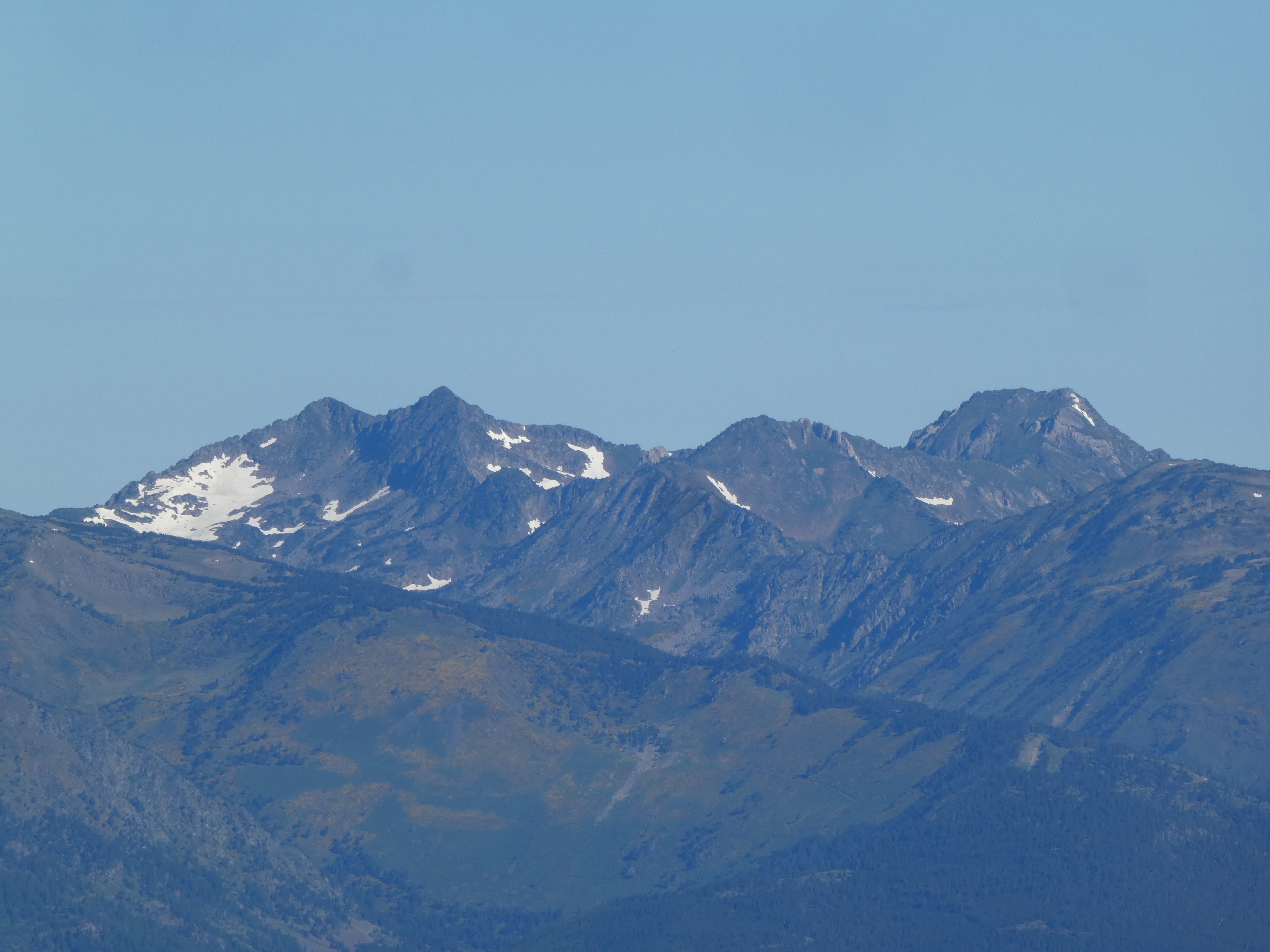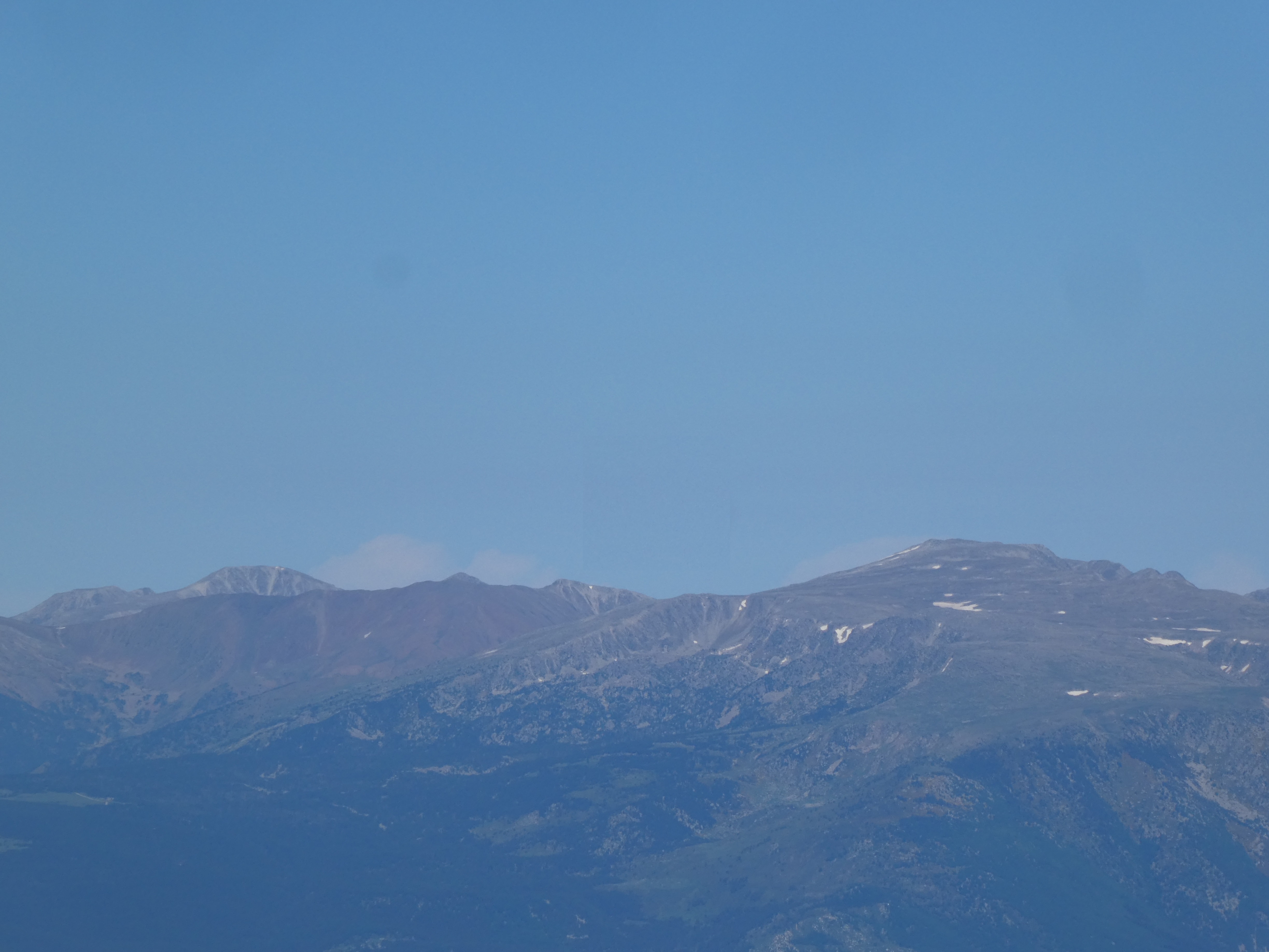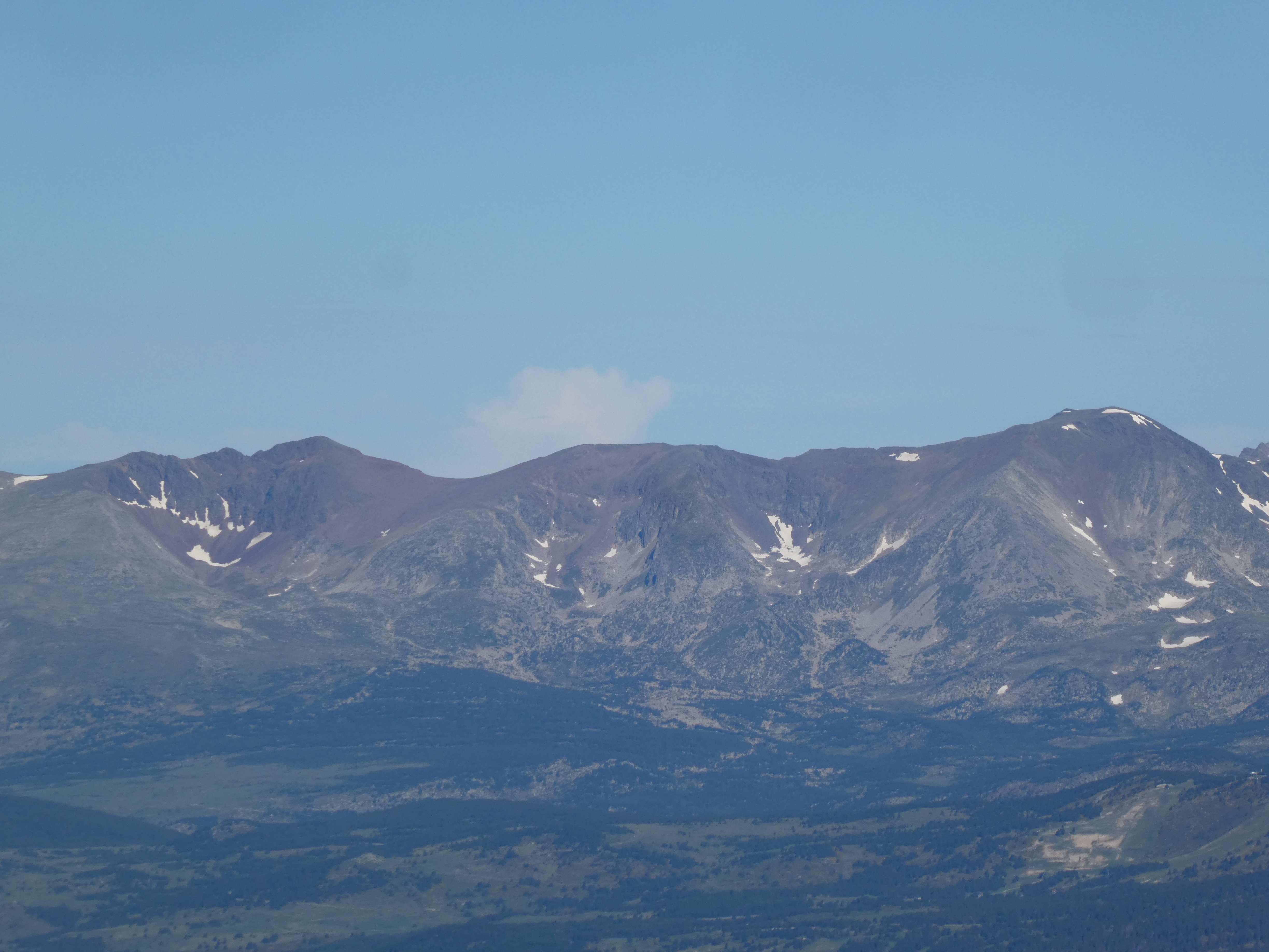 Zoom sur le Puigmal (2910 m) et le Pic d'Eina (2789 m) à gauche, le Puigmal de Segre (2843 m) et le Pic de Núria (2794 m) au centre, et le Puig de Finestrelles (2827 m) à droite