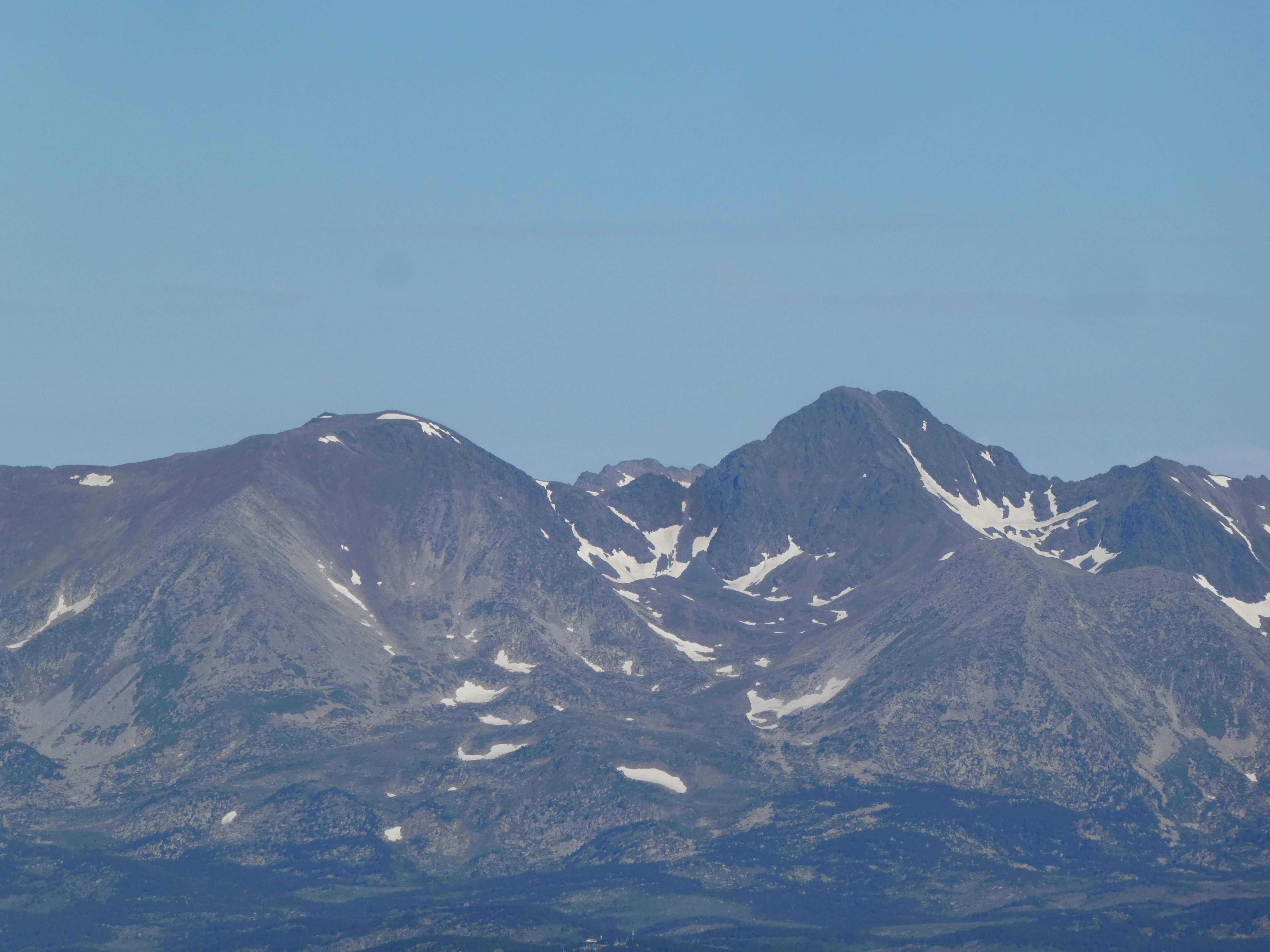 Zoom sur le Puig Solana de Carcinera (2878 m) à gauche et le Puig Carlit (2921 m) à droite
