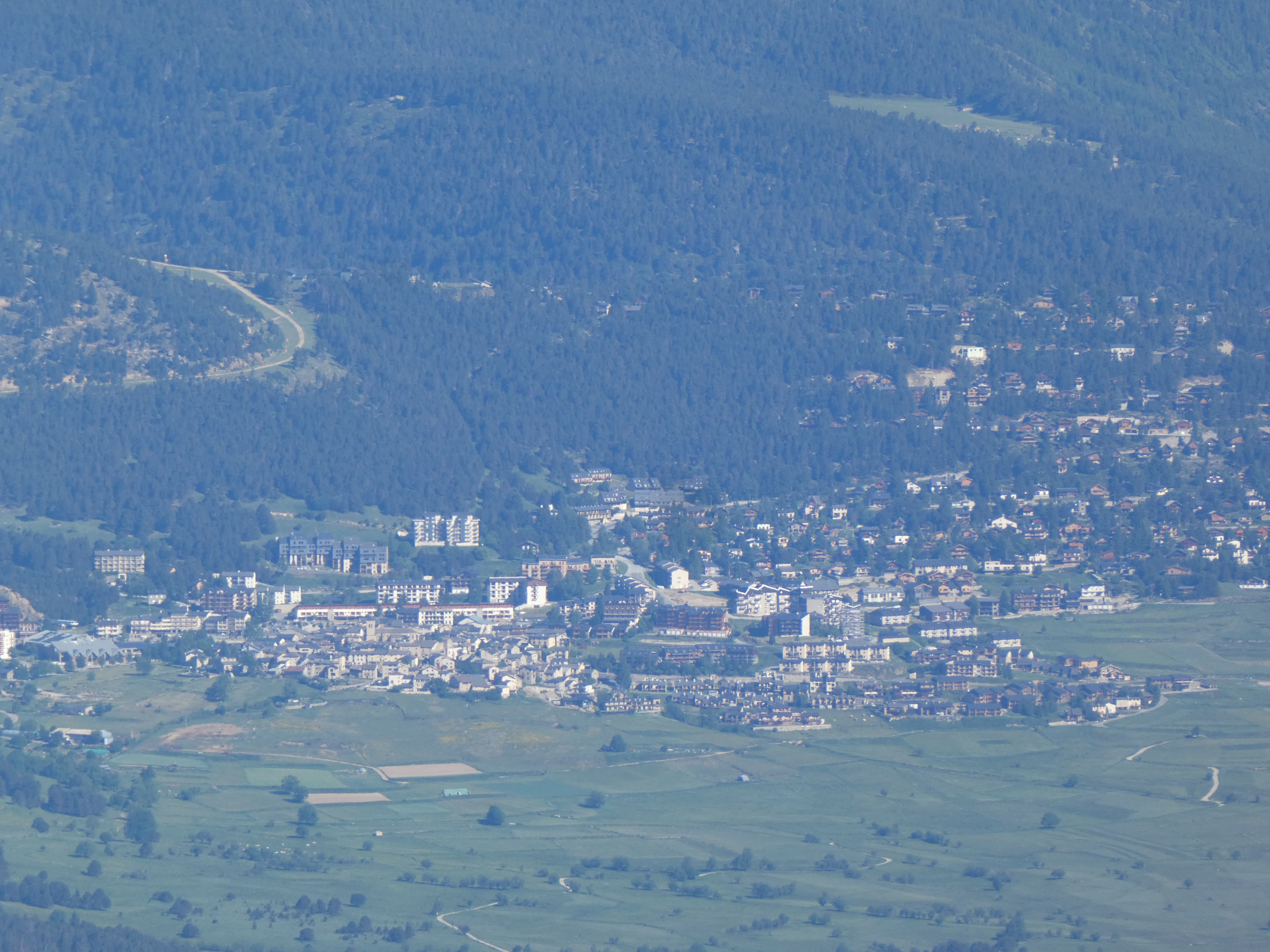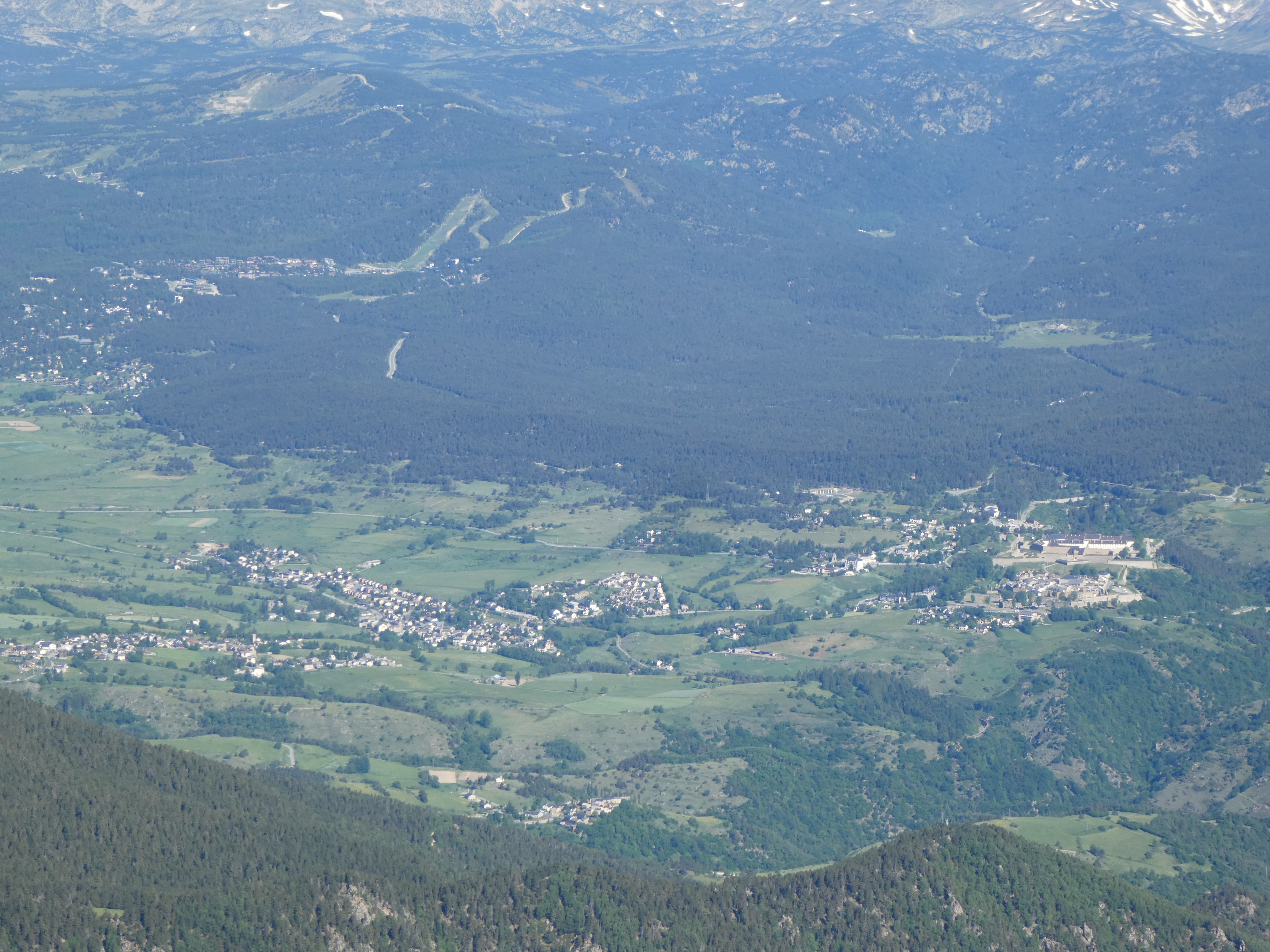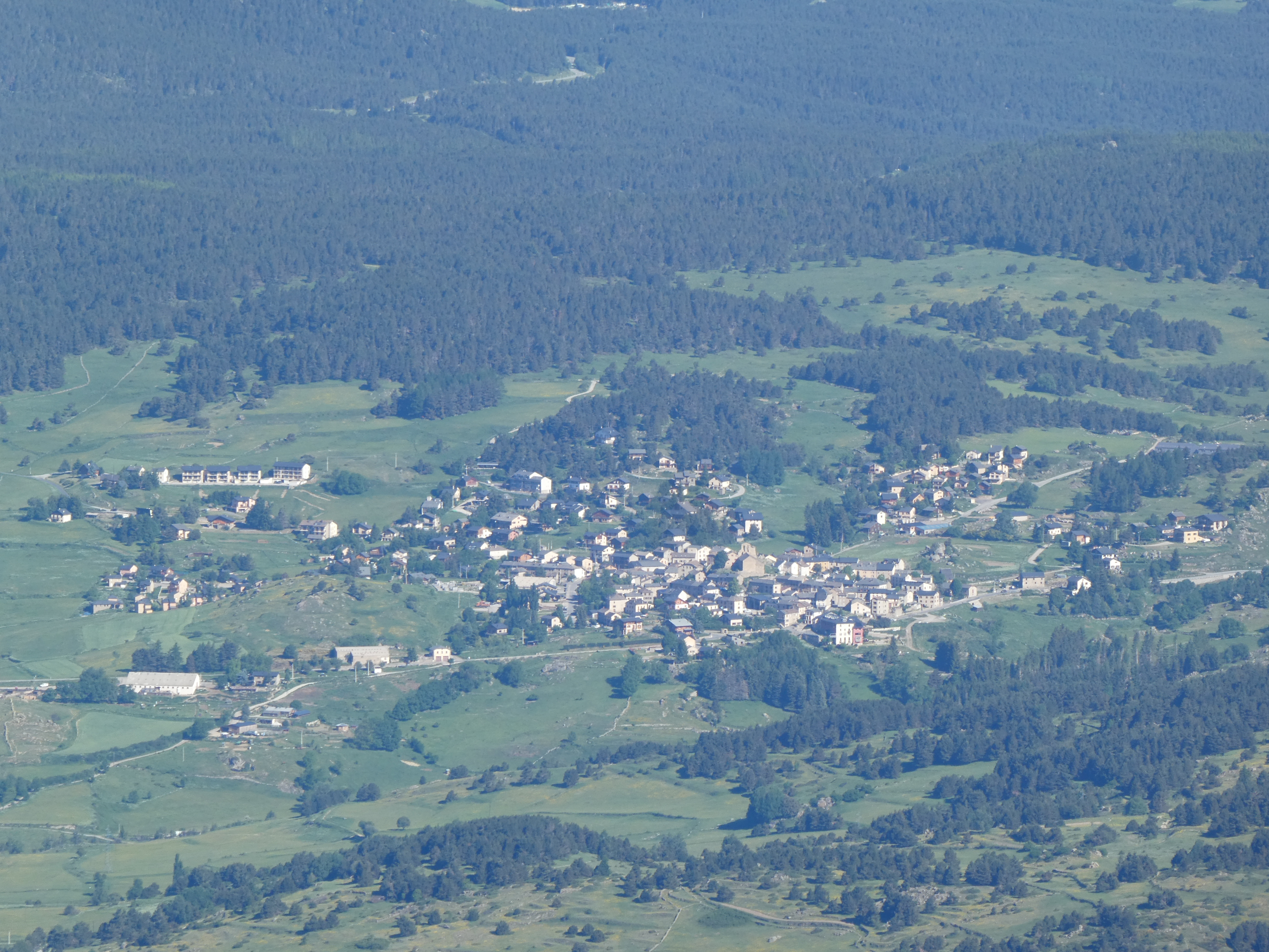 Zoom sur Saint-Pierre-dels-Forcats et la Cabanasse à gauche et Mont-Louis à droite situés à 8 kilomètres