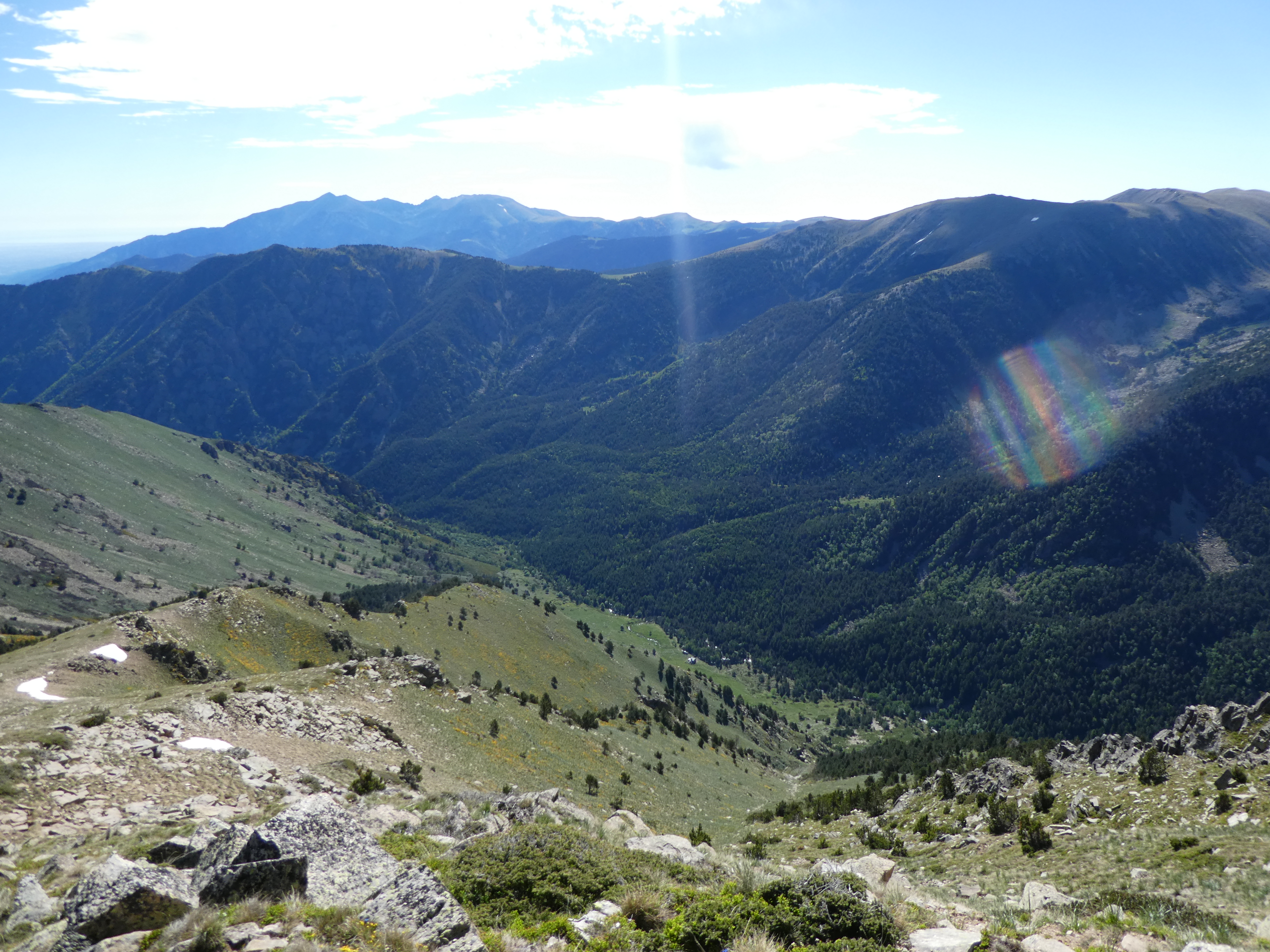 Vue en direction du massif du Canigou et la Vallée de la Carança en bas