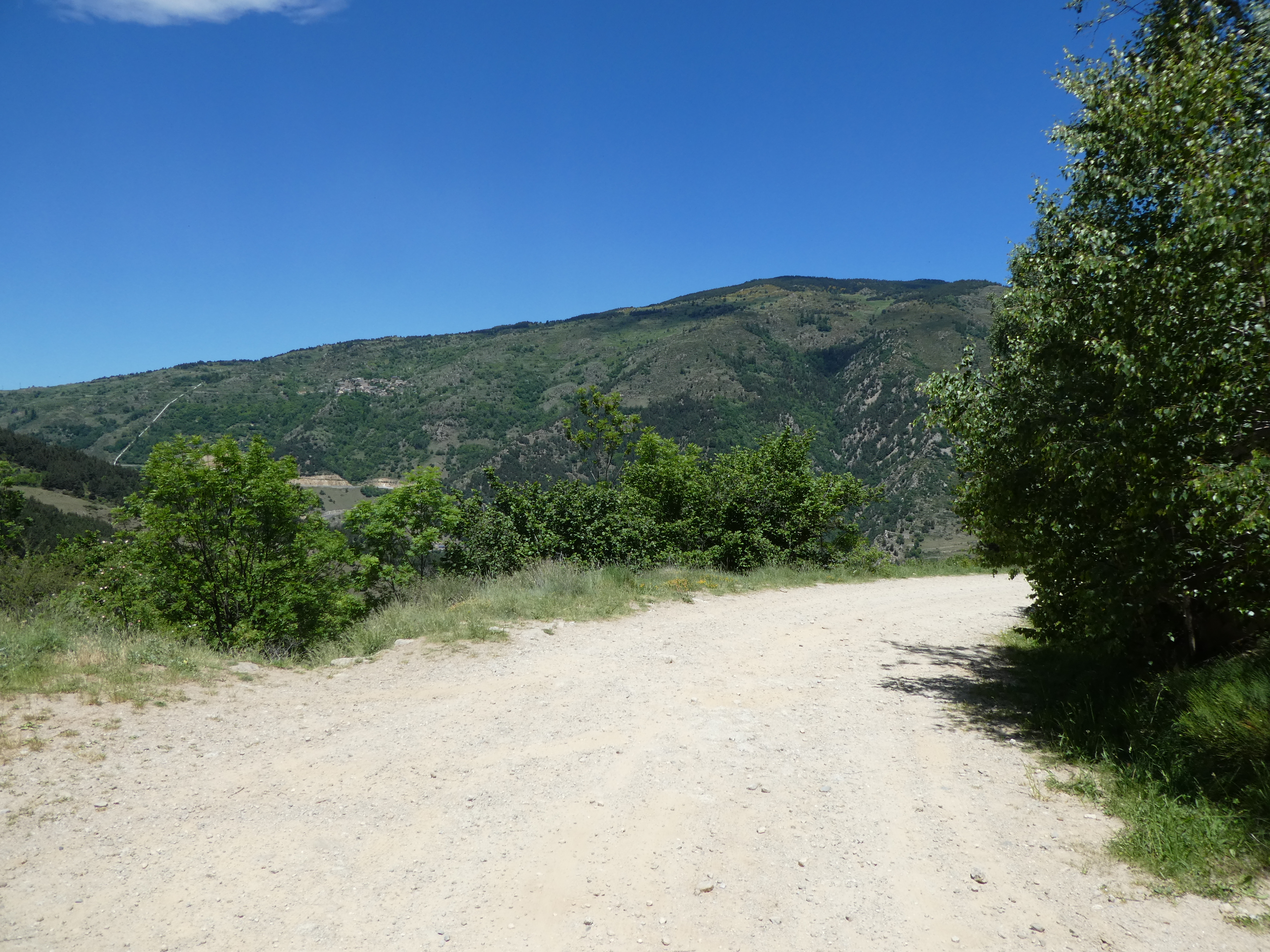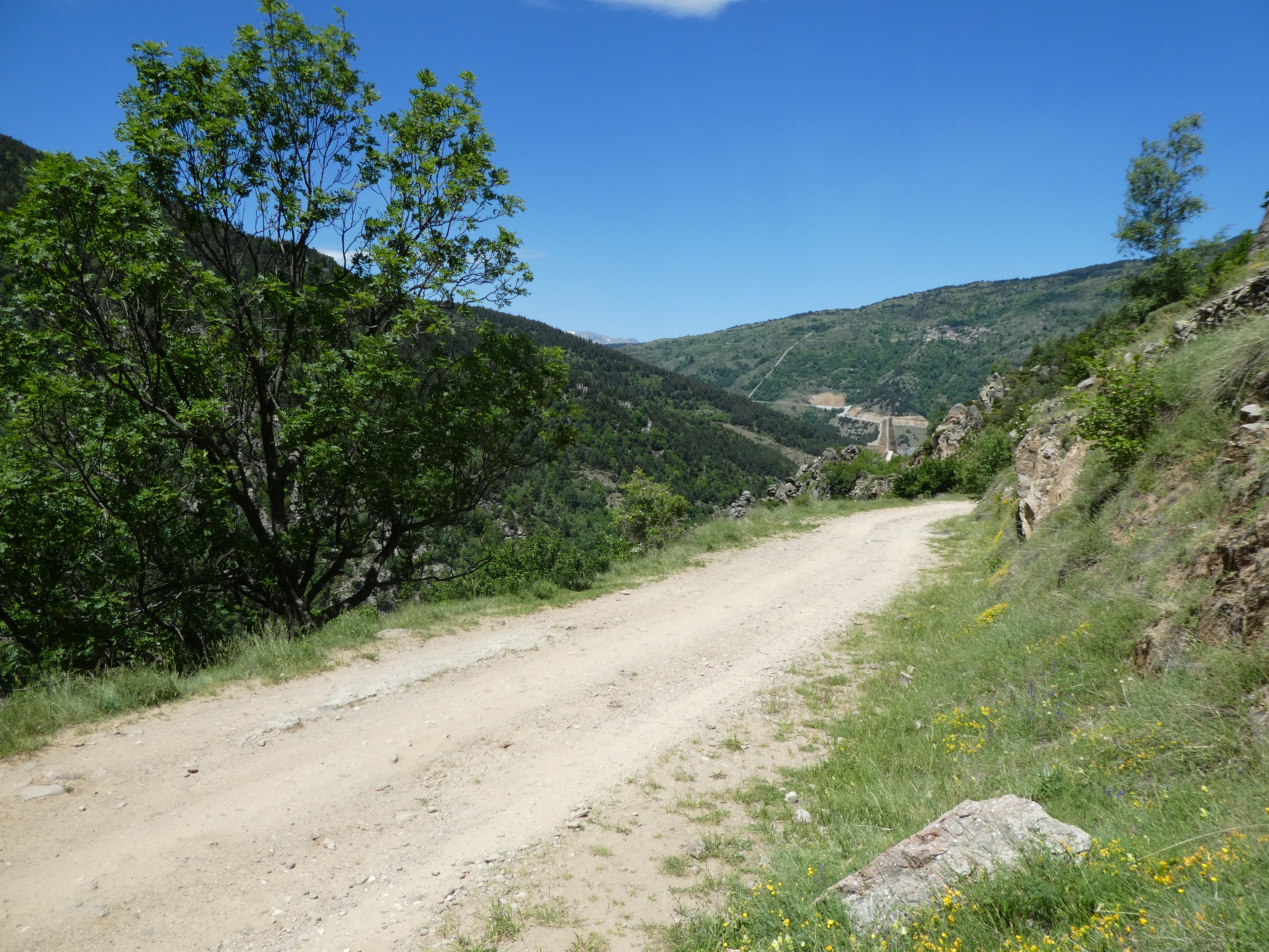 A ce croisement avec la piste d'accès à la retenue d'eau d'Aumet et marqué par la présence d'un panneau directionnel (1900 mètres après le précédent), suivre cette dernière tout droit direction Prats-Balaguer, balisé sporadiquement en jaune