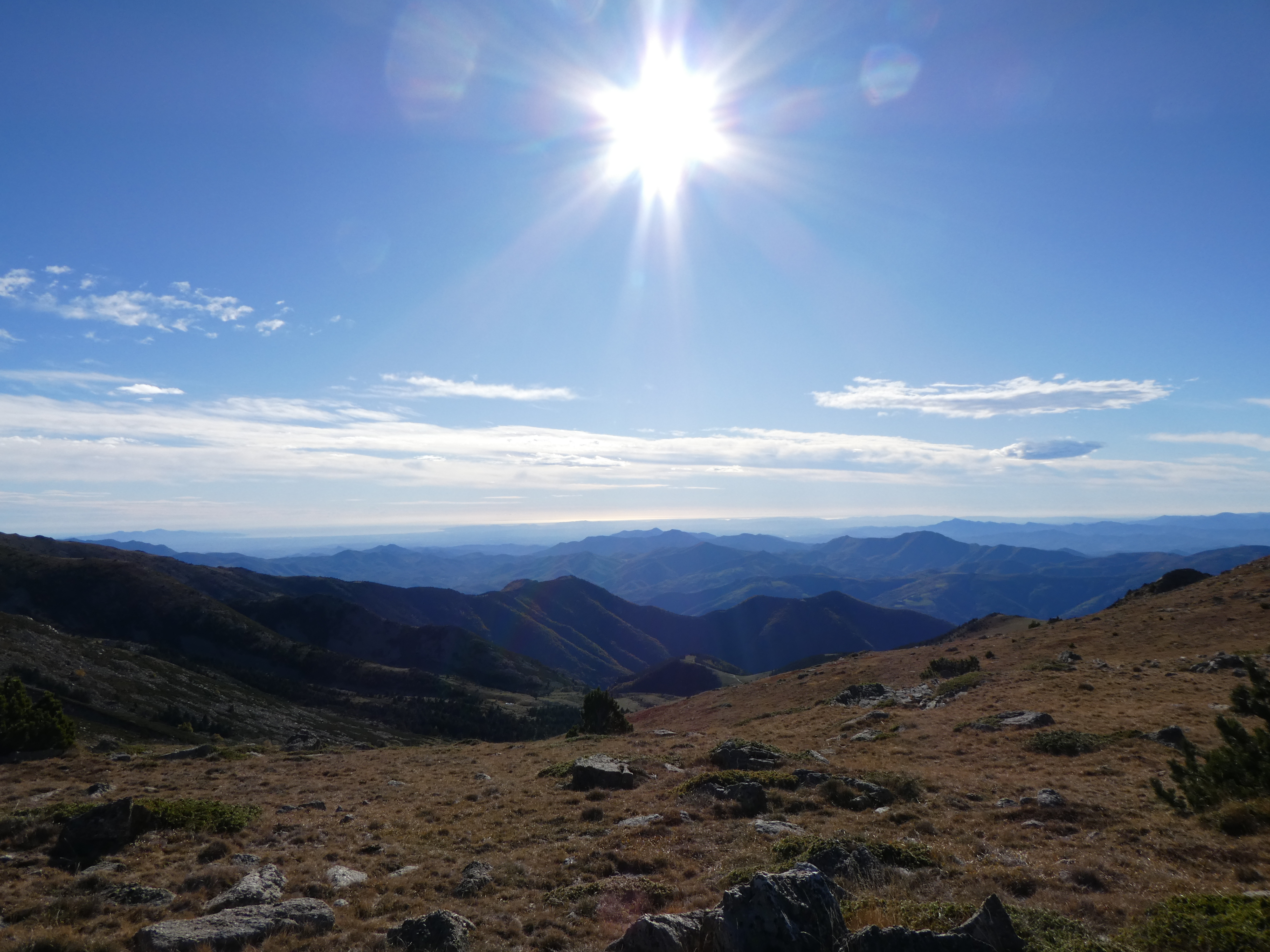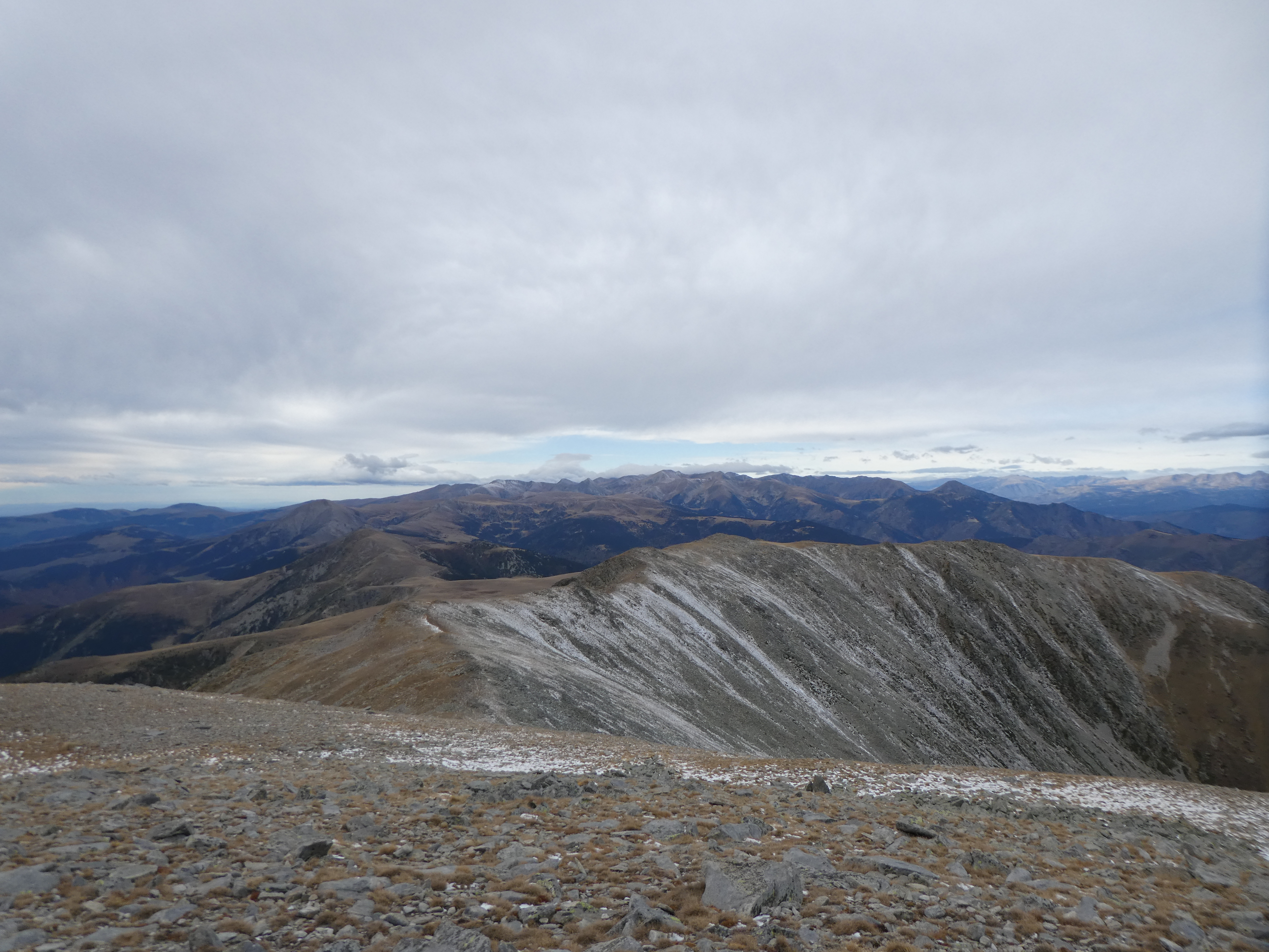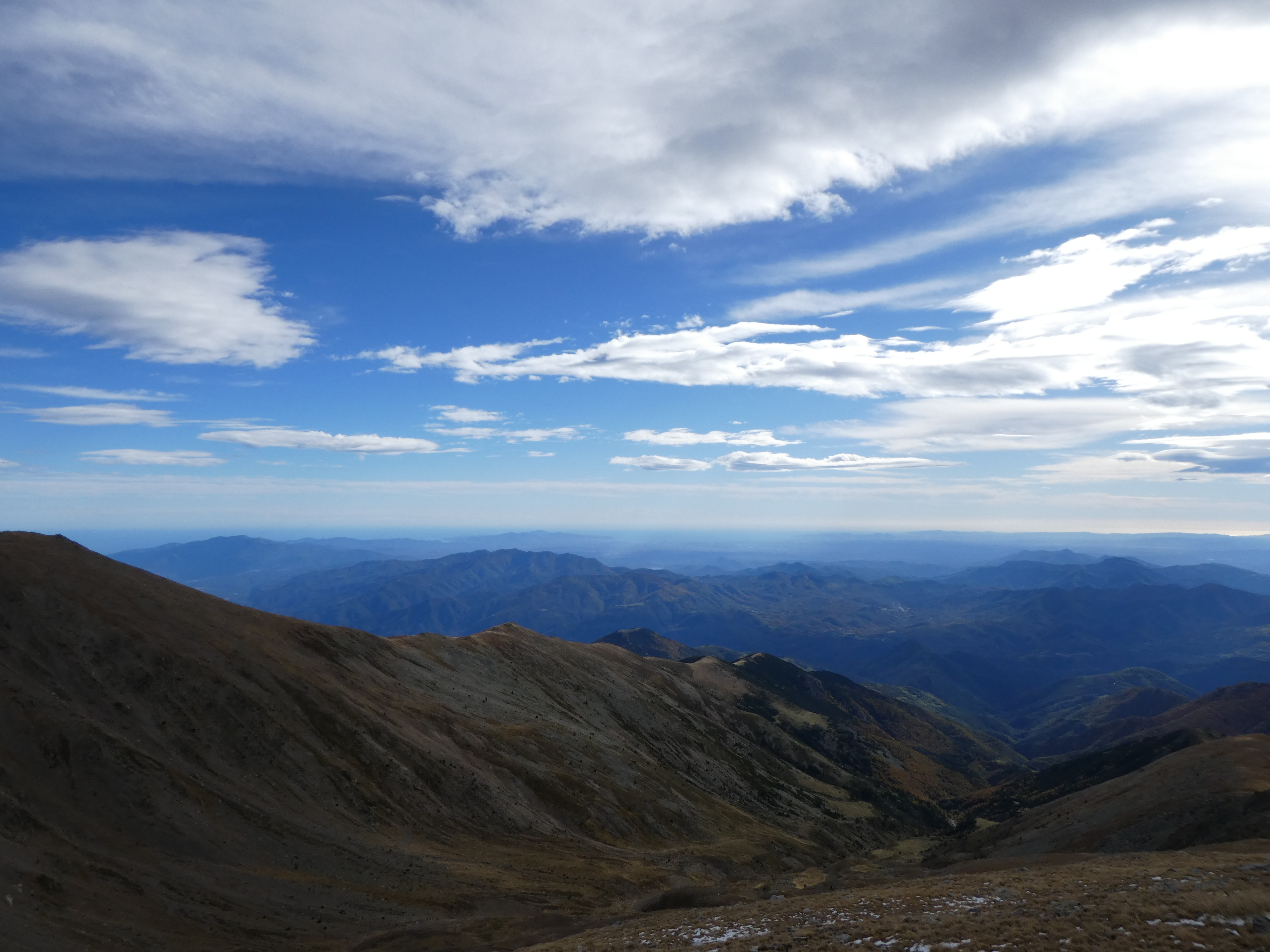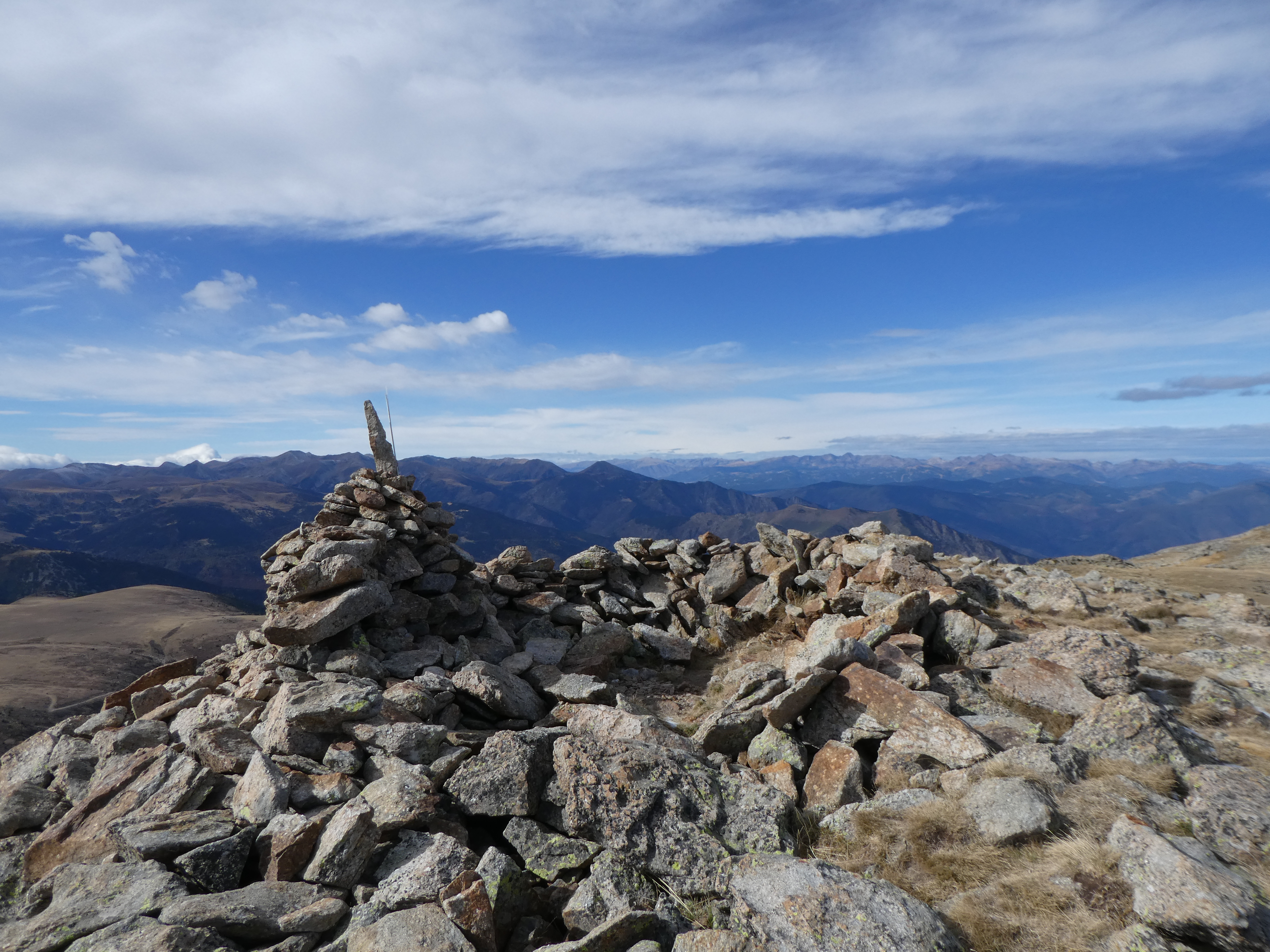 Arrivée au sommet du Puig Rojà (2724 m) : panorama semblable à celui du Pic dels Set Homes avec vue plus étendue sur les sommets des Corbières et des Albères