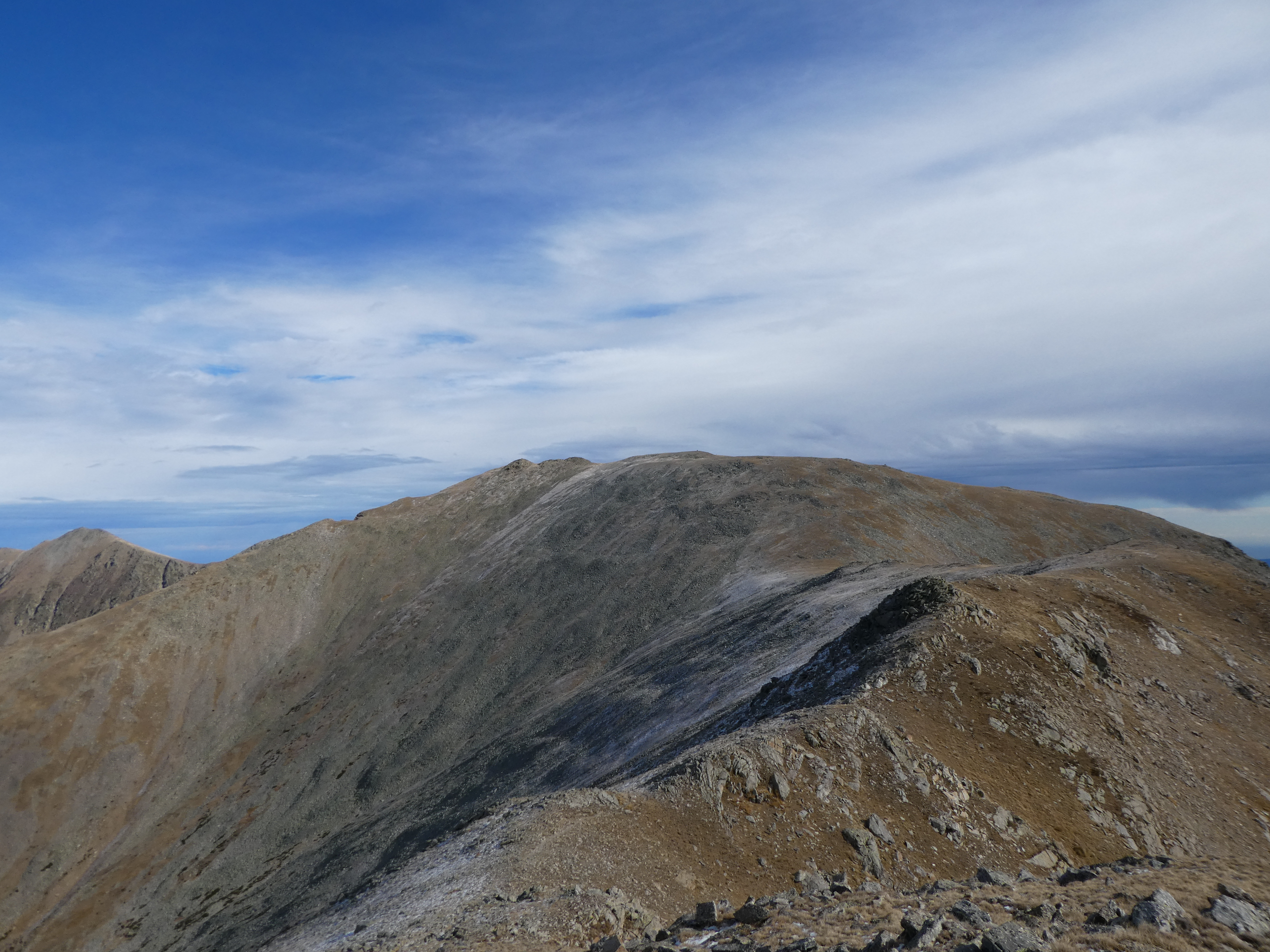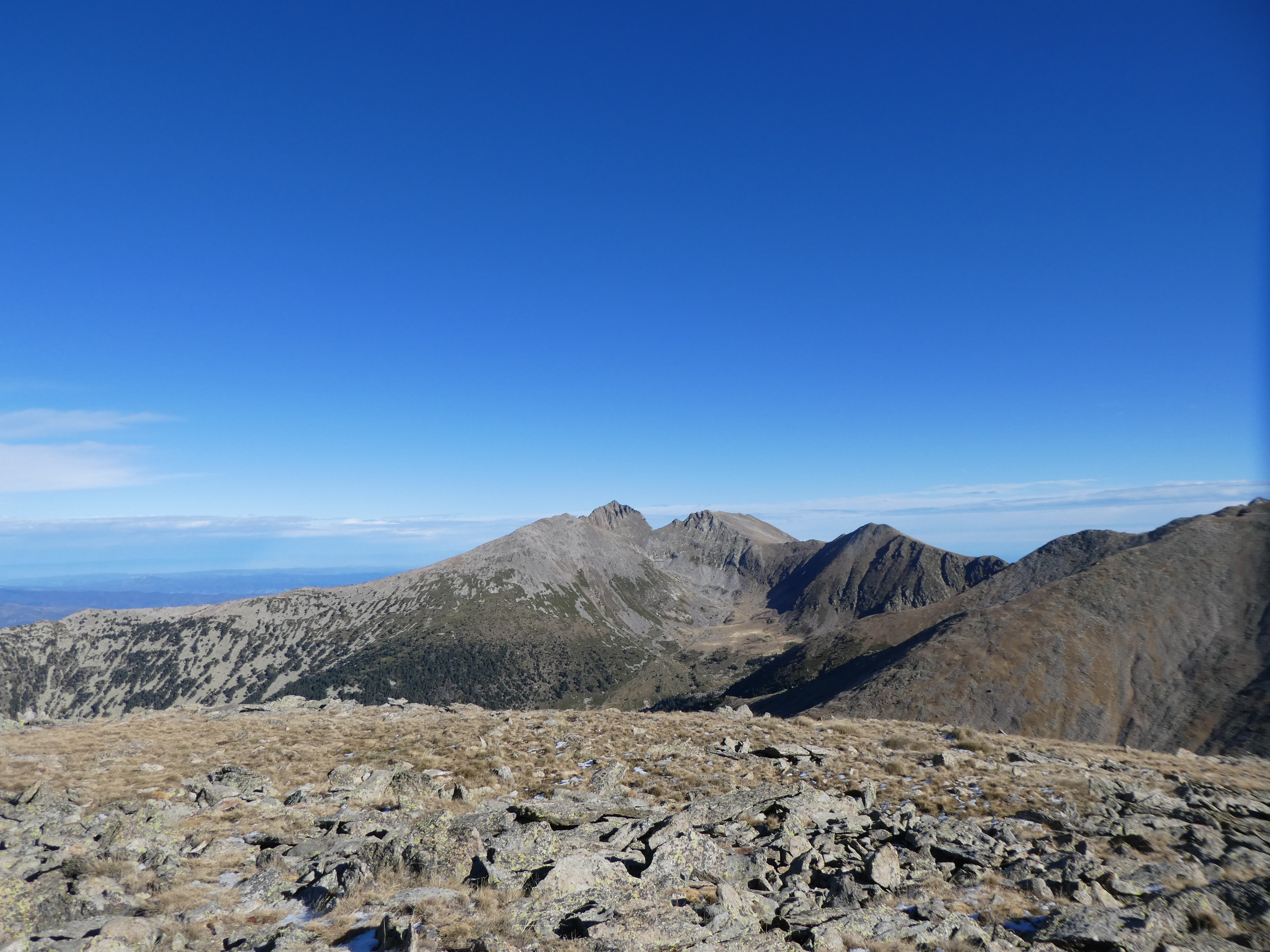 Zoom sur le Puig de Solana Carnicera (2878 m) à gauche et le Puig Carlit (2921 m) à droite