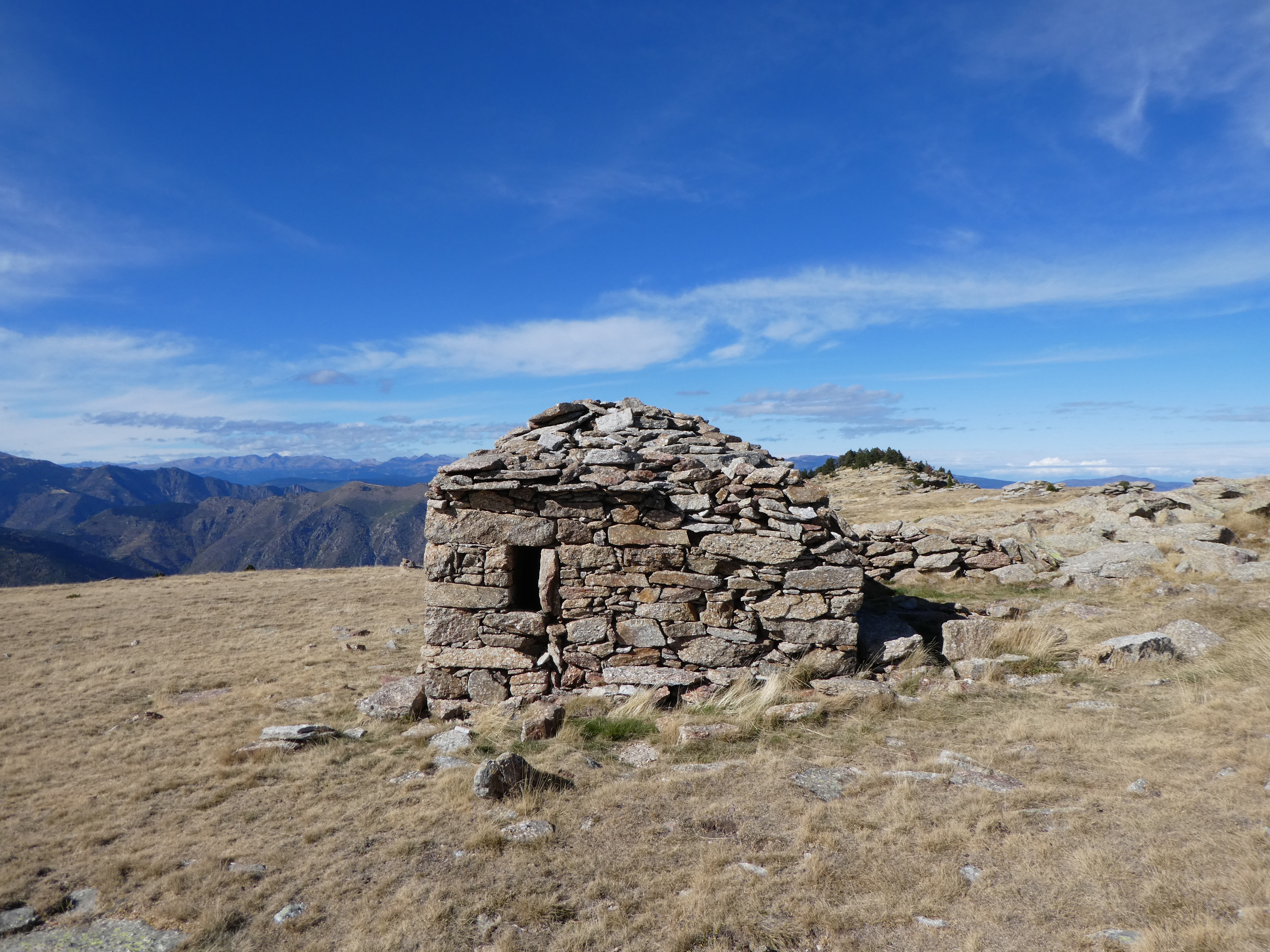 Arrivée au sommet du Pic dels Set Homes (2651 m) : beau panorama sur les sommets du Vallespir, de l'Empordà, de la Selva, de la Garrotxa, du Ripollès, du Conflent, de la Haute-Cerdagne, du Capcir, des Pyrénées Audoises ainsi que sur la Plaine de l'Empordà