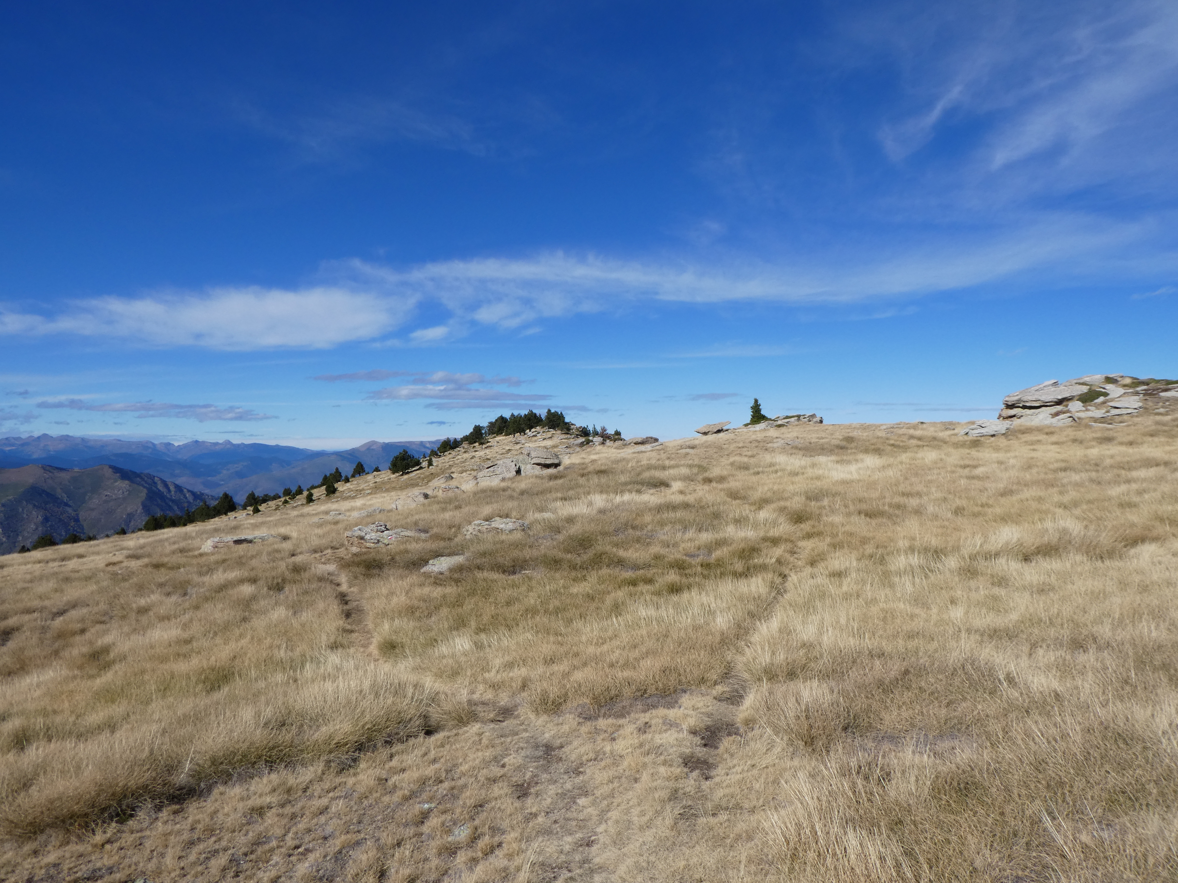 Coll del Cavall Mort (1455 m) : suivre le GR10 partant légèrement sur la droite direction Refuge de Mariailles, balisé en rouge et blanc
