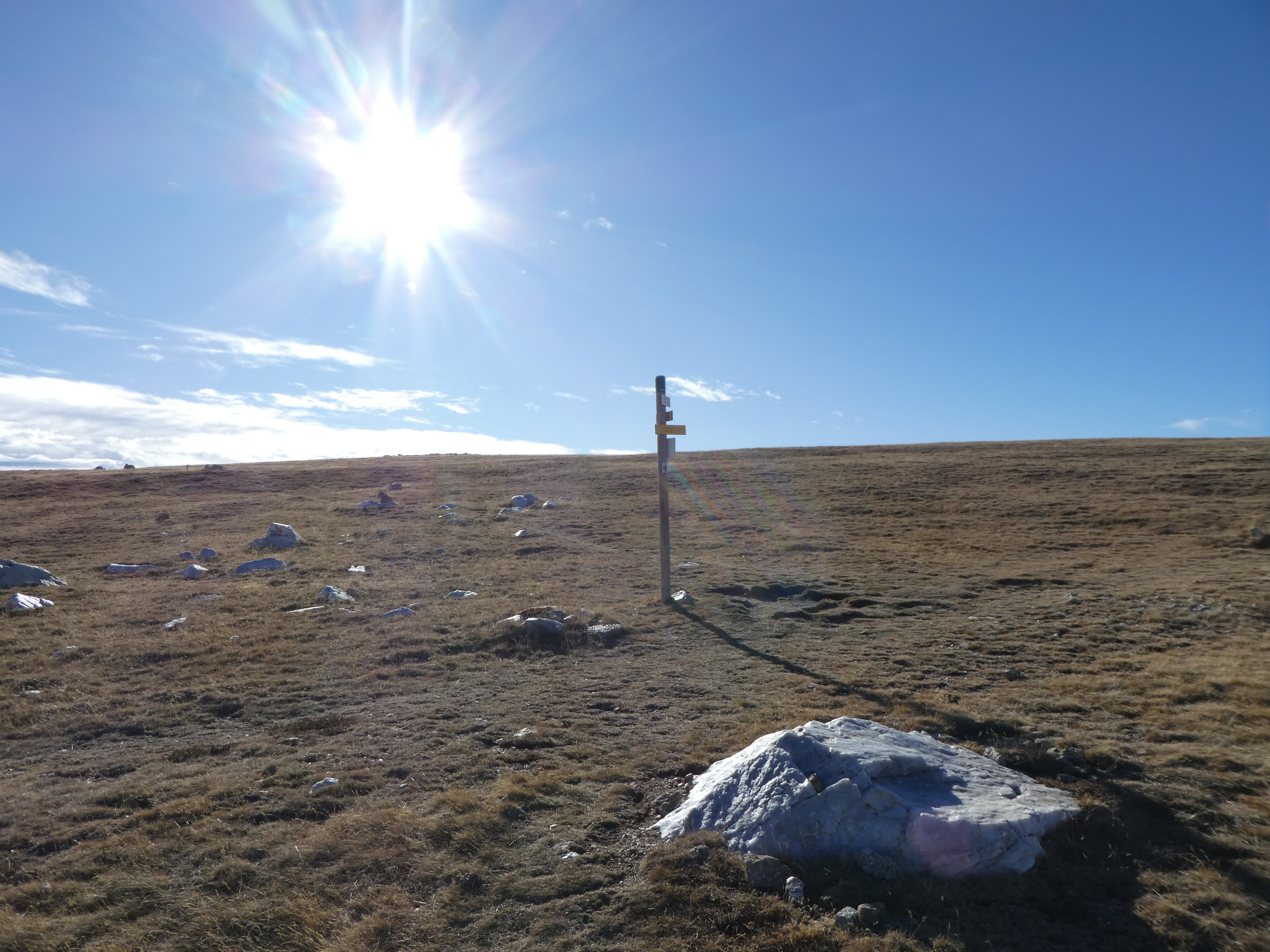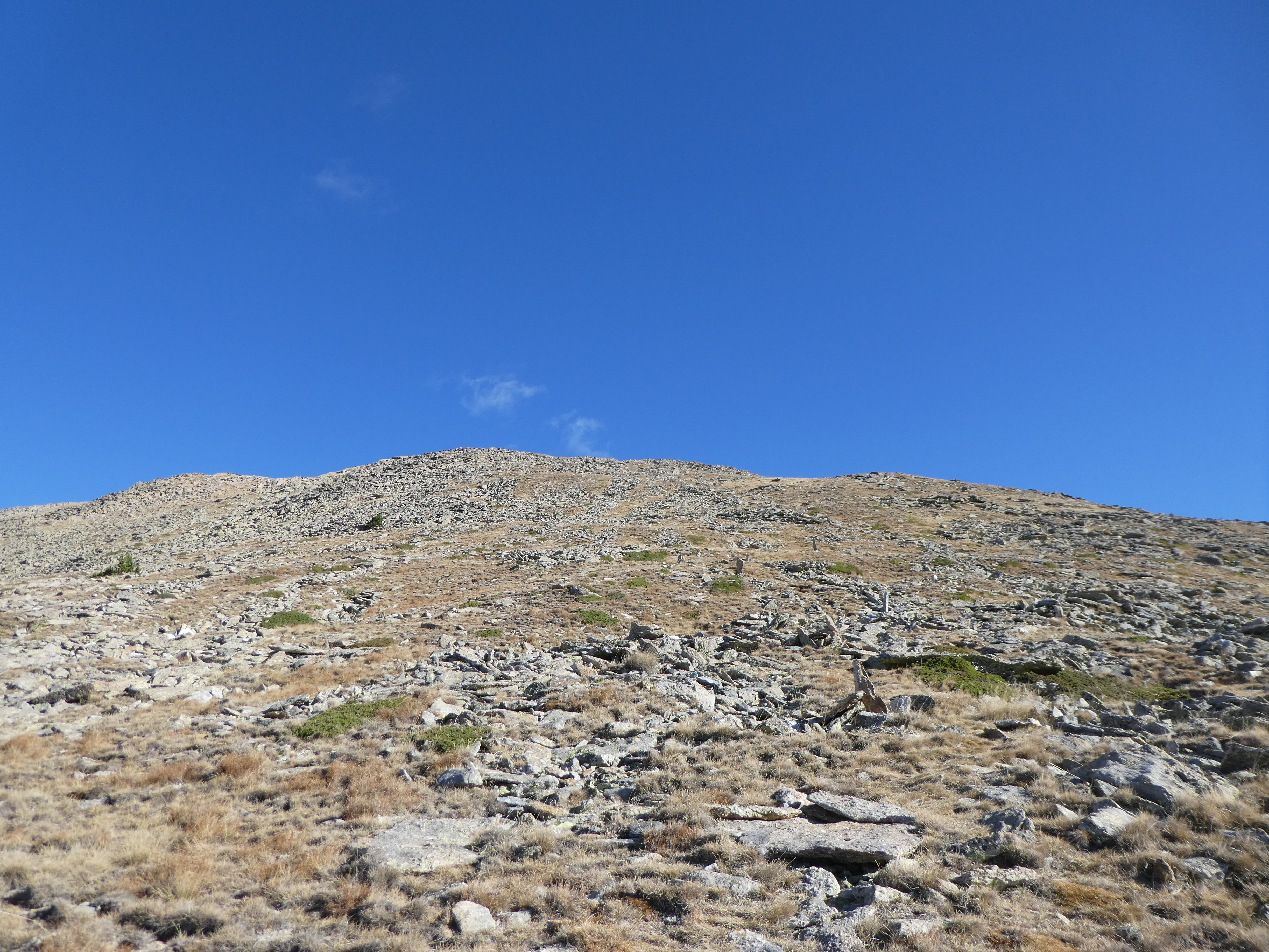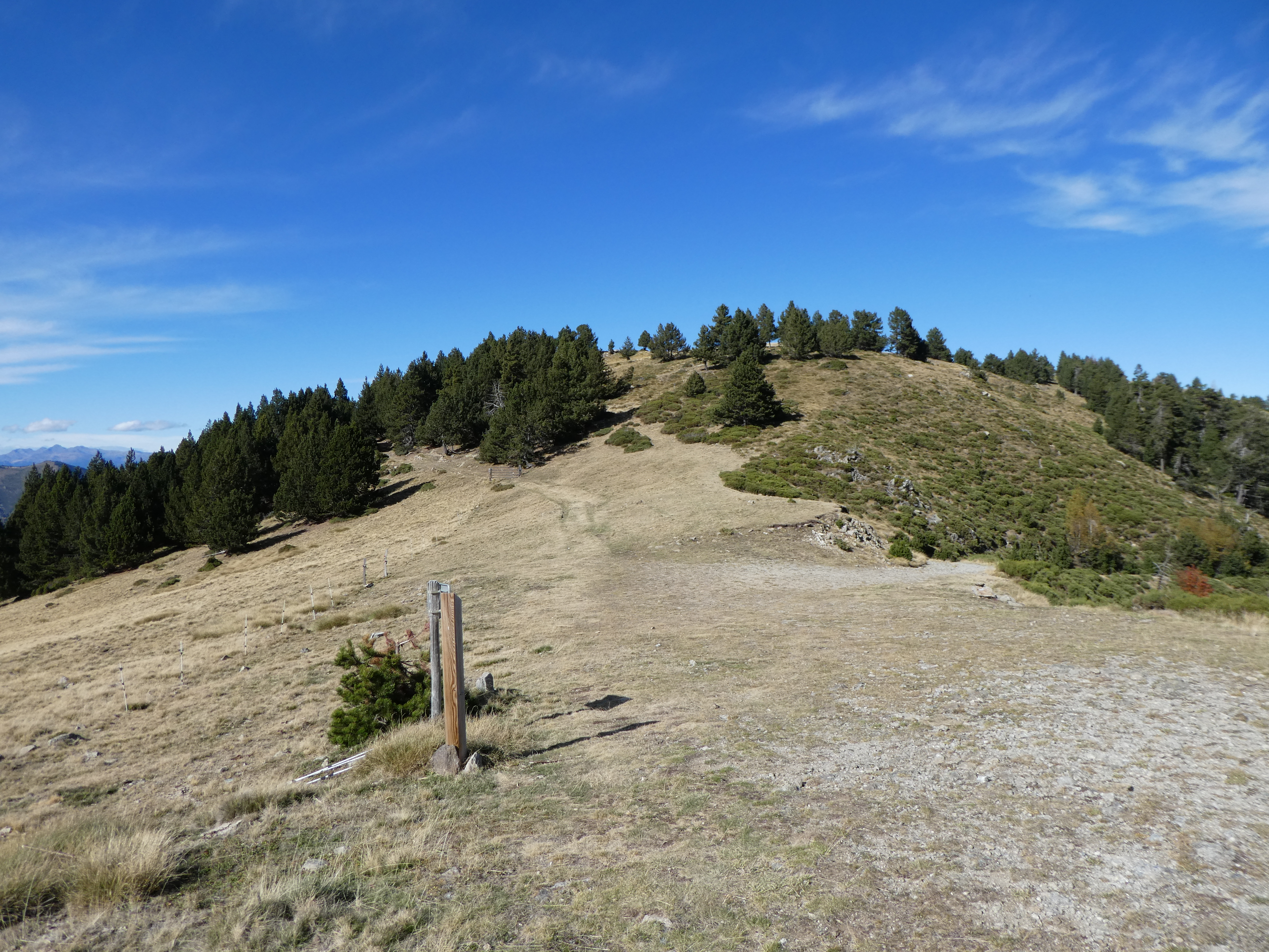 Redescendre du sommet dans le même sens que celui de l'aller direction Puig Rojà, aucun balisage dorénavant