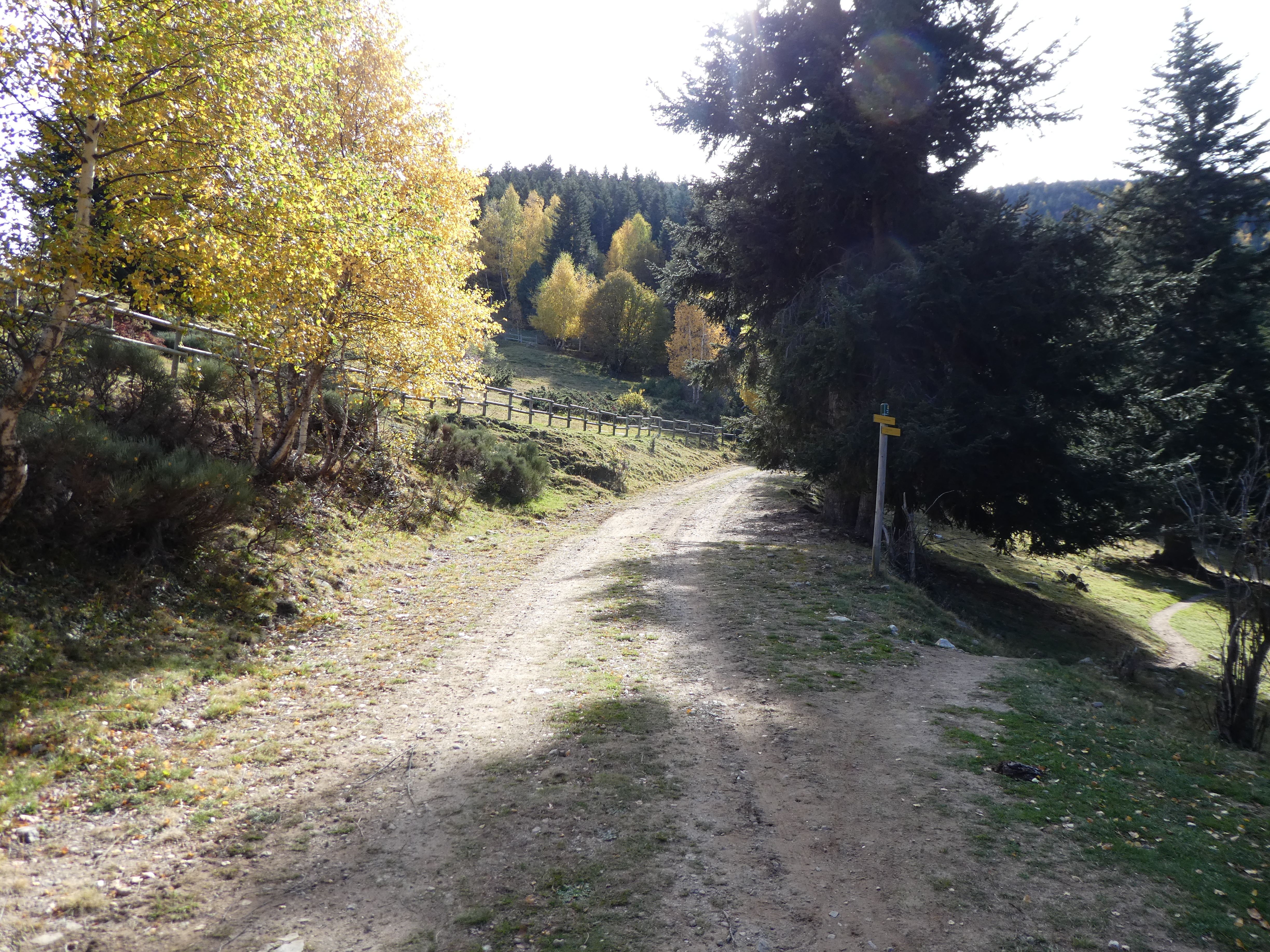 A ce croisement situé à proximité de l'Orri de la Llipodera (2100 mètres après le lieu-dit "Mariailles"), suivre le chemin montant raidement sur la droite vers la Collada de la Roqueta direction Pla Guillem, balisé en rouge et blanc