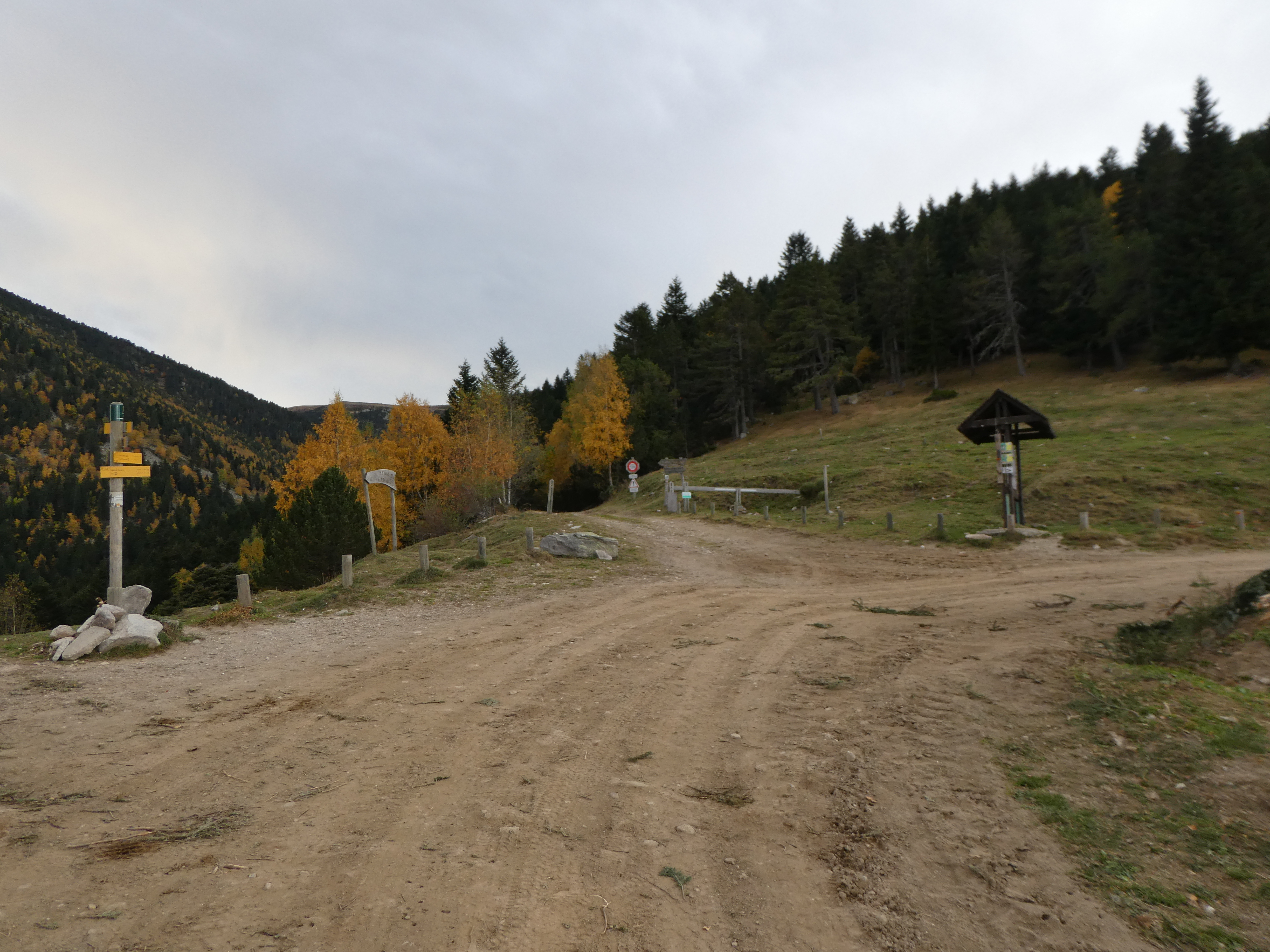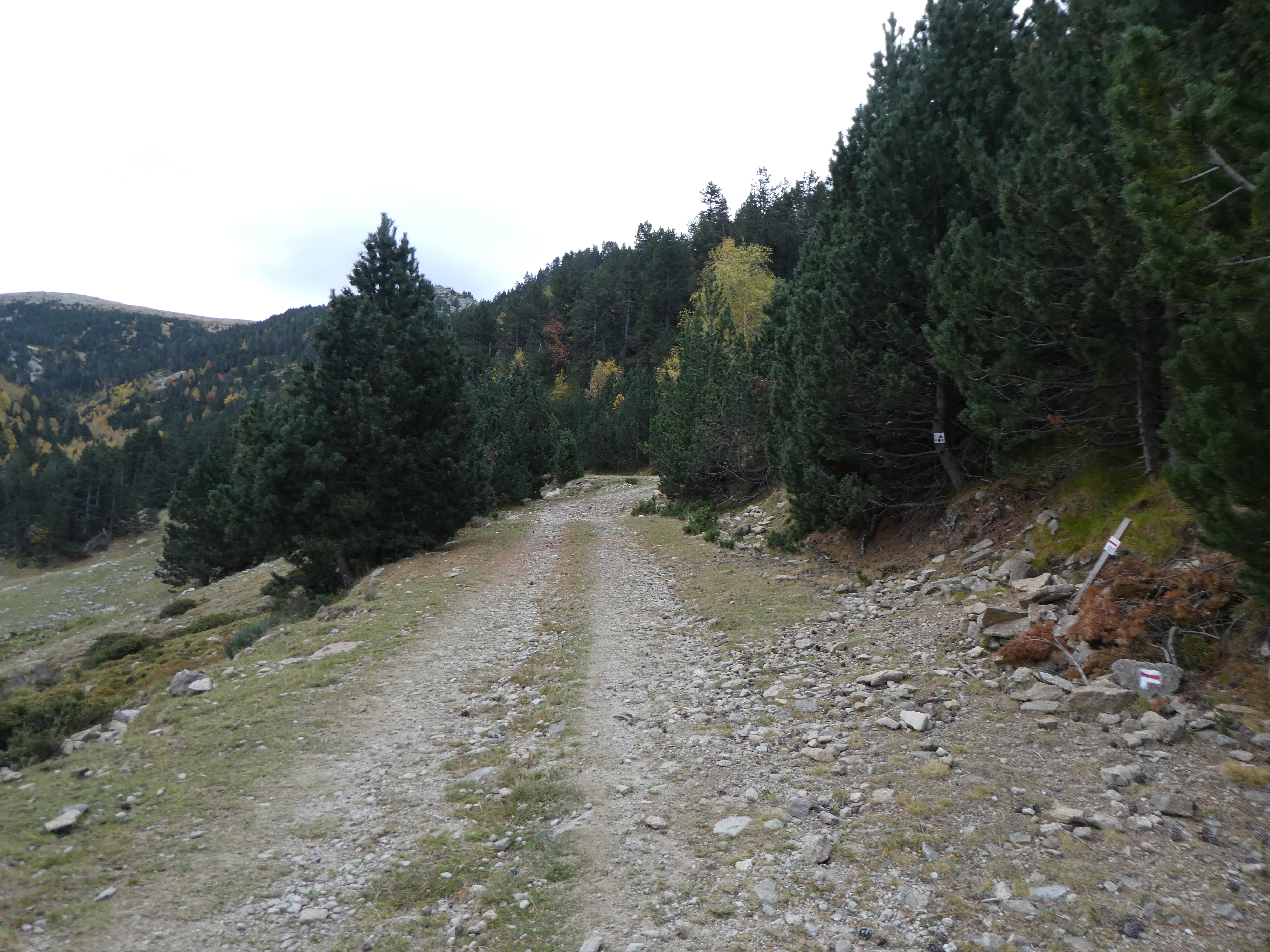 A ce croisement situé à proximité de l'Orri de la Llipodera (600 mètres après la Collada de la Roqueta), suivre la large piste partant sur la gauche direction Refuge de Mariailles, balisé en rouge et blanc