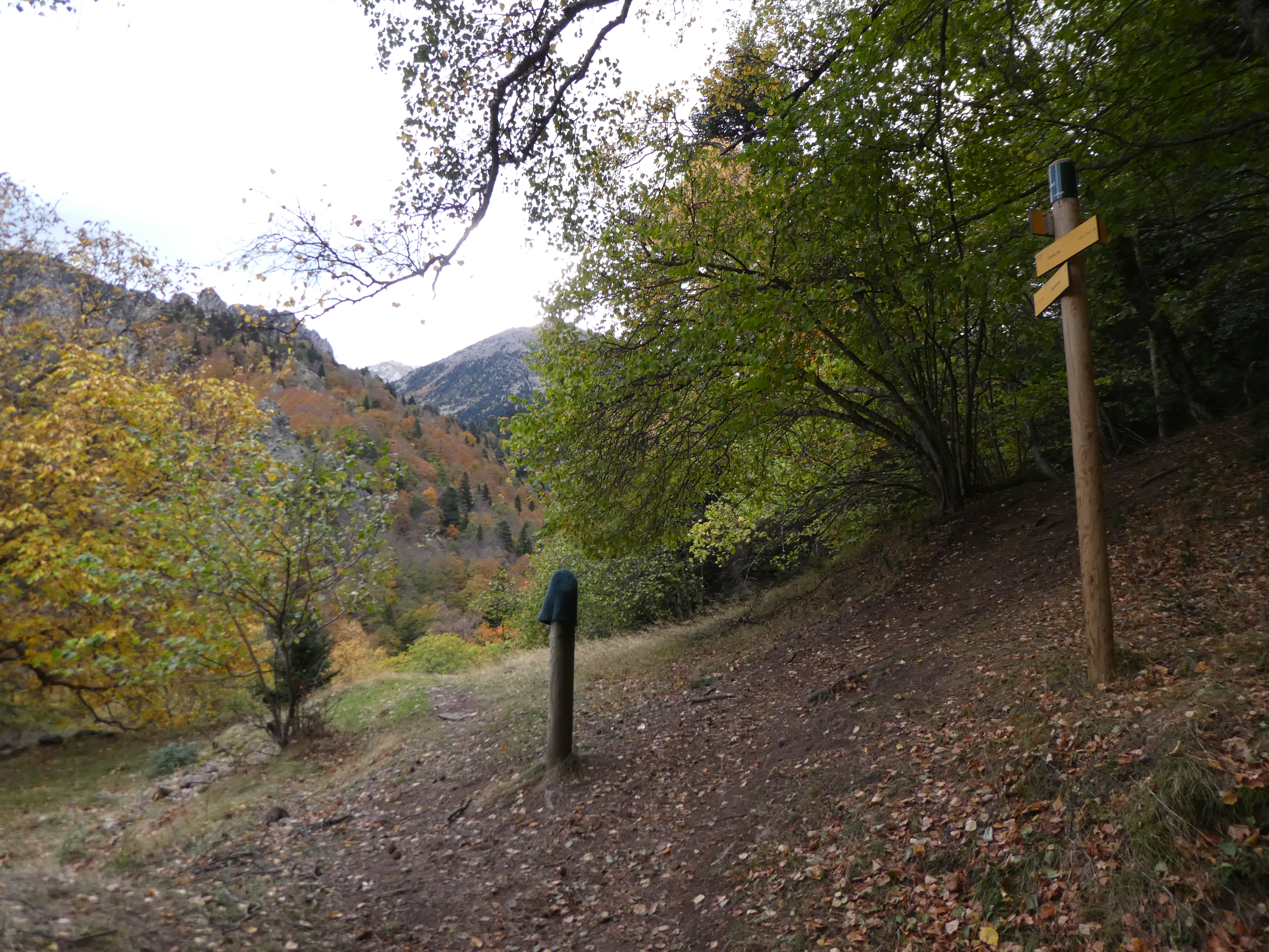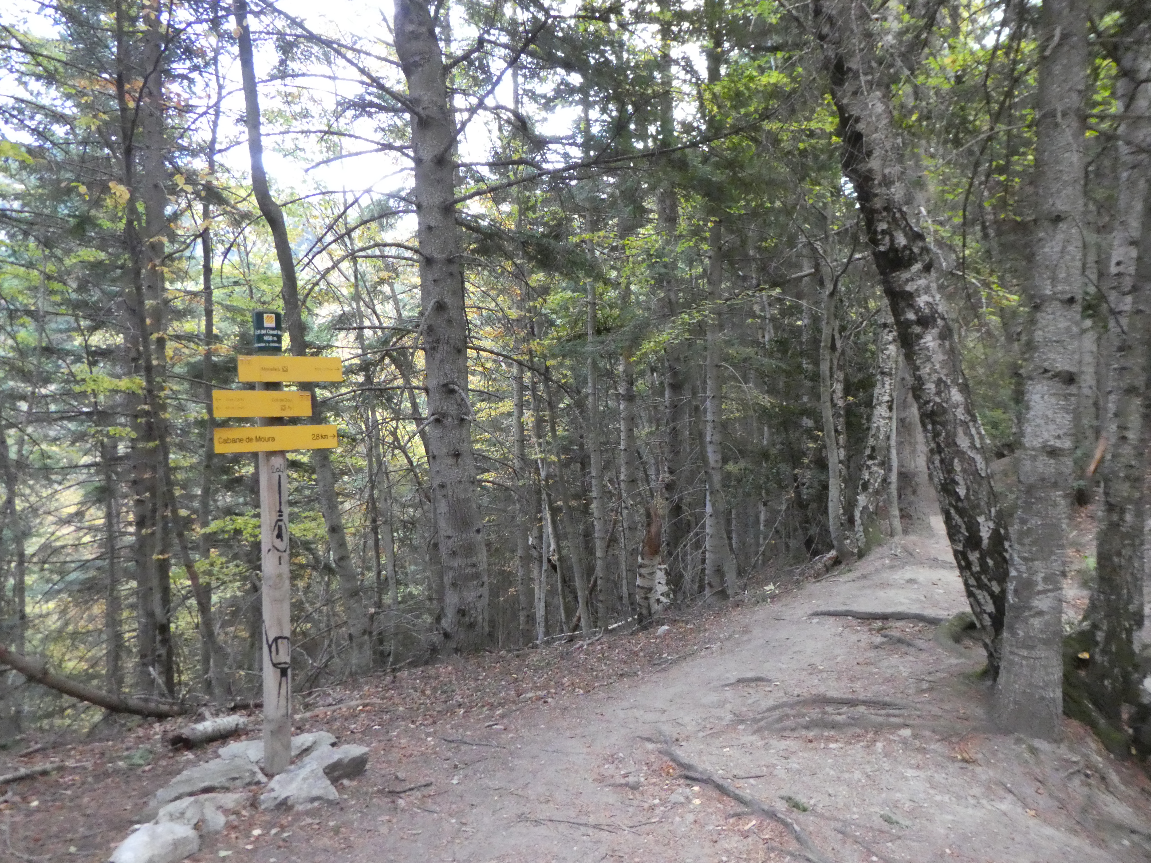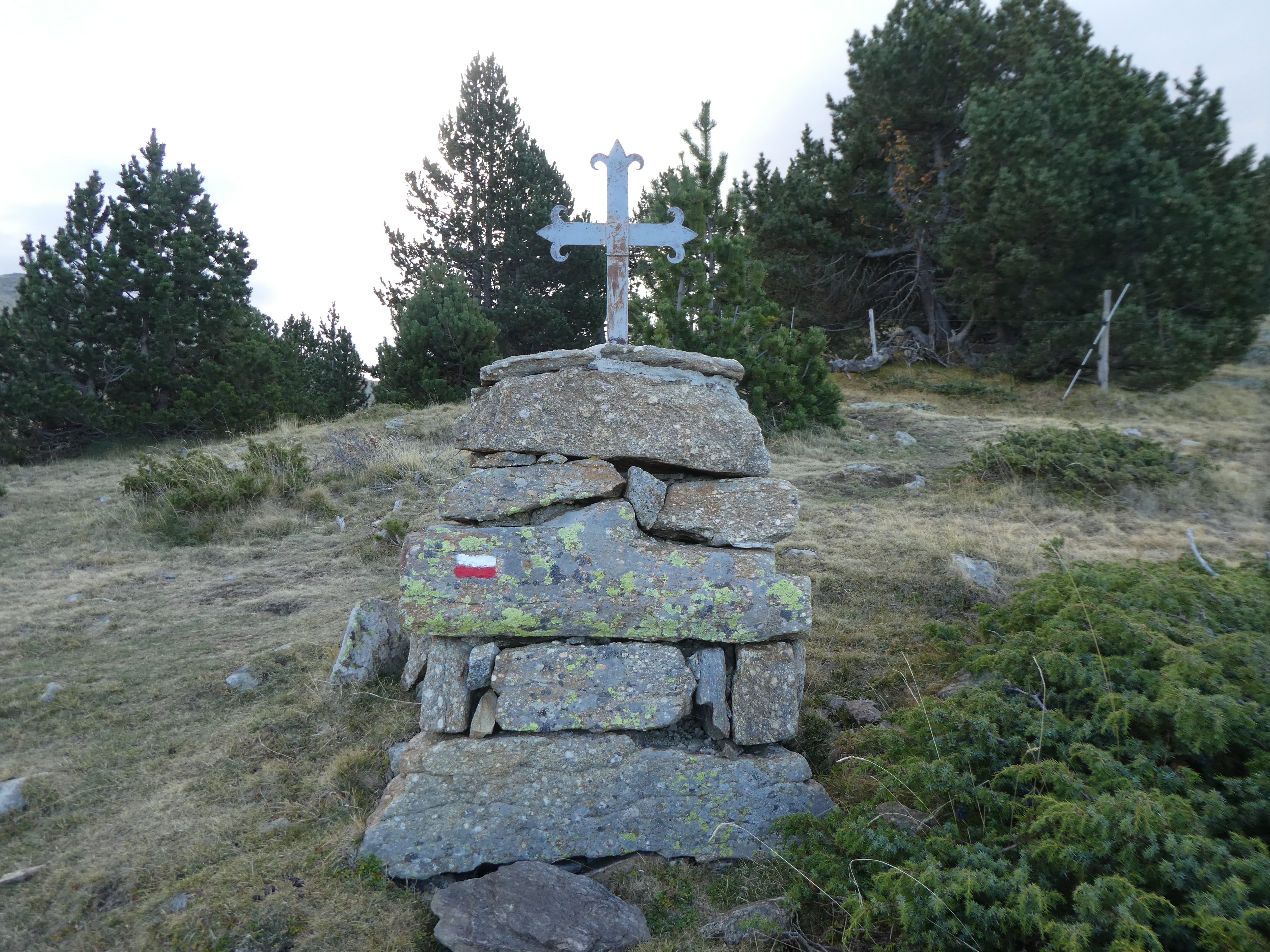 A ce croisement marqué par la présence d'un panneau directionnel (700 mètres après le Coll del Cavall Mort), suivre le GR10 partant tout droit direction Refuge de Mariailles, balisé en rouge et blanc