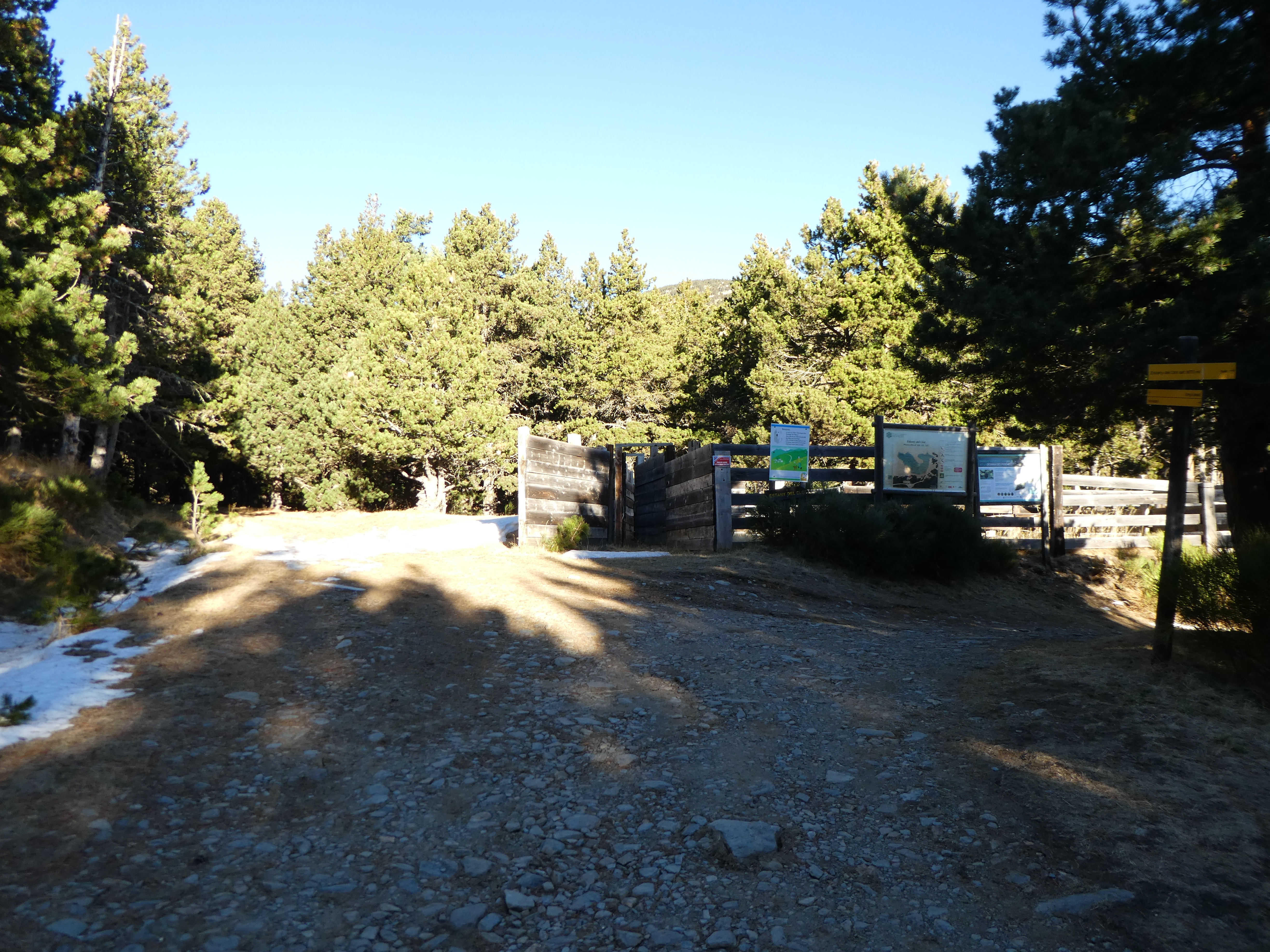 A ce croisement situé près du lieu-dit "la Farga" marqué par la présence d'un panneau directionnel (1500 mètres après le lieu-dit "Nohèdes"), suivre la piste partant sur la droite direction Estany del Clot, balisé en jaune