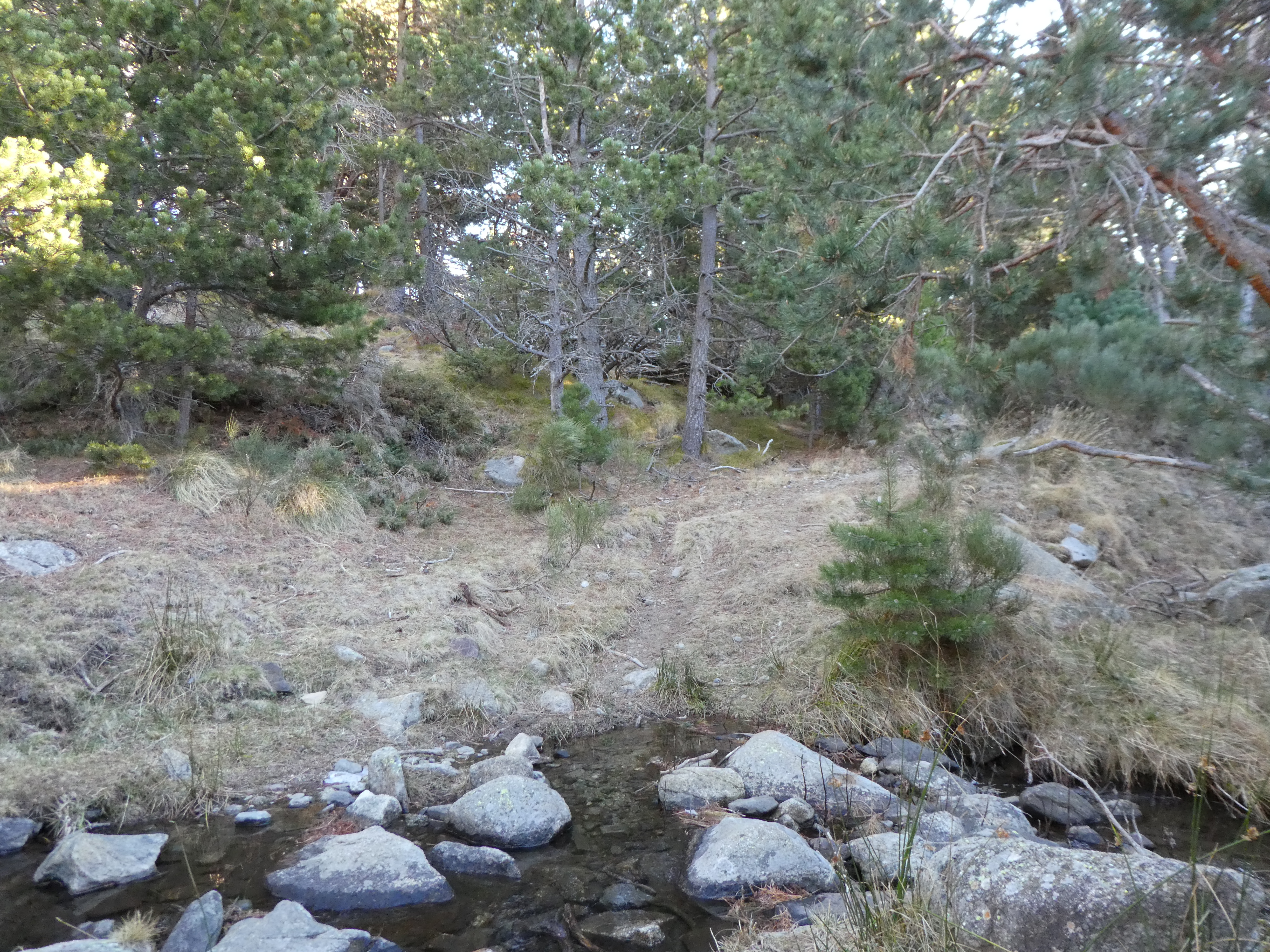 Au niveau de ce passage à gué de la Ribera de l'Home Mort (300 mètres après le lieu-dit "Estany del Clot") (1664 m), franchir le passage puis suivre le chemin partant sur la droite direction Roc de Torrelles