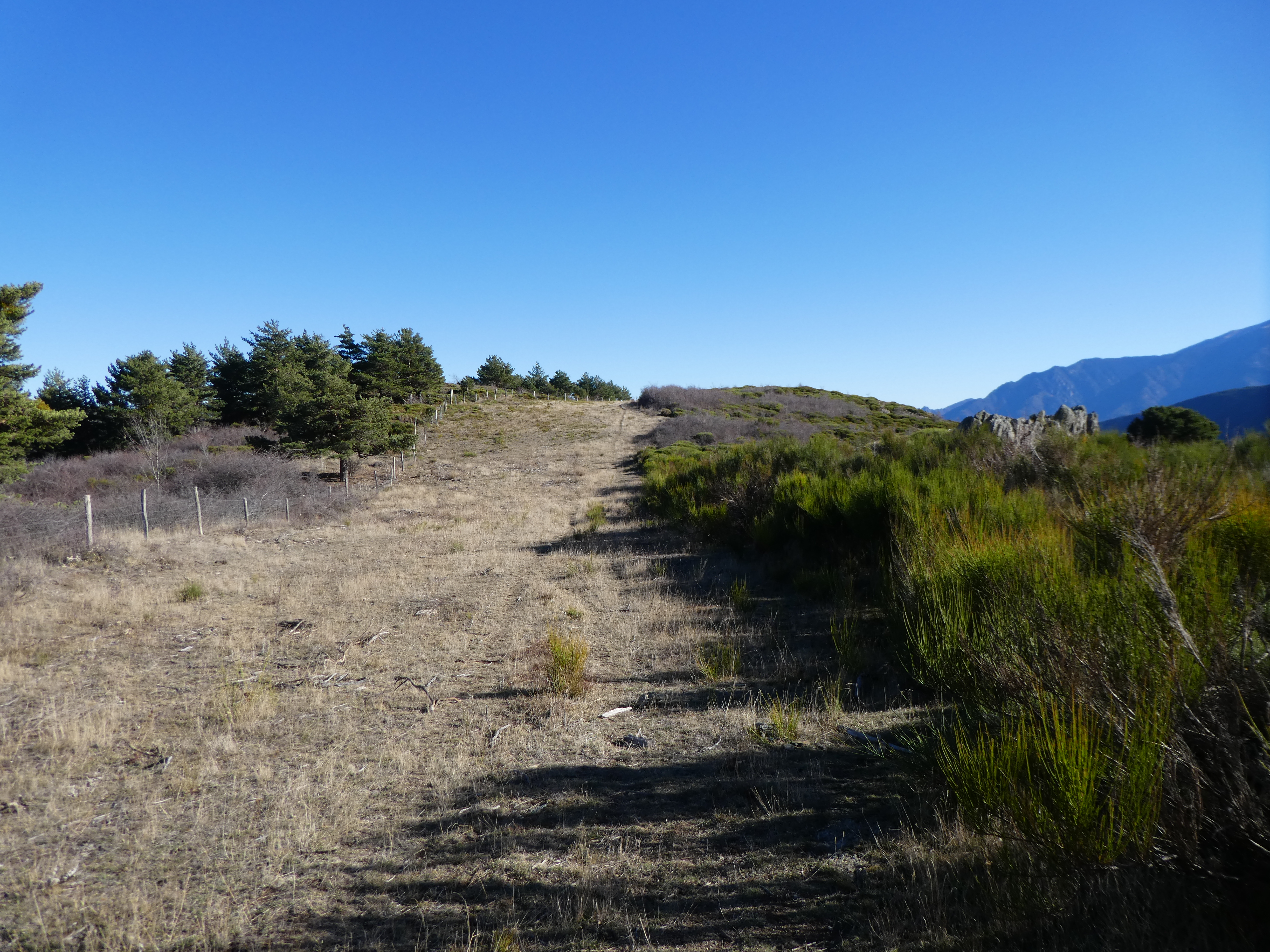 Coll de la Serra (1200 m) : suivre le chemin partant tout droit direction Pic de la Serra, aucun balisage dorénavant (ceux qui voudraient redescendre directement sur Nohèdes sans passer par le Pic de la Serra, suivre le chemin balisé en jaune partant sur la droite)
