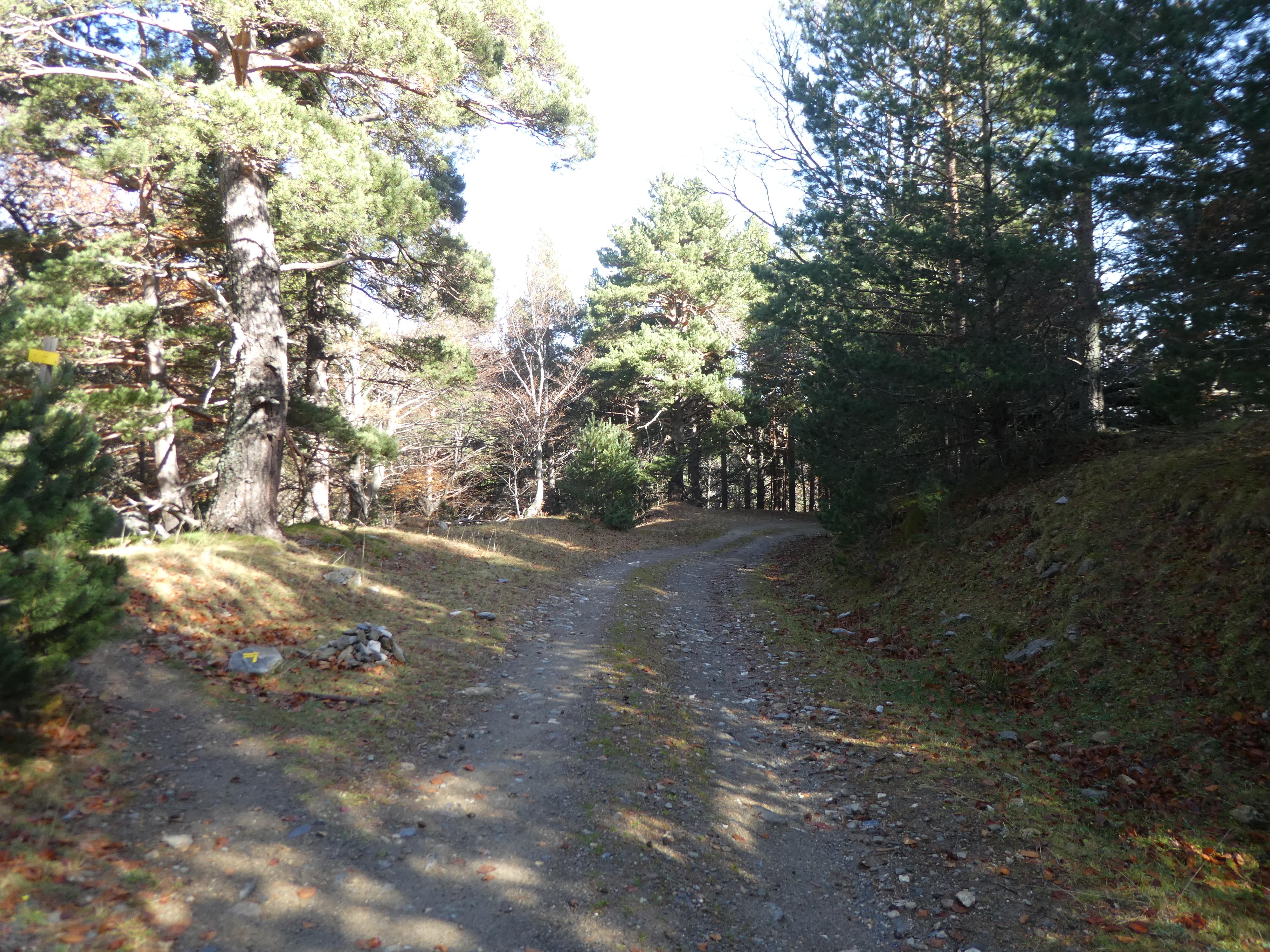 A ce croisement cairné avec la piste précédemment quittée (450 mètres après le précédent), suivre cette dernière sur la droite direction Estany del Clot, balisé en jaune