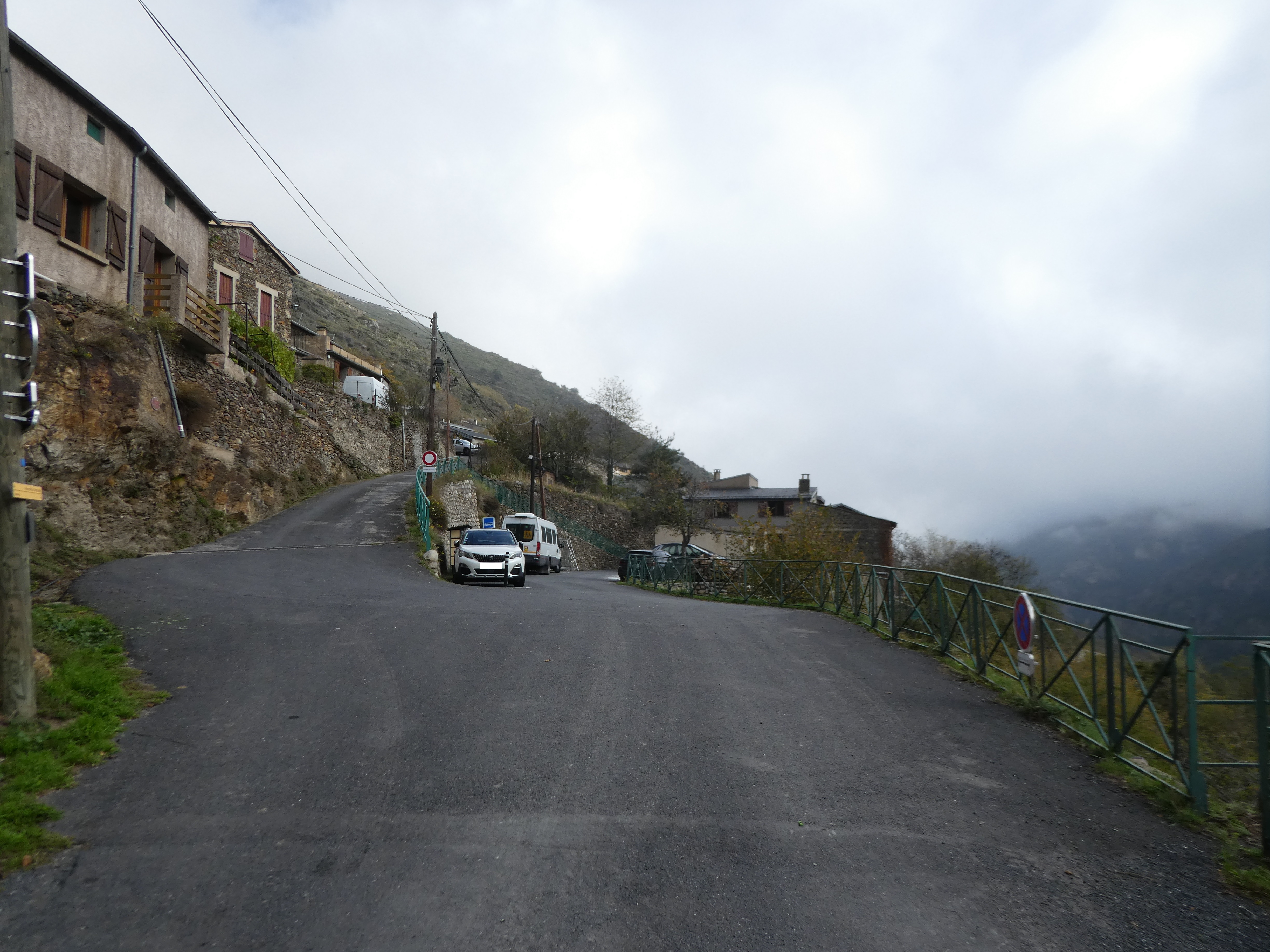 Départ Nohèdes - Parking Visiteurs Obligatoire (943 m) : suivre la route partant tout droit direction Nohèdes, aucun balisage