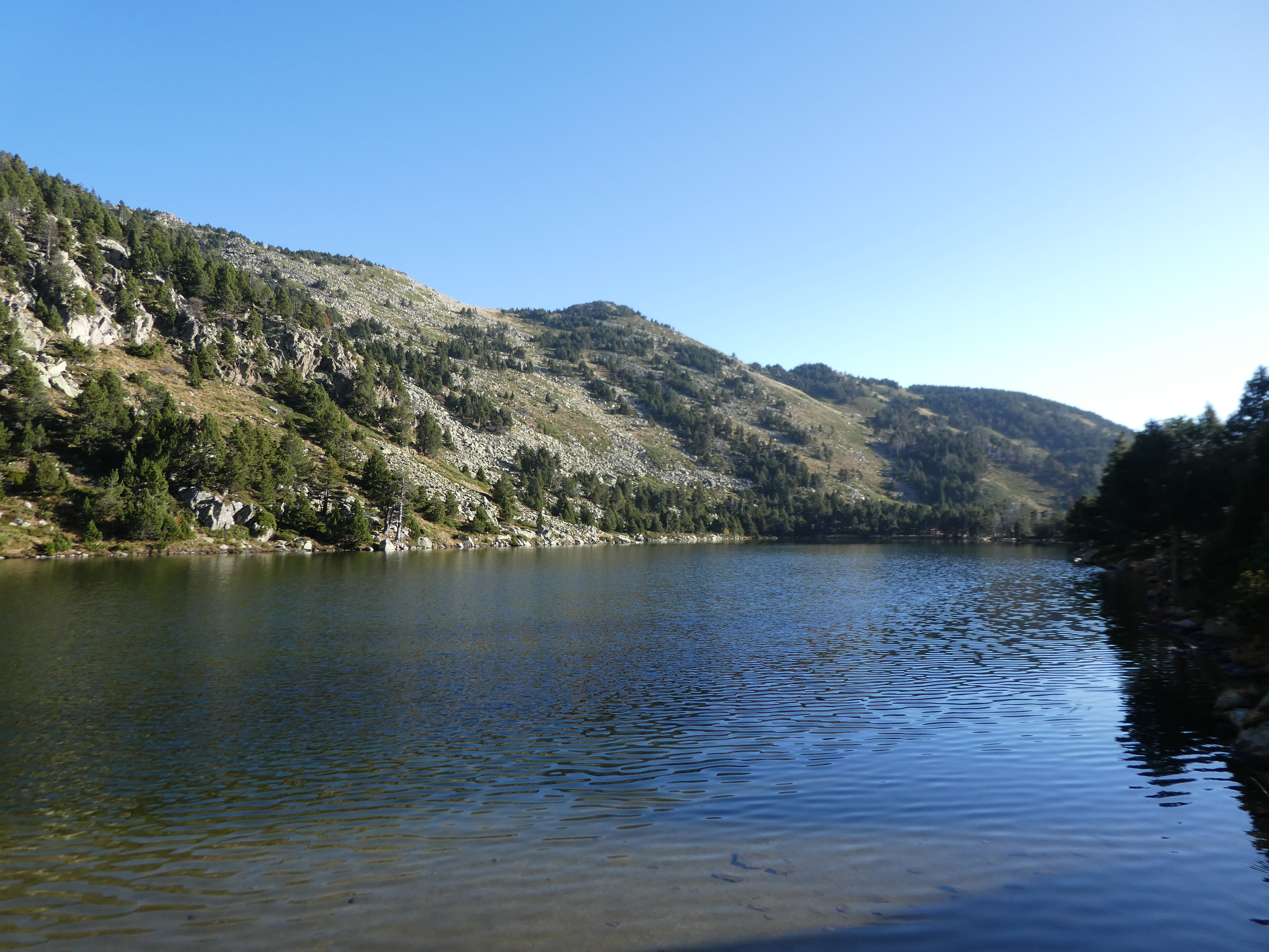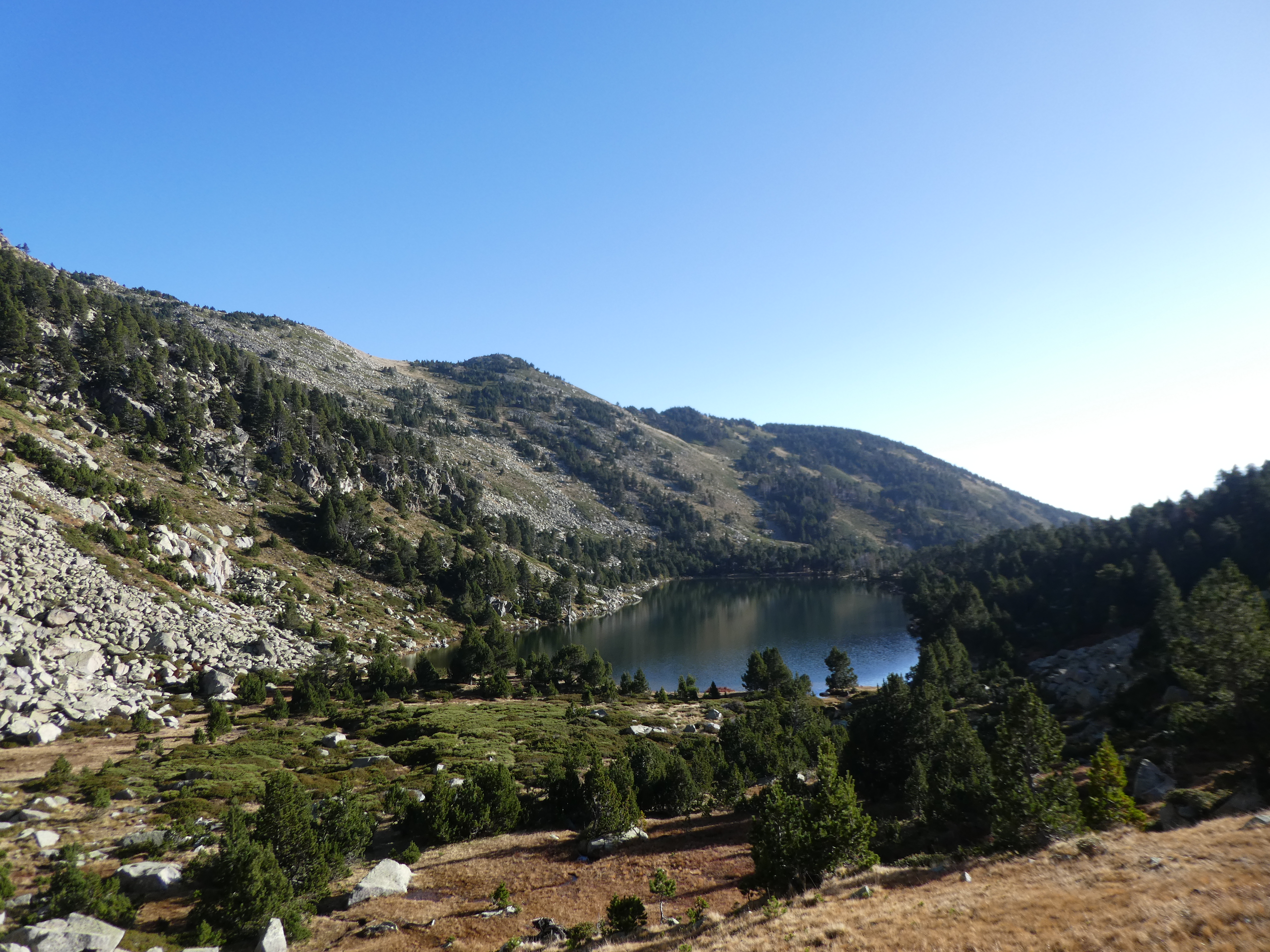 A ce croisement avec le sentier descendant vers le Gorg Estelat (1000 mètres après avoir quitté le sommet), suivre ce dernier partant sur la gauche direction Gorg Estelat, aucun balisage dorénavant (bien suivre les cairns pour parvenir au Gorg Estelat)