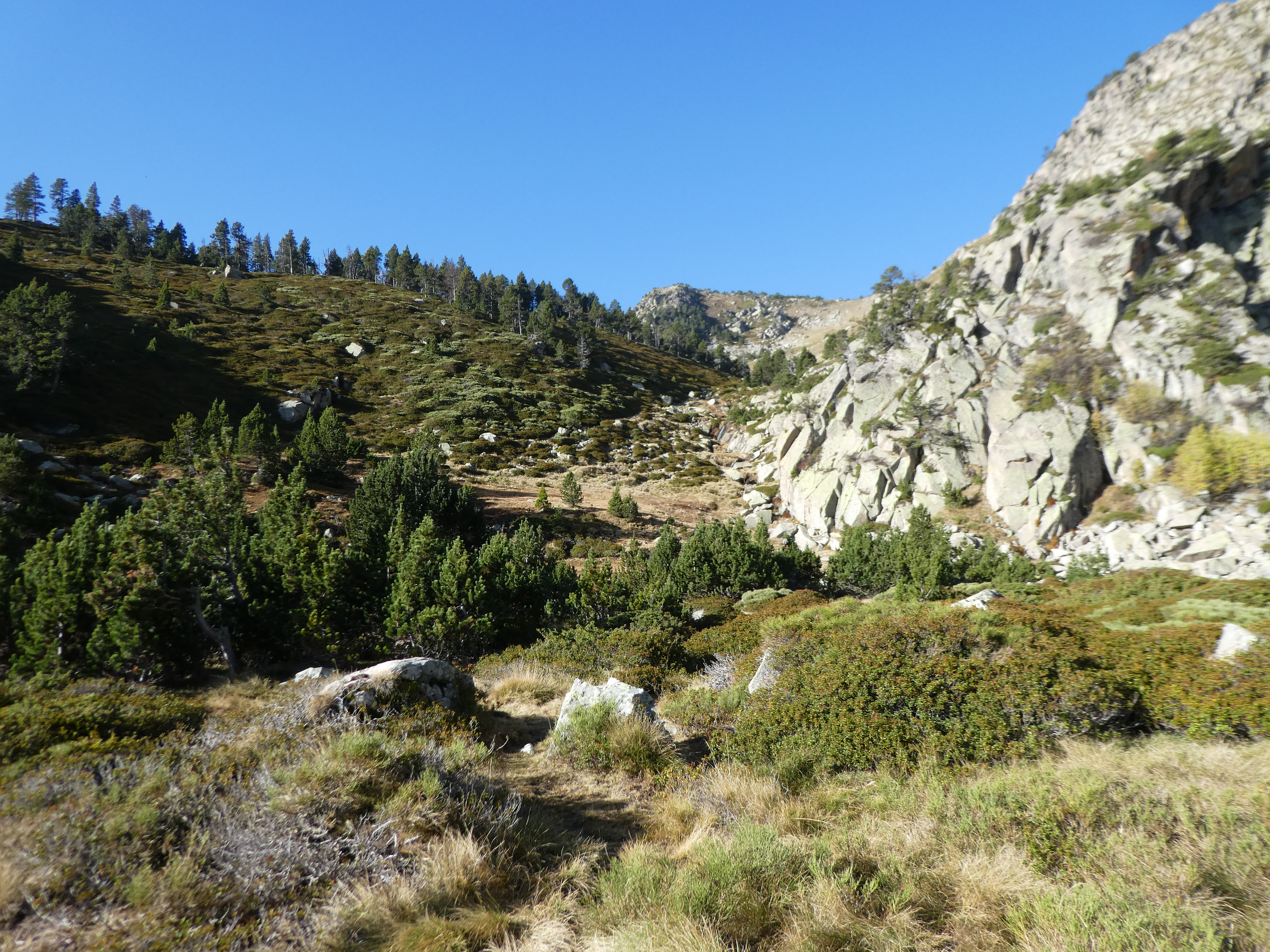 - Progression sur sentier plus ou moins bien tracé du Gorg Estelat jusqu'à la jonction avec le sentier balisé de la crête du Clot Redon (portions de montée raide)