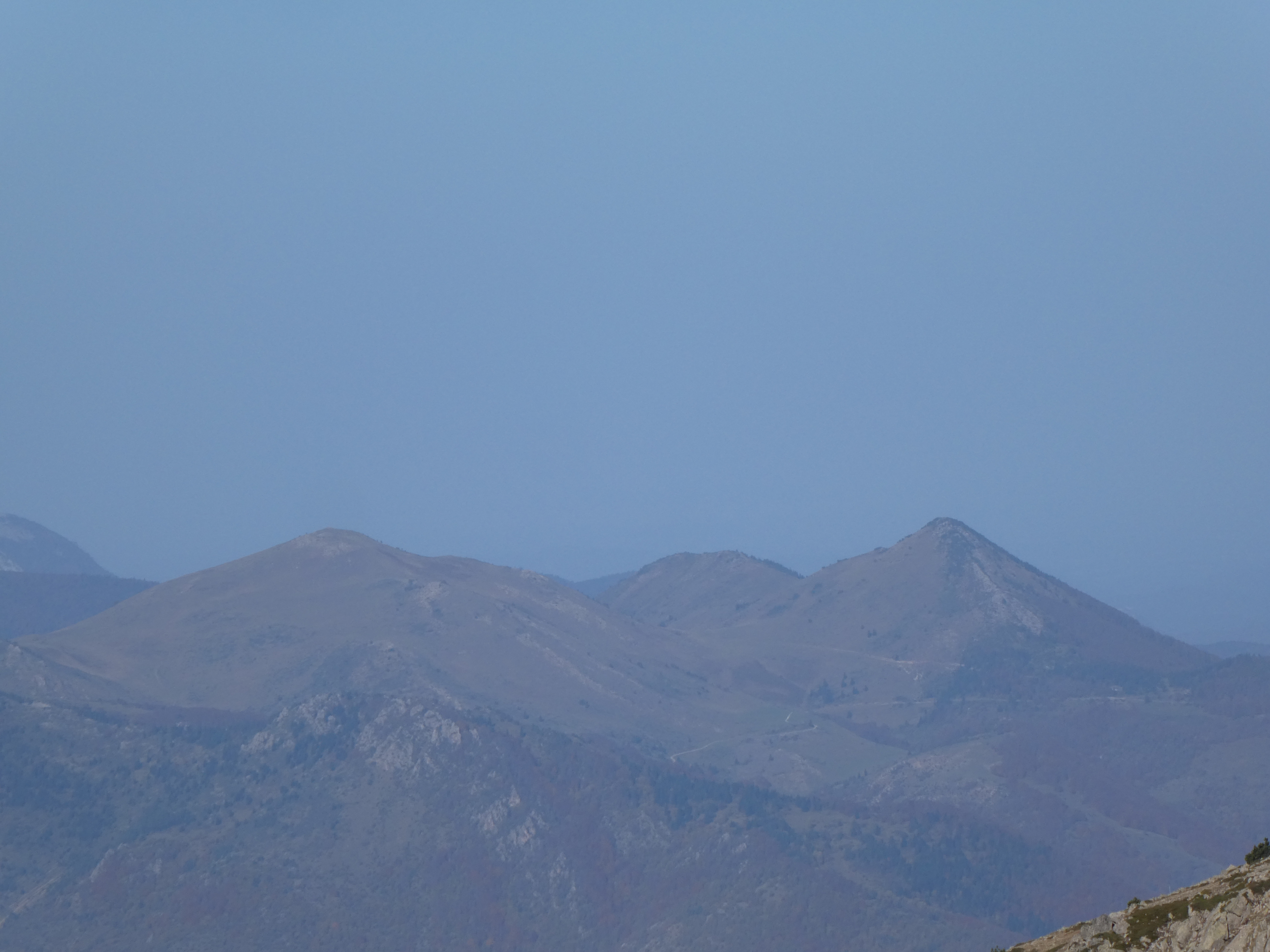 Zoom sur le Pech dels Escarabatets (1342 m) à gauche et le Pech de Fraissinet (1173 m) droite
