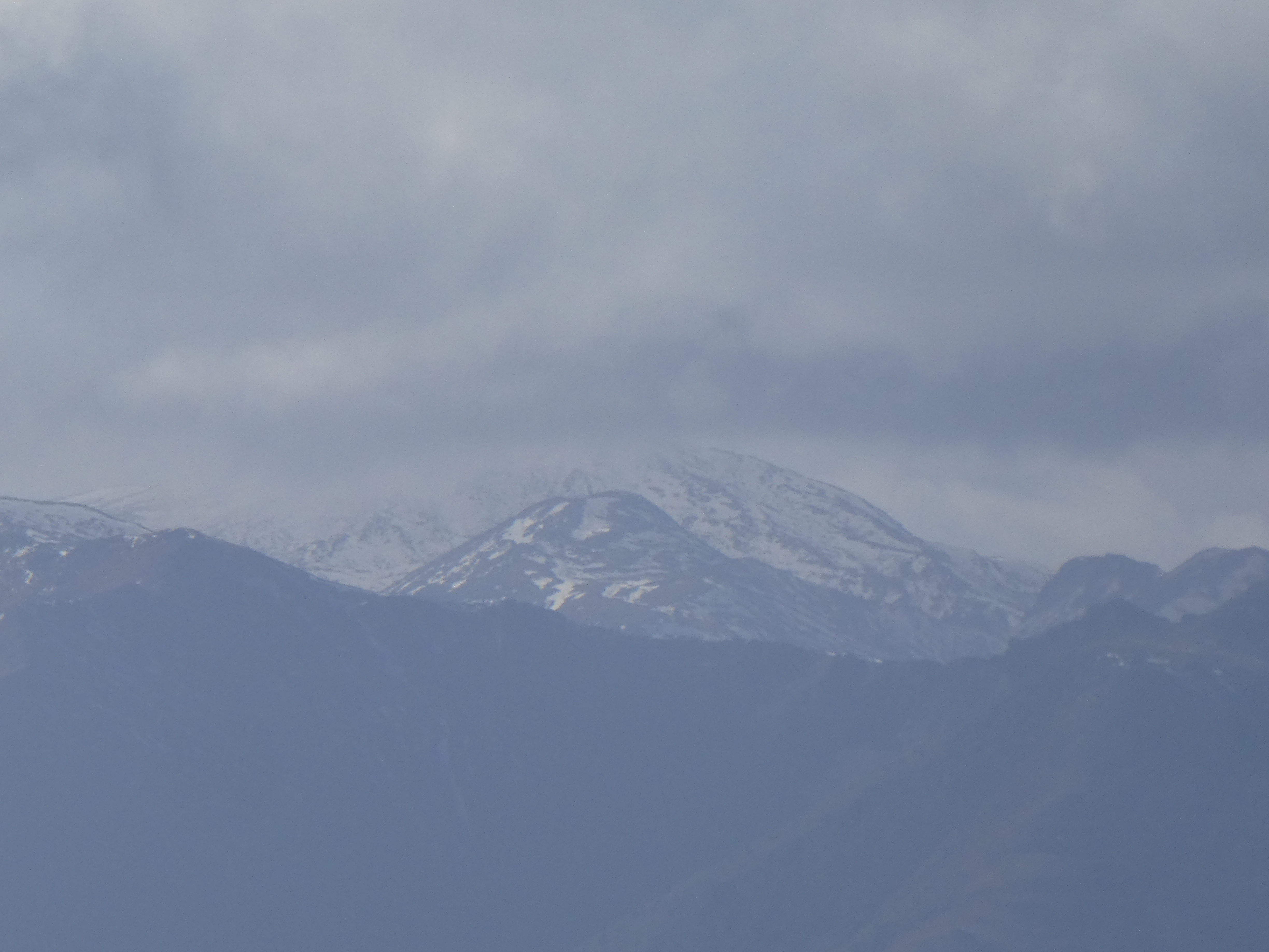 Zoom sur le Puig Carlit (2921 m) à gauche et le Tossal de Lloser (2804 m) à droite