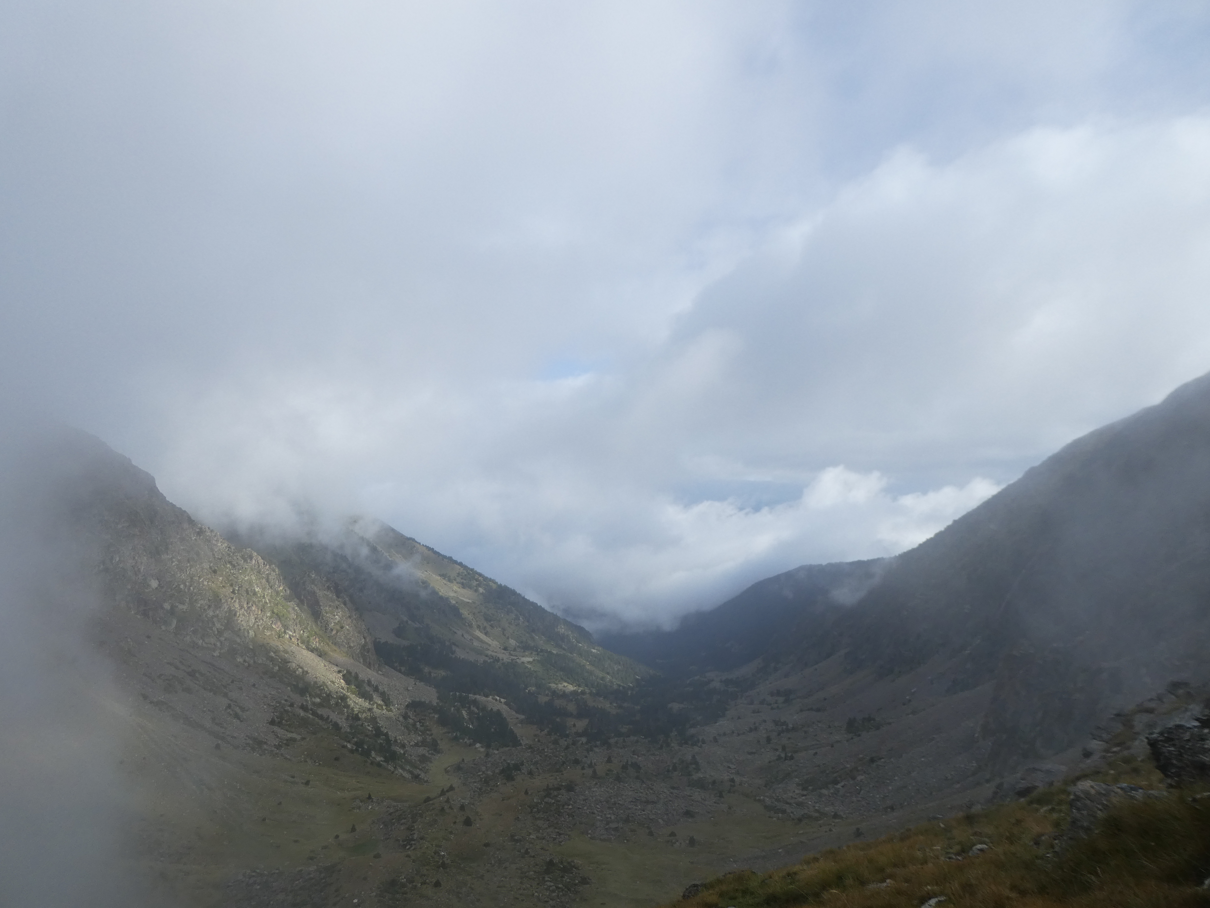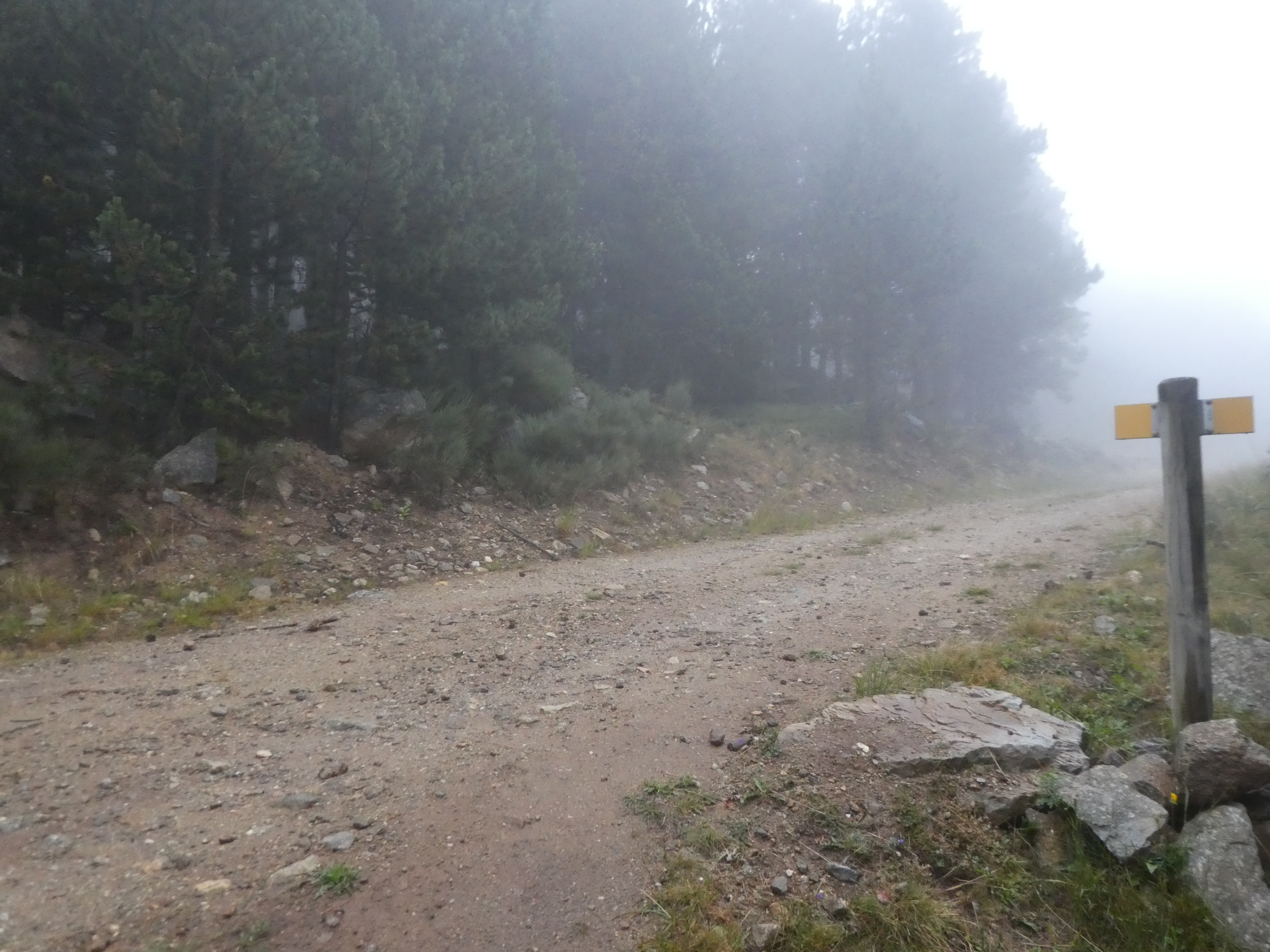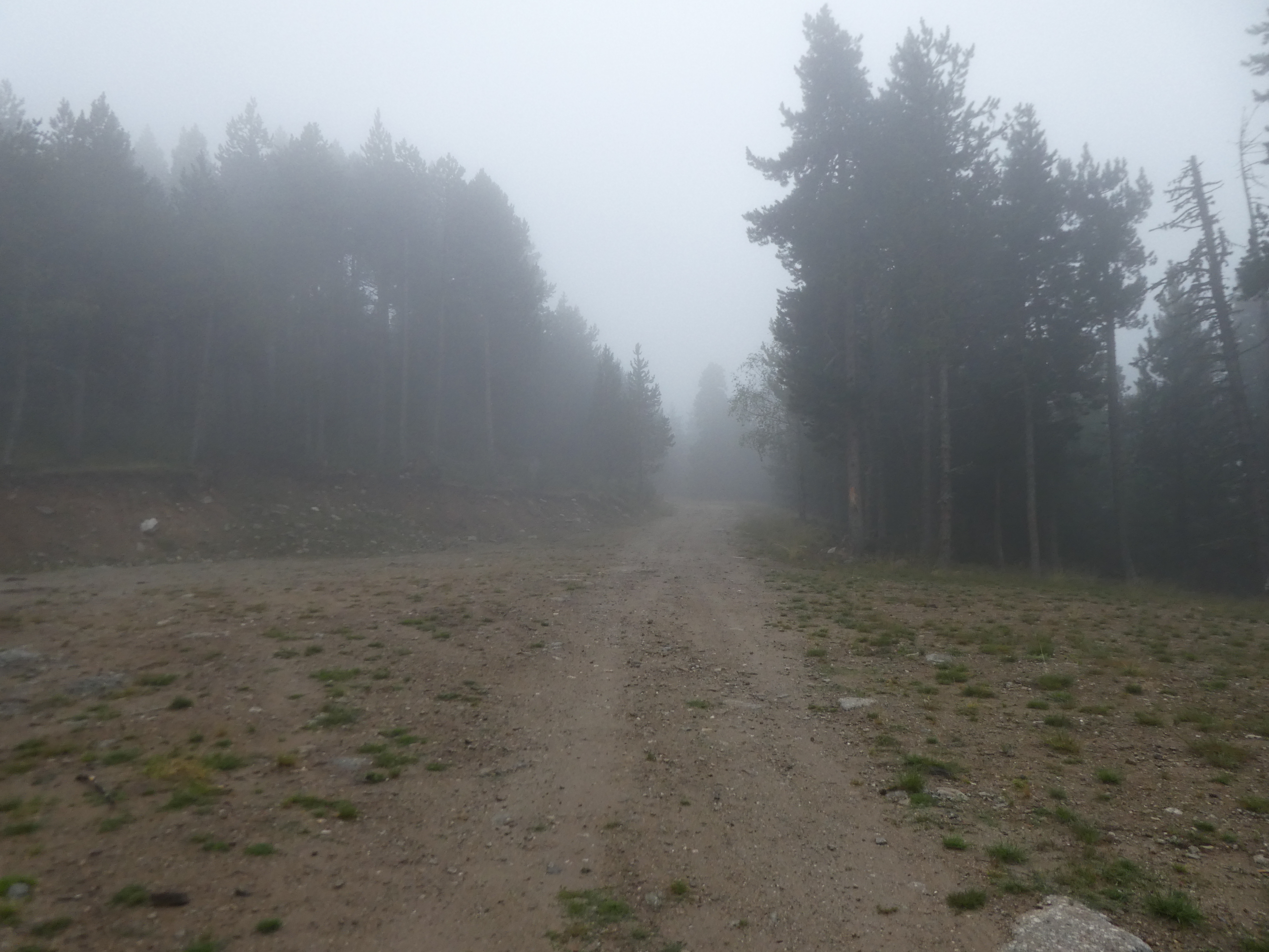 Le chemin de montée de la Vall de la Ribera de Planès dans le brouillard !