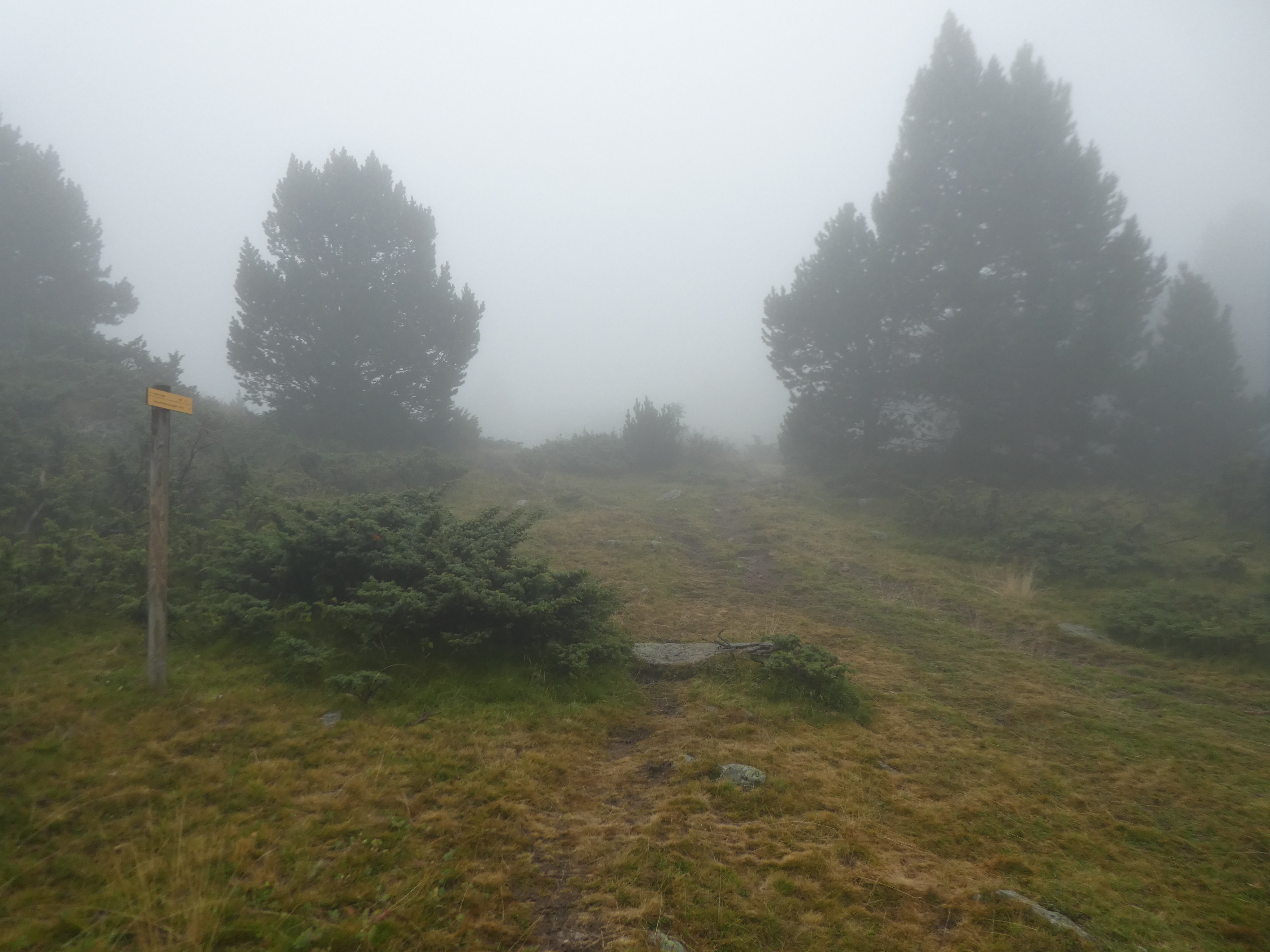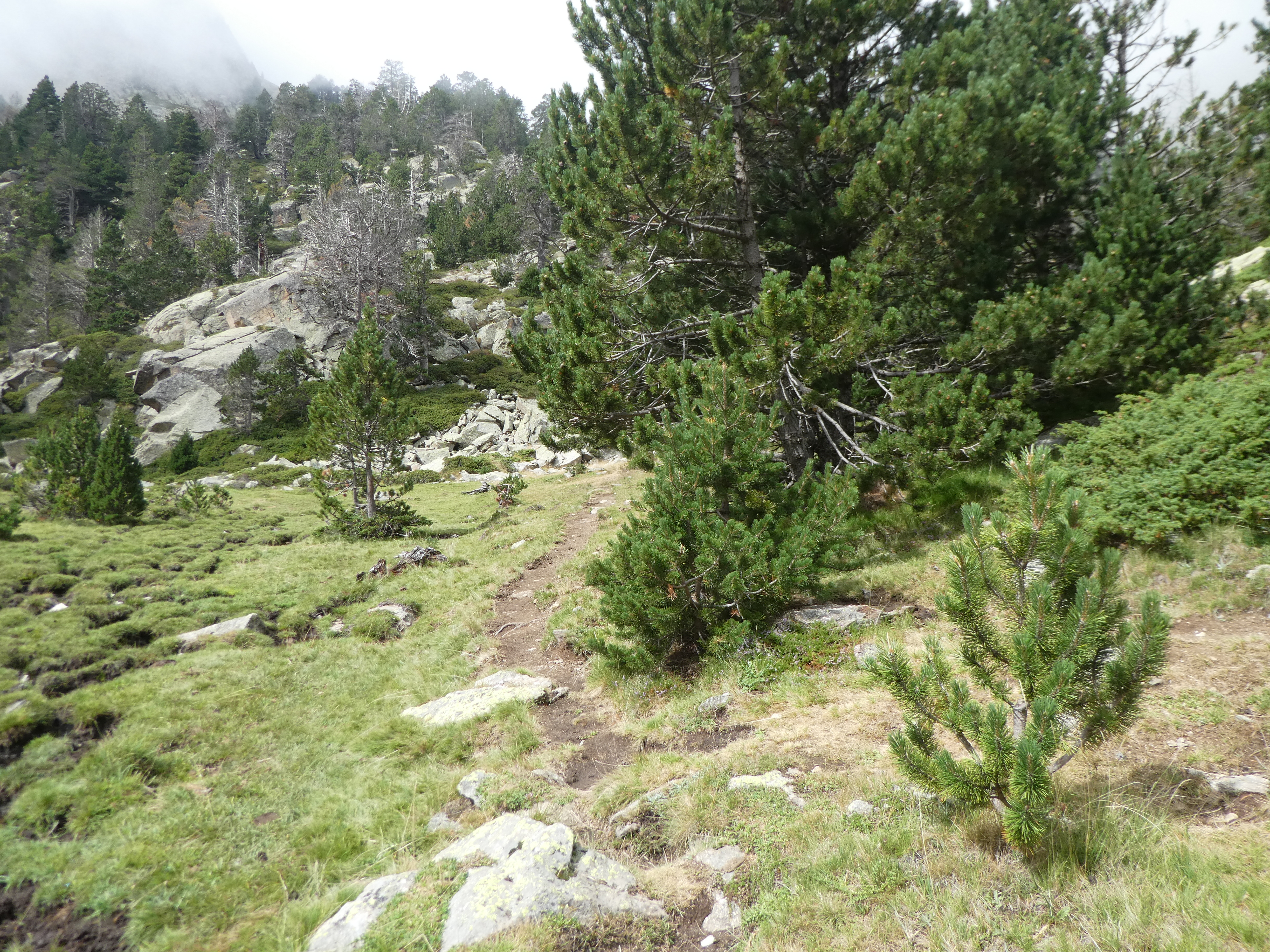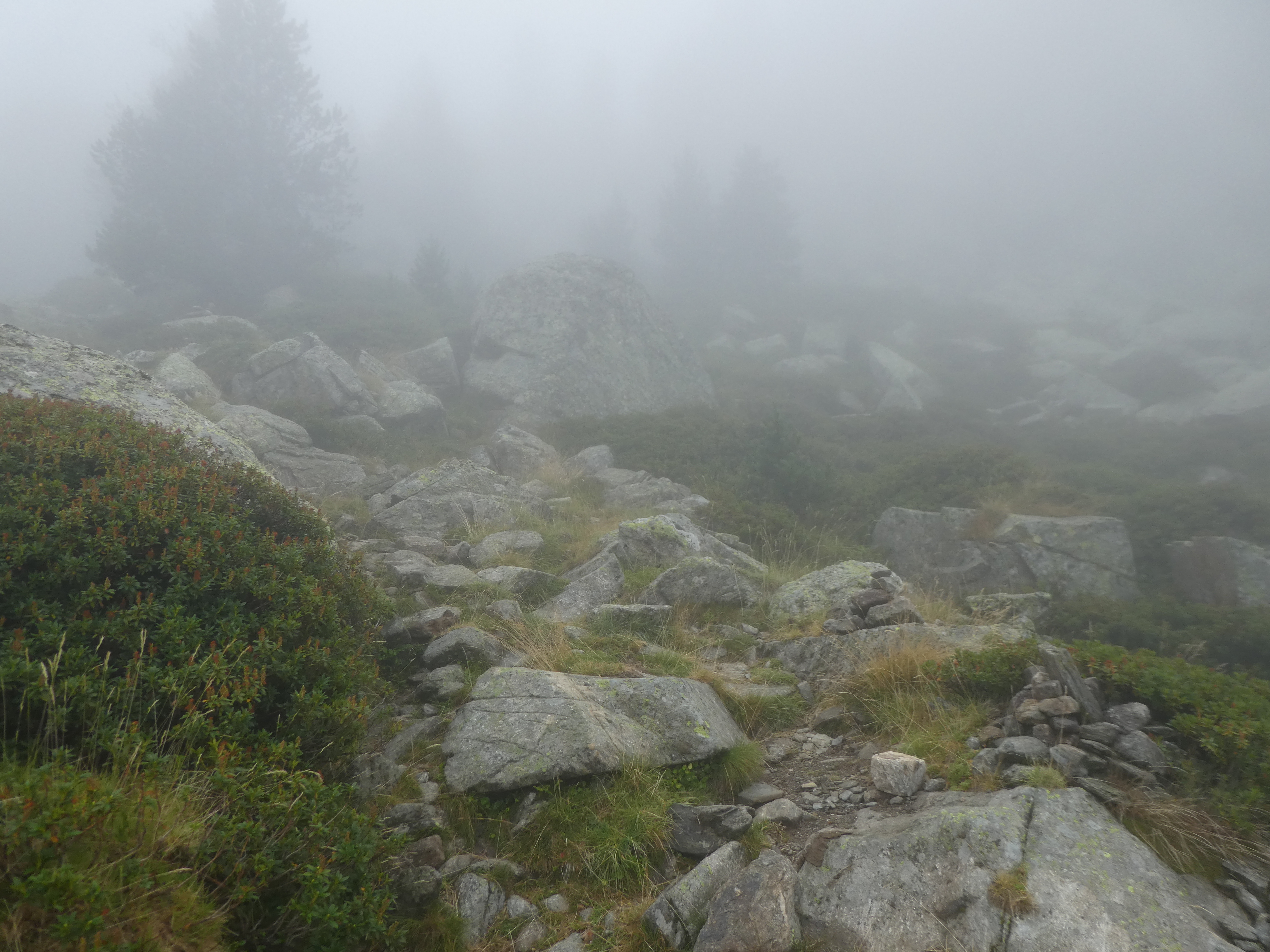 Le chemin de montée de la Vall de la Ribera de Planès dans le brouillard !