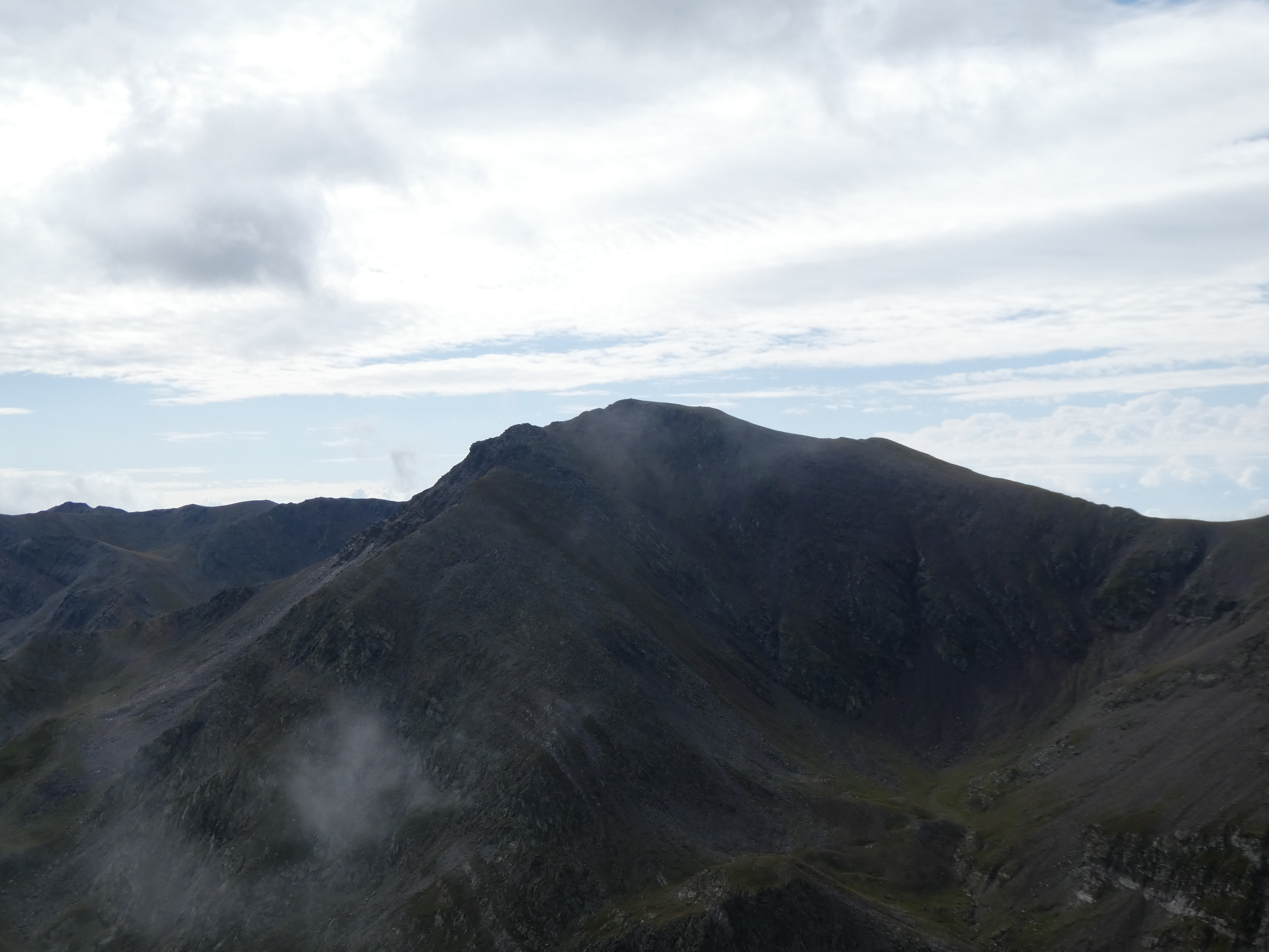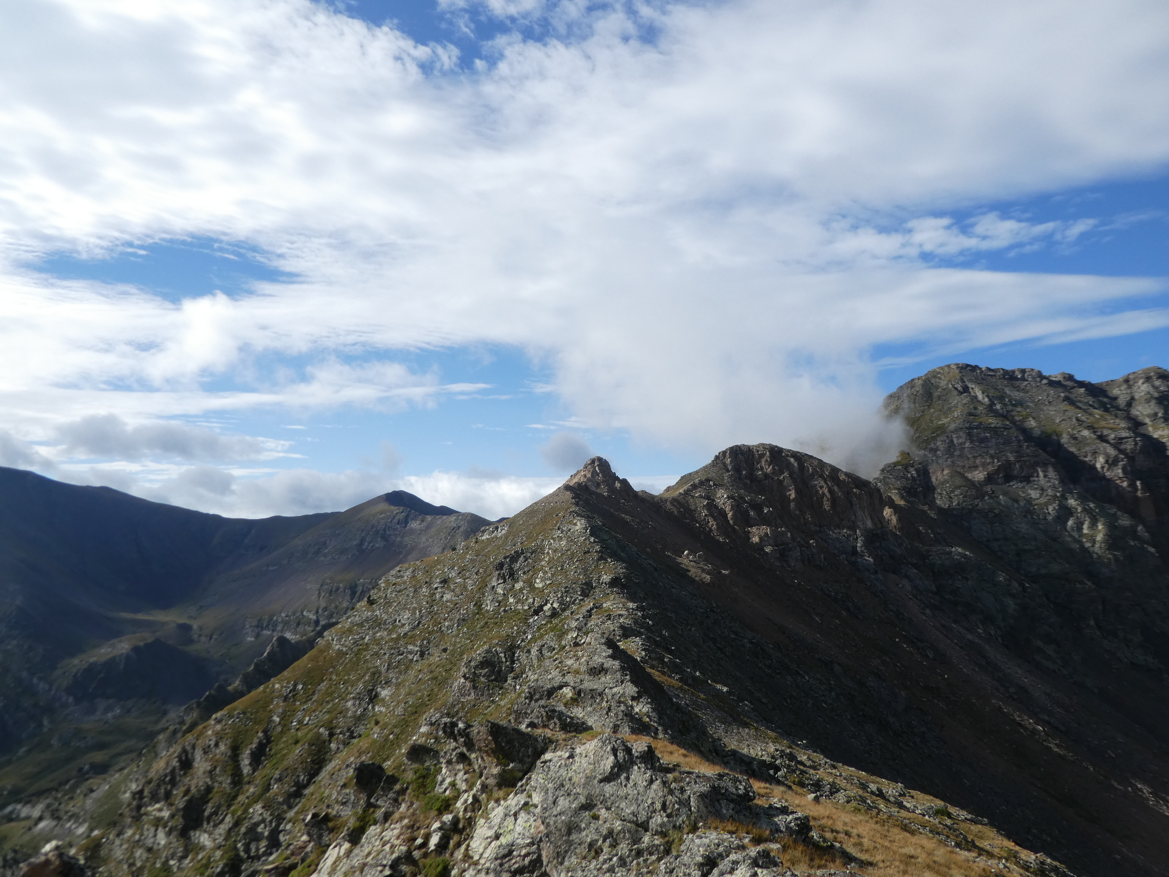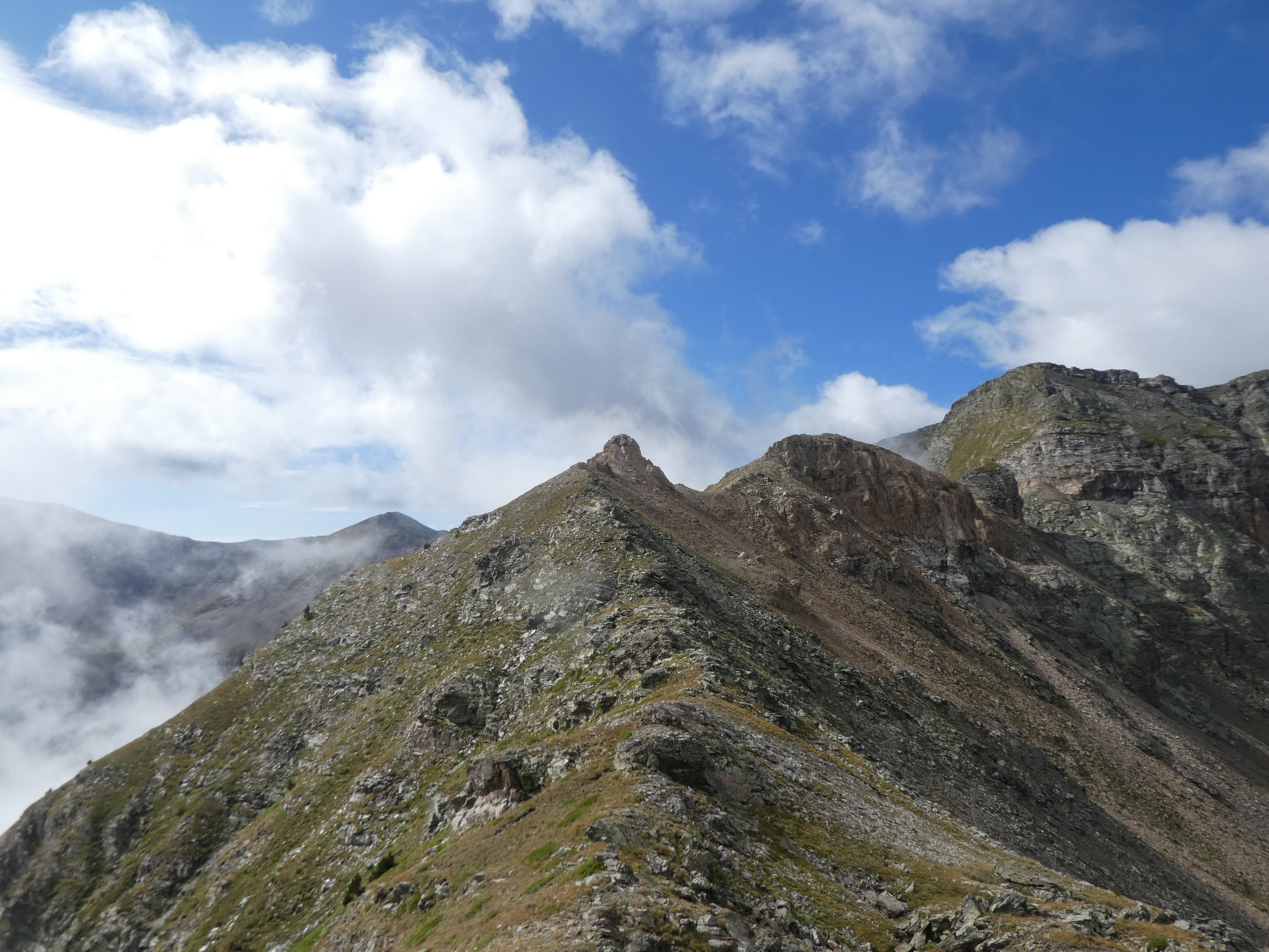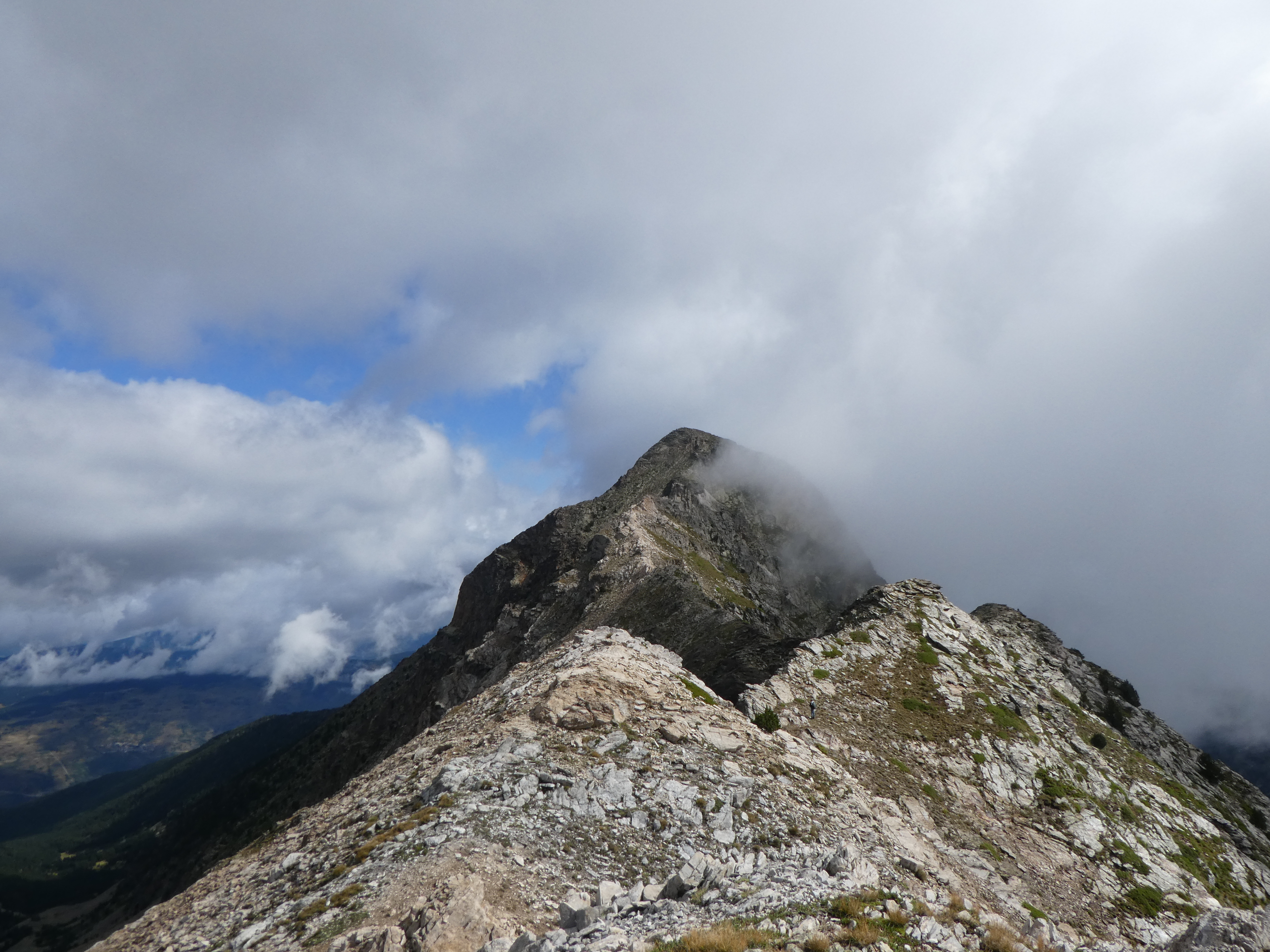 Arrivée au sommet du Serrat dels Llosers (2722 m) : beau panorama malgré la présence de nuages sur les sommets de la Vall de Planès et de la Carança
