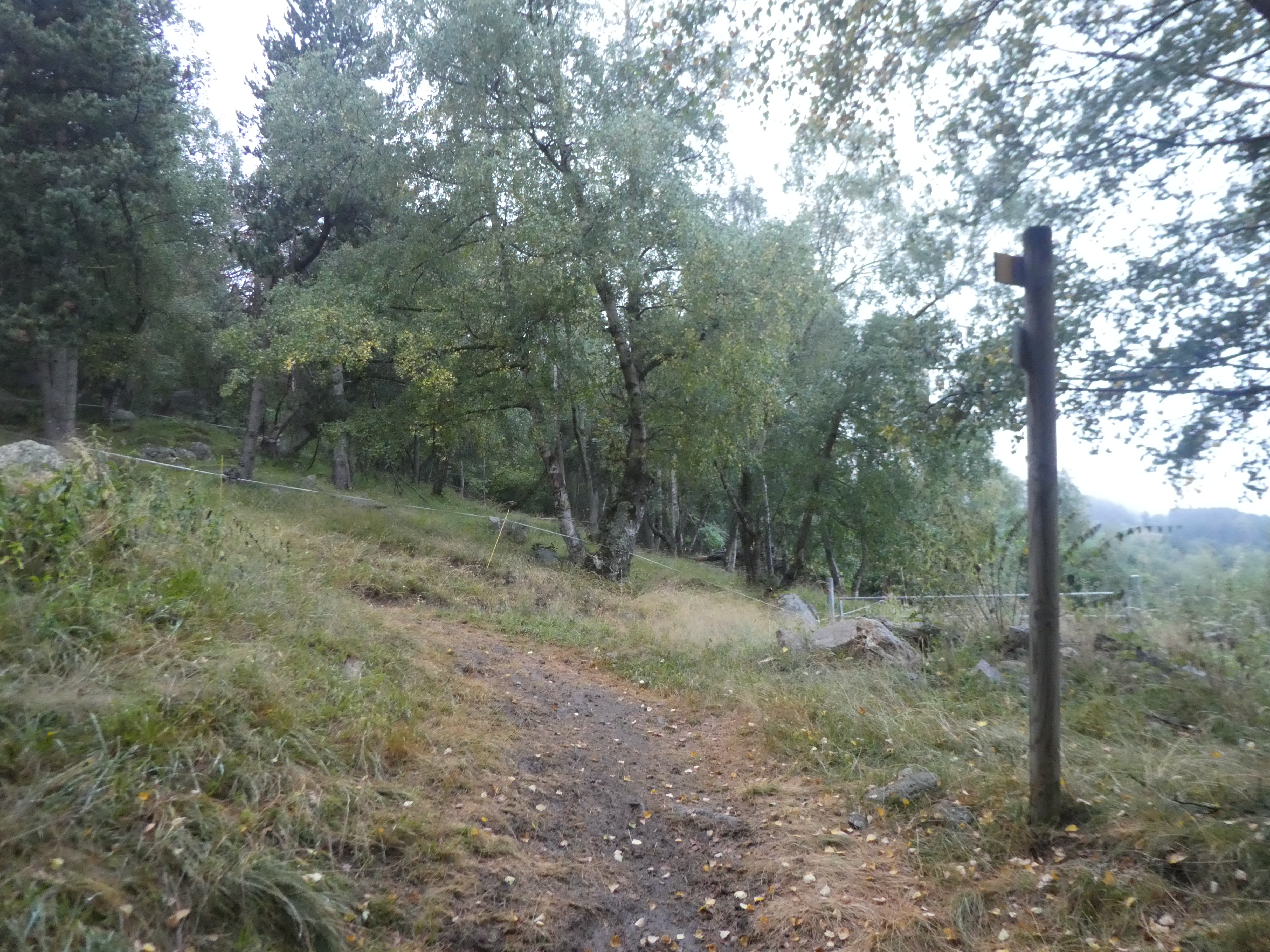 A ce croisement avec l'autre sentier balisé venant de Planès marqué par la présence d'un panneau directionnel (1700 mètres après le précédent) (1980 m), suivre le chemin partant tout droit direction Estany de Planès, balisé en jaune
