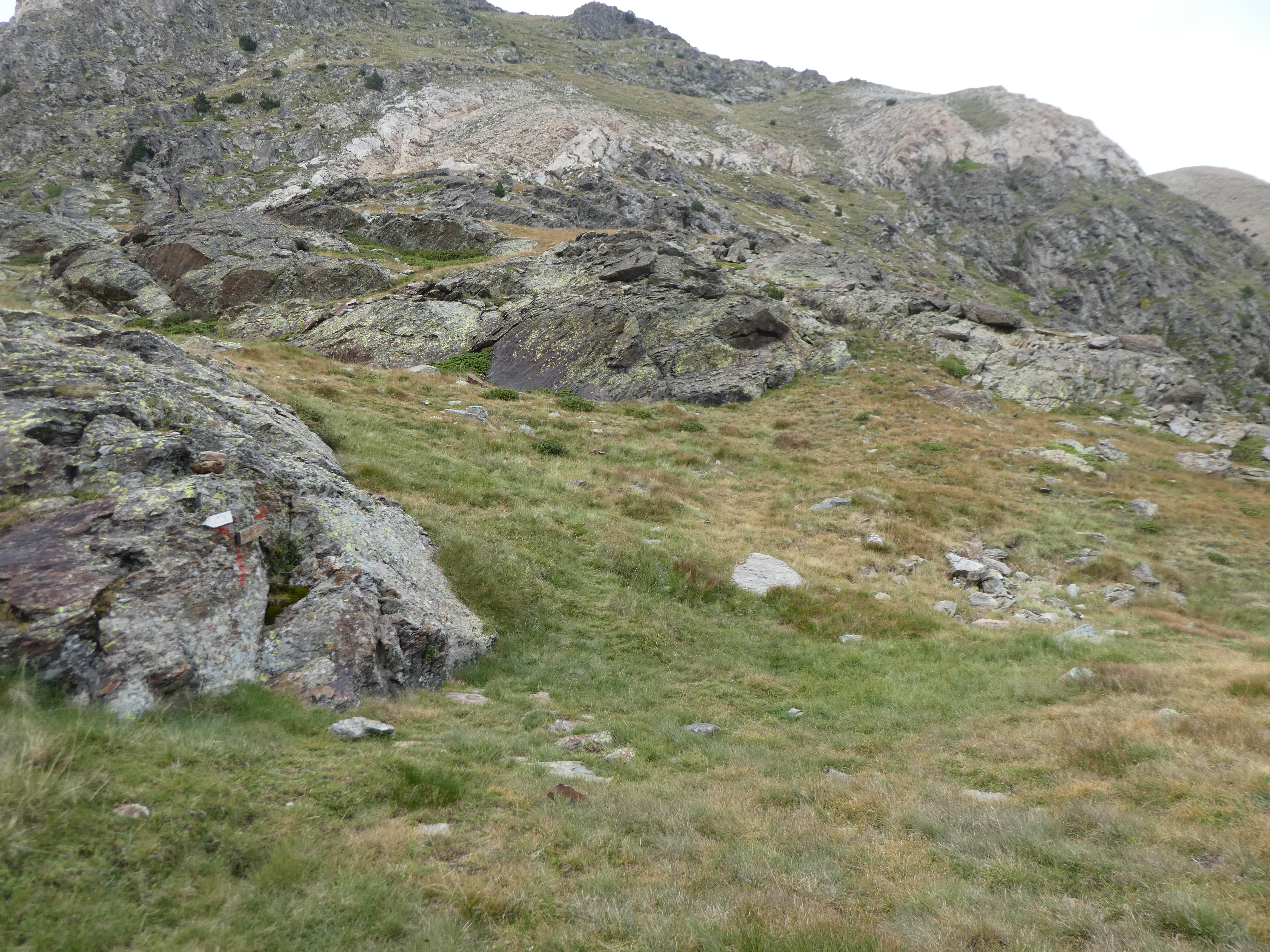 - Itinéraire cairné sur sentier plus ou moins bien tracé de l'Estany de Planès jusqu'au croisement de la Conca de la Torre d'Eina