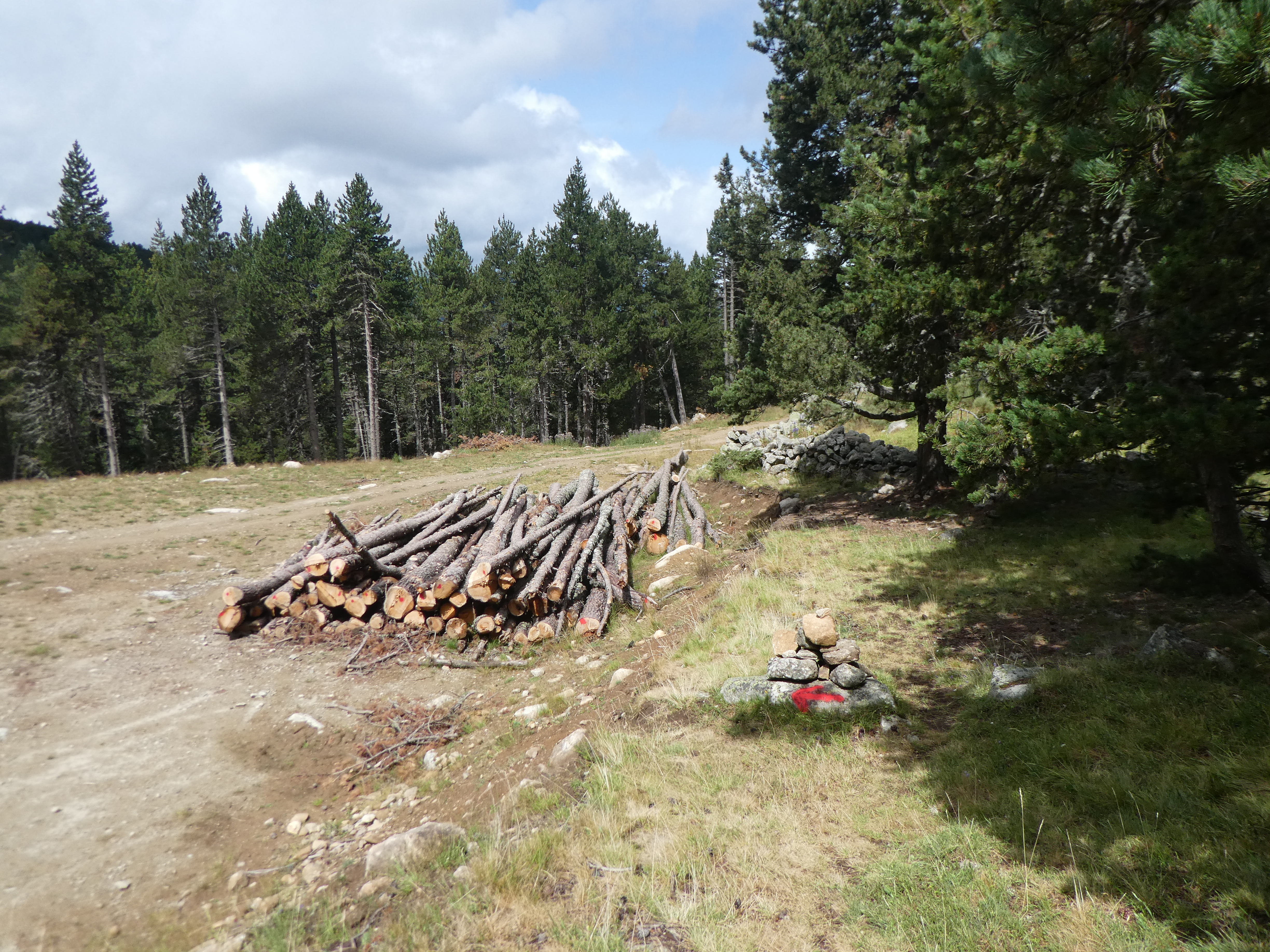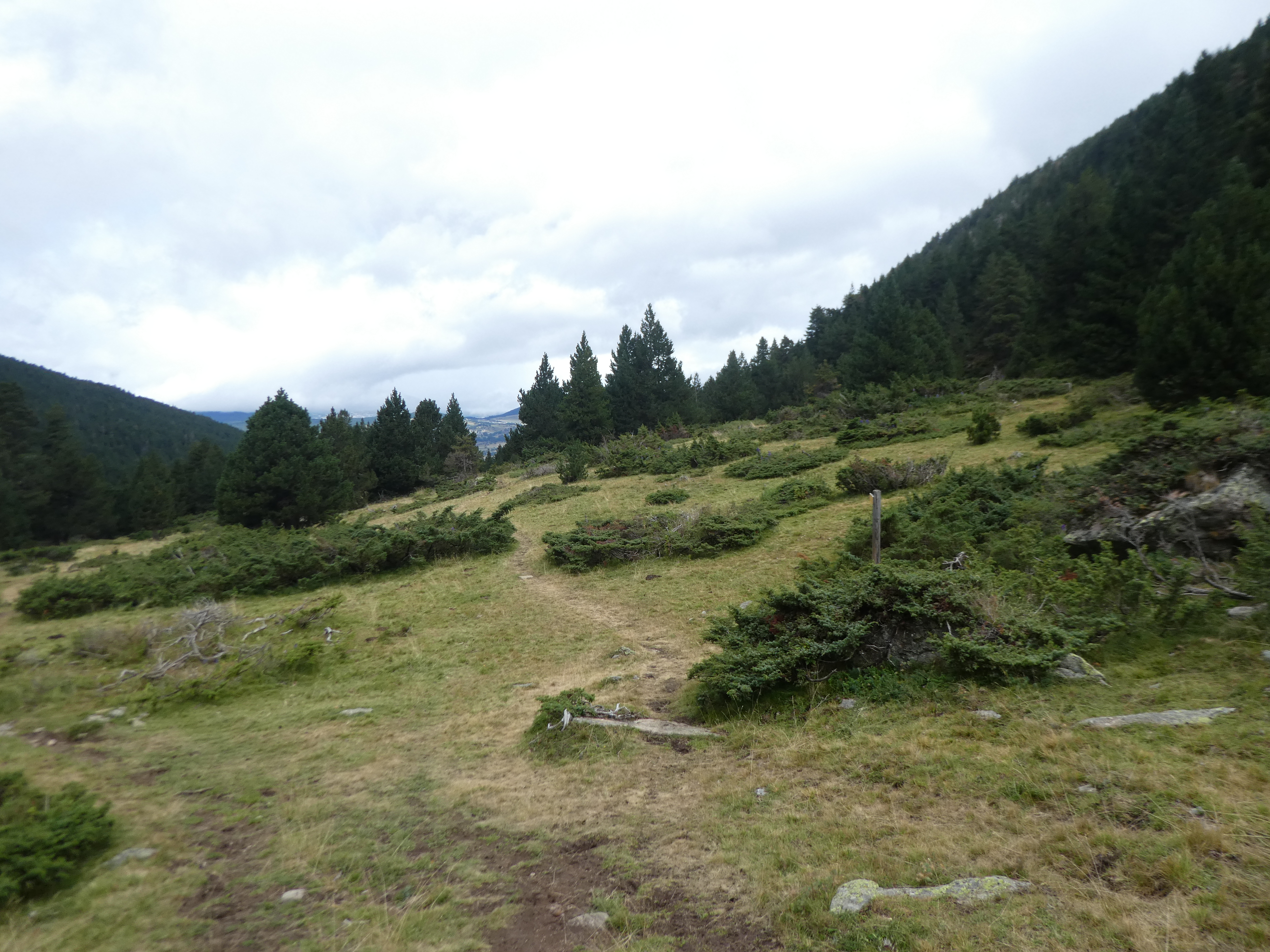 A ce croisement avec le sentier venant du Roc del Boc (200 mètres après avoir quitté la crête du Serrat dels Llosers), continuer à descendre tout droit direction Estany de Planès